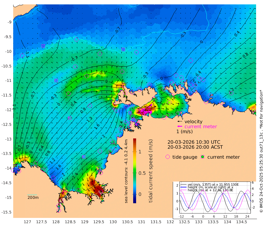197cm/s 78T +4cm/s rms + 6cm/s 51T. Darwin_C1 52m 147cm/s 93T +4cm/s rms + 7cm/s -161T. Darwin_CW1 22m 122cm/s 72T +4cm/s rms + 8cm/s 61T. Darwin_CW2 34m 122cm/s 44T +3cm/s rms + 9cm/s 98T. Darwin_CW3 22m 197cm/s 89T +5cm/s rms + 7cm/s 88T. Darwin_C3 56m 94cm/s 66T +2cm/s rms + 9cm/s -126T. Darwin_CTbW 22m 12cm/s -15T +9cm/s rms + 2cm/s -110T. NWSLYN 196m 14cm/s 45T +1cm/s rms + 1cm/s -47T. DARBGF 30m 9cm/s -83T +7cm/s rms + 2cm/s -137T. ITFTIS 464m 14cm/s -56T +9cm/s rms + 1cm/s 74T. ITFMHB 146m 19cm/s -107T +4cm/s rms + 1cm/s -134T. ITFJBG 61m 28cm/s -72T +6cm/s rms + 4cm/s 121T. ITFFTB 108m 12cm/s 26T +4cm/s rms + 3cm/s 80T. NRSDAR 19m -104cm Carronade Island -106cm Guy Point -100cm Napier Broome Bay 35cm Lesueur Island 182cm Reveley Island 99cm Rocky Island 297cm Cape Domett 258cm Lacrosse Island 313cm Adolphus Island 246cm Pender Point 218cm Wyndham -14cm The Boxers 16cm Unnamed Shoal -90cm Loxton Shoal 317cm Pelican Island -33cm Calder Shoal -72cm Evans Shoal 377cm Quoin Island 305cm Port Keats 295cm Jones Point 235cm Catfish Island 196cm Cape Scott Offshore 178cm Cape Ford 227cm Anson Bay -45cm Goodrich Bank 190cm Peron Island North 184cm Point Jenny 184cm Native Point 201cm Fish Reef 222cm Tapa Bay 55cm Point Fawcett (Offshore) 253cm Burge Point 214cm Munkunuwa 149cm Beagle A 253cm Parsons Bank 237cm Fenton Patches -51cm Lynedoch Bank 249cm Hancox Shoal Area 264cm Nightcliff 283cm Darwin 238cm Charles Point Patches 211cm Glyde Point 178cm Chambers Bay 174cm Point Stuart 181cm Cape Hotham 162cm Christine Reef 189cm West Alligator Head 178cm East Field Island 147cm Two Hills Bay 77cm Newby Shoal 151cm Camp Point 222cm Medina Inlet South 48cm South Barlow Point 4cm St. Asaph Bay -42cm Cape Van Dieman -28cm Snake Bay -39cm Cache Point -122cm Echo Shoal -7cm Point Jahleel (Off) 62cm Cape Don 3cm Port Essington 1cm Smith Point - West -1cm NW Peacock Island -25cm North Of Jones Shoal -6cm Peacock Island 36cm Point David 7cm D'urville Point -4cm Money Shoal 39cm Copeland Island 51cm Cape Cockburn 30cm One Tree Point 40cm Hogmany Shoal 34cm New Year Island - West 41cm Grant Island 69cm Aurari Bay 89cm Cuthbert Point 66cm North Goulburn Island 108cm Paxie Shoal 132cm Entrance Island 159cm Yabooma Island