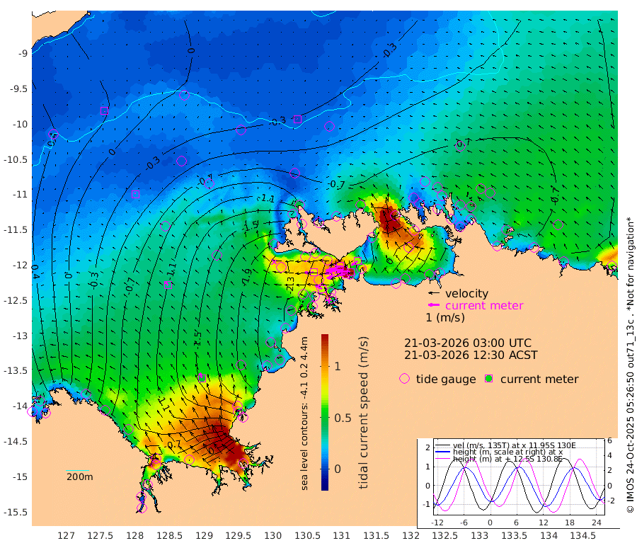 172cm/s -102T +4cm/s rms + 6cm/s 51T. Darwin_C1 52m 123cm/s -89T +4cm/s rms + 7cm/s -161T. Darwin_CW1 22m 130cm/s -109T +4cm/s rms + 8cm/s 61T. Darwin_CW2 34m 65cm/s -123T +3cm/s rms + 9cm/s 98T. Darwin_CW3 22m 159cm/s -92T +5cm/s rms + 7cm/s 88T. Darwin_C3 56m 96cm/s -116T +2cm/s rms + 9cm/s -126T. Darwin_CTbW 22m 3cm/s -50T +9cm/s rms + 2cm/s -110T. NWSLYN 196m 80cm/s -92T +1cm/s rms + 1cm/s -47T. DARBGF 30m 3cm/s -144T +7cm/s rms + 2cm/s -137T. ITFTIS 464m 12cm/s -4T +9cm/s rms + 1cm/s 74T. ITFMHB 146m 49cm/s -20T +4cm/s rms + 1cm/s -134T. ITFJBG 61m 35cm/s -38T +6cm/s rms + 4cm/s 121T. ITFFTB 108m 70cm/s -63T +4cm/s rms + 3cm/s 80T. NRSDAR 19m 145cm Carronade Island 151cm Guy Point 146cm Napier Broome Bay 45cm Lesueur Island -63cm Reveley Island -32cm Rocky Island -81cm Cape Domett -67cm Lacrosse Island -18cm Adolphus Island 100cm Pender Point 169cm Wyndham -42cm The Boxers -78cm Unnamed Shoal 18cm Loxton Shoal -118cm Pelican Island -46cm Calder Shoal -9cm Evans Shoal 14cm Quoin Island -187cm Port Keats -184cm Jones Point 143cm Catfish Island -179cm Cape Scott Offshore -287cm Cape Ford -217cm Anson Bay -42cm Goodrich Bank -198cm Peron Island North -216cm Point Jenny -218cm Native Point -222cm Fish Reef -234cm Tapa Bay -143cm Point Fawcett (Offshore) -246cm Burge Point -250cm Munkunuwa -194cm Beagle A -241cm Parsons Bank -229cm Fenton Patches -17cm Lynedoch Bank -212cm Hancox Shoal Area -232cm Nightcliff -242cm Darwin -232cm Charles Point Patches -117cm Glyde Point -3cm Chambers Bay 24cm Point Stuart -67cm Cape Hotham -5cm Christine Reef 38cm West Alligator Head 92cm East Field Island -17cm Two Hills Bay -120cm Newby Shoal -24cm Camp Point -234cm Medina Inlet South -139cm South Barlow Point -101cm St. Asaph Bay -54cm Cape Van Dieman -60cm Snake Bay -44cm Cache Point 60cm Echo Shoal -48cm Point Jahleel (Off) -64cm Cape Don -56cm Port Essington -57cm Smith Point - West -49cm NW Peacock Island -36cm North Of Jones Shoal -14cm Peacock Island -53cm Point David -59cm D'urville Point -36cm Money Shoal -50cm Copeland Island -64cm Cape Cockburn -49cm One Tree Point -46cm Hogmany Shoal -44cm New Year Island - West -50cm Grant Island -45cm Aurari Bay -41cm Cuthbert Point -52cm North Goulburn Island -36cm Paxie Shoal -38cm Entrance Island -17cm Yabooma Island