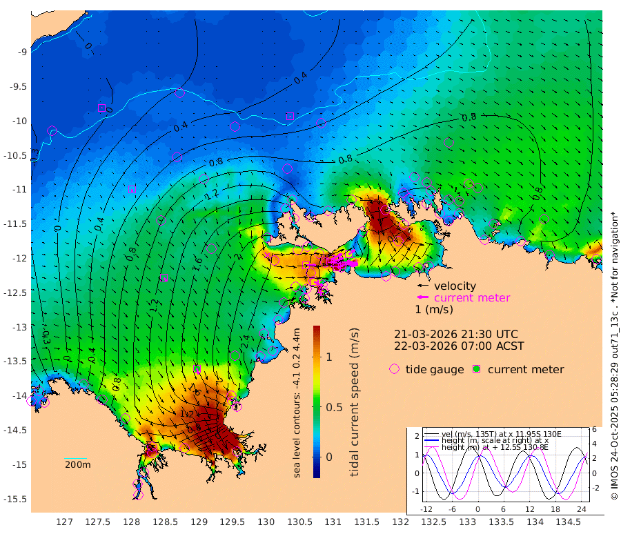 197cm/s 78T +4cm/s rms + 6cm/s 51T. Darwin_C1 52m 150cm/s 88T +4cm/s rms + 7cm/s -161T. Darwin_CW1 22m 128cm/s 74T +4cm/s rms + 8cm/s 61T. Darwin_CW2 34m 73cm/s 53T +3cm/s rms + 9cm/s 98T. Darwin_CW3 22m 172cm/s 88T +5cm/s rms + 7cm/s 88T. Darwin_C3 56m 111cm/s 64T +2cm/s rms + 9cm/s -126T. Darwin_CTbW 22m 8cm/s 135T +9cm/s rms + 2cm/s -110T. NWSLYN 196m 90cm/s 88T +1cm/s rms + 1cm/s -47T. DARBGF 30m 3cm/s 37T +7cm/s rms + 2cm/s -137T. ITFTIS 464m 20cm/s 176T +9cm/s rms + 1cm/s 74T. ITFMHB 146m 53cm/s 164T +4cm/s rms + 1cm/s -134T. ITFJBG 61m 41cm/s 142T +6cm/s rms + 4cm/s 121T. ITFFTB 108m 87cm/s 117T +4cm/s rms + 3cm/s 80T. NRSDAR 19m -124cm Carronade Island -123cm Guy Point -133cm Napier Broome Bay -14cm Lesueur Island 99cm Reveley Island 33cm Rocky Island 118cm Cape Domett 106cm Lacrosse Island 56cm Adolphus Island -81cm Pender Point -150cm Wyndham 68cm The Boxers 87cm Unnamed Shoal 6cm Loxton Shoal 164cm Pelican Island 73cm Calder Shoal 37cm Evans Shoal 28cm Quoin Island 230cm Port Keats 219cm Jones Point -95cm Catfish Island 224cm Cape Scott Offshore 356cm Cape Ford 261cm Anson Bay 67cm Goodrich Bank 244cm Peron Island North 261cm Point Jenny 261cm Native Point 265cm Fish Reef 280cm Tapa Bay 184cm Point Fawcett (Offshore) 286cm Burge Point 288cm Munkunuwa 234cm Beagle A 280cm Parsons Bank 270cm Fenton Patches 36cm Lynedoch Bank 257cm Hancox Shoal Area 275cm Nightcliff 284cm Darwin 281cm Charles Point Patches 146cm Glyde Point 26cm Chambers Bay -6cm Point Stuart 93cm Cape Hotham 31cm Christine Reef -20cm West Alligator Head -78cm East Field Island 40cm Two Hills Bay 154cm Newby Shoal 44cm Camp Point 276cm Medina Inlet South 171cm South Barlow Point 135cm St. Asaph Bay 78cm Cape Van Dieman 81cm Snake Bay 72cm Cache Point -36cm Echo Shoal 74cm Point Jahleel (Off) 90cm Cape Don 82cm Port Essington 86cm Smith Point - West 75cm NW Peacock Island 63cm North Of Jones Shoal 23cm Peacock Island 71cm Point David 85cm D'urville Point 58cm Money Shoal 69cm Copeland Island 90cm Cape Cockburn 70cm One Tree Point 79cm Hogmany Shoal 61cm New Year Island - West 70cm Grant Island 59cm Aurari Bay 60cm Cuthbert Point 70cm North Goulburn Island 50cm Paxie Shoal 51cm Entrance Island 32cm Yabooma Island
