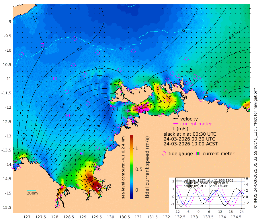 219cm/s 78T +4cm/s rms + 6cm/s 51T. Darwin_C1 52m 158cm/s 92T +4cm/s rms + 7cm/s -161T. Darwin_CW1 22m 124cm/s 73T +4cm/s rms + 8cm/s 61T. Darwin_CW2 34m 113cm/s 47T +3cm/s rms + 9cm/s 98T. Darwin_CW3 22m 196cm/s 89T +5cm/s rms + 7cm/s 88T. Darwin_C3 56m 113cm/s 66T +2cm/s rms + 9cm/s -126T. Darwin_CTbW 22m 3cm/s 19T +9cm/s rms + 2cm/s -110T. NWSLYN 196m 30cm/s 74T +1cm/s rms + 1cm/s -47T. DARBGF 30m 8cm/s -118T +7cm/s rms + 2cm/s -137T. ITFTIS 464m 16cm/s -142T +9cm/s rms + 1cm/s 74T. ITFMHB 146m 18cm/s -140T +4cm/s rms + 1cm/s -134T. ITFJBG 61m 15cm/s -119T +6cm/s rms + 4cm/s 121T. ITFFTB 108m 21cm/s 89T +4cm/s rms + 3cm/s 80T. NRSDAR 19m -55cm Carronade Island -48cm Guy Point -57cm Napier Broome Bay 44cm Lesueur Island 176cm Reveley Island 95cm Rocky Island 253cm Cape Domett 225cm Lacrosse Island 254cm Adolphus Island 184cm Pender Point 157cm Wyndham 20cm The Boxers 20cm Unnamed Shoal -38cm Loxton Shoal 277cm Pelican Island 9cm Calder Shoal -17cm Evans Shoal 301cm Quoin Island 271cm Port Keats 253cm Jones Point 221cm Catfish Island 201cm Cape Scott Offshore 215cm Cape Ford 222cm Anson Bay -5cm Goodrich Bank 201cm Peron Island North 198cm Point Jenny 195cm Native Point 207cm Fish Reef 224cm Tapa Bay 98cm Point Fawcett (Offshore) 239cm Burge Point 218cm Munkunuwa 159cm Beagle A 242cm Parsons Bank 222cm Fenton Patches -18cm Lynedoch Bank 238cm Hancox Shoal Area 246cm Nightcliff 259cm Darwin 231cm Charles Point Patches 185cm Glyde Point 148cm Chambers Bay 143cm Point Stuart 159cm Cape Hotham 145cm Christine Reef 154cm West Alligator Head 132cm East Field Island 133cm Two Hills Bay 99cm Newby Shoal 121cm Camp Point 220cm Medina Inlet South 79cm South Barlow Point 47cm St. Asaph Bay -1cm Cape Van Dieman 5cm Snake Bay 6cm Cache Point -67cm Echo Shoal 26cm Point Jahleel (Off) 80cm Cape Don 34cm Port Essington 38cm Smith Point - West 30cm NW Peacock Island 14cm North Of Jones Shoal 6cm Peacock Island 45cm Point David 38cm D'urville Point 17cm Money Shoal 48cm Copeland Island 67cm Cape Cockburn 45cm One Tree Point 66cm Hogmany Shoal 40cm New Year Island - West 52cm Grant Island 60cm Aurari Bay 85cm Cuthbert Point 68cm North Goulburn Island 90cm Paxie Shoal 105cm Entrance Island 120cm Yabooma Island