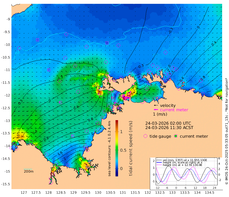 140cm/s 79T +4cm/s rms + 6cm/s 51T. Darwin_C1 52m 109cm/s 92T +4cm/s rms + 7cm/s -161T. Darwin_CW1 22m 63cm/s 70T +4cm/s rms + 8cm/s 61T. Darwin_CW2 34m 84cm/s 47T +3cm/s rms + 9cm/s 98T. Darwin_CW3 22m 113cm/s 90T +5cm/s rms + 7cm/s 88T. Darwin_C3 56m 74cm/s 66T +2cm/s rms + 9cm/s -126T. Darwin_CTbW 22m 5cm/s -9T +9cm/s rms + 2cm/s -110T. NWSLYN 196m 29cm/s -72T +1cm/s rms + 1cm/s -47T. DARBGF 30m 10cm/s -111T +7cm/s rms + 2cm/s -137T. ITFTIS 464m 12cm/s -93T +9cm/s rms + 1cm/s 74T. ITFMHB 146m 27cm/s -53T +4cm/s rms + 1cm/s -134T. ITFJBG 61m 33cm/s -65T +6cm/s rms + 4cm/s 121T. ITFFTB 108m 49cm/s -49T +4cm/s rms + 3cm/s 80T. NRSDAR 19m 46cm Carronade Island 57cm Guy Point 48cm Napier Broome Bay 92cm Lesueur Island 171cm Reveley Island 90cm Rocky Island 257cm Cape Domett 232cm Lacrosse Island 300cm Adolphus Island 308cm Pender Point 325cm Wyndham -6cm The Boxers -25cm Unnamed Shoal -45cm Loxton Shoal 256cm Pelican Island -27cm Calder Shoal -40cm Evans Shoal 373cm Quoin Island 204cm Port Keats 185cm Jones Point 368cm Catfish Island 116cm Cape Scott Offshore 56cm Cape Ford 119cm Anson Bay -44cm Goodrich Bank 98cm Peron Island North 94cm Point Jenny 89cm Native Point 94cm Fish Reef 110cm Tapa Bay 12cm Point Fawcett (Offshore) 125cm Burge Point 85cm Munkunuwa 63cm Beagle A 124cm Parsons Bank 117cm Fenton Patches -41cm Lynedoch Bank 141cm Hancox Shoal Area 142cm Nightcliff 145cm Darwin 117cm Charles Point Patches 149cm Glyde Point 192cm Chambers Bay 200cm Point Stuart 151cm Cape Hotham 185cm Christine Reef 225cm West Alligator Head 240cm East Field Island 153cm Two Hills Bay 41cm Newby Shoal 143cm Camp Point 100cm Medina Inlet South -10cm South Barlow Point -23cm St. Asaph Bay -46cm Cape Van Dieman -45cm Snake Bay -32cm Cache Point -49cm Echo Shoal -9cm Point Jahleel (Off) 50cm Cape Don -6cm Port Essington -3cm Smith Point - West -5cm NW Peacock Island -19cm North Of Jones Shoal -6cm Peacock Island 15cm Point David -3cm D'urville Point -7cm Money Shoal 21cm Copeland Island 31cm Cape Cockburn 16cm One Tree Point 41cm Hogmany Shoal 18cm New Year Island - West 25cm Grant Island 44cm Aurari Bay 78cm Cuthbert Point 47cm North Goulburn Island 94cm Paxie Shoal 112cm Entrance Island 147cm Yabooma Island