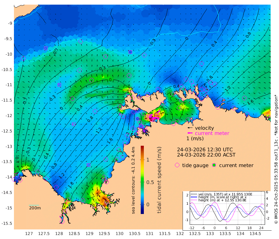 164cm/s 78T +4cm/s rms + 6cm/s 51T. Darwin_C1 52m 110cm/s 91T +4cm/s rms + 7cm/s -161T. Darwin_CW1 22m 82cm/s 74T +4cm/s rms + 8cm/s 61T. Darwin_CW2 34m 97cm/s 43T +3cm/s rms + 9cm/s 98T. Darwin_CW3 22m 138cm/s 89T +5cm/s rms + 7cm/s 88T. Darwin_C3 56m 84cm/s 65T +2cm/s rms + 9cm/s -126T. Darwin_CTbW 22m 8cm/s -10T +9cm/s rms + 2cm/s -110T. NWSLYN 196m 8cm/s 40T +1cm/s rms + 1cm/s -47T. DARBGF 30m 10cm/s -81T +7cm/s rms + 2cm/s -137T. ITFTIS 464m 14cm/s -46T +9cm/s rms + 1cm/s 74T. ITFMHB 146m 15cm/s -102T +4cm/s rms + 1cm/s -134T. ITFJBG 61m 24cm/s -72T +6cm/s rms + 4cm/s 121T. ITFFTB 108m 10cm/s 22T +4cm/s rms + 3cm/s 80T. NRSDAR 19m -94cm Carronade Island -100cm Guy Point -95cm Napier Broome Bay 14cm Lesueur Island 121cm Reveley Island 53cm Rocky Island 194cm Cape Domett 165cm Lacrosse Island 209cm Adolphus Island 148cm Pender Point 131cm Wyndham -13cm The Boxers 28cm Unnamed Shoal -73cm Loxton Shoal 221cm Pelican Island -32cm Calder Shoal -50cm Evans Shoal 249cm Quoin Island 205cm Port Keats 211cm Jones Point 181cm Catfish Island 132cm Cape Scott Offshore 134cm Cape Ford 155cm Anson Bay -23cm Goodrich Bank 143cm Peron Island North 127cm Point Jenny 127cm Native Point 144cm Fish Reef 156cm Tapa Bay 41cm Point Fawcett (Offshore) 174cm Burge Point 146cm Munkunuwa 99cm Beagle A 191cm Parsons Bank 162cm Fenton Patches -28cm Lynedoch Bank 185cm Hancox Shoal Area 177cm Nightcliff 207cm Darwin 174cm Charles Point Patches 162cm Glyde Point 135cm Chambers Bay 145cm Point Stuart 146cm Cape Hotham 122cm Christine Reef 154cm West Alligator Head 142cm East Field Island 128cm Two Hills Bay 49cm Newby Shoal 116cm Camp Point 155cm Medina Inlet South 39cm South Barlow Point 2cm St. Asaph Bay -19cm Cape Van Dieman -5cm Snake Bay -14cm Cache Point -101cm Echo Shoal 11cm Point Jahleel (Off) 68cm Cape Don 33cm Port Essington 32cm Smith Point - West 35cm NW Peacock Island 4cm North Of Jones Shoal 6cm Peacock Island 78cm Point David 44cm D'urville Point 31cm Money Shoal 82cm Copeland Island 104cm Cape Cockburn 69cm One Tree Point 102cm Hogmany Shoal 73cm New Year Island - West 83cm Grant Island 107cm Aurari Bay 134cm Cuthbert Point 106cm North Goulburn Island 136cm Paxie Shoal 164cm Entrance Island 189cm Yabooma Island