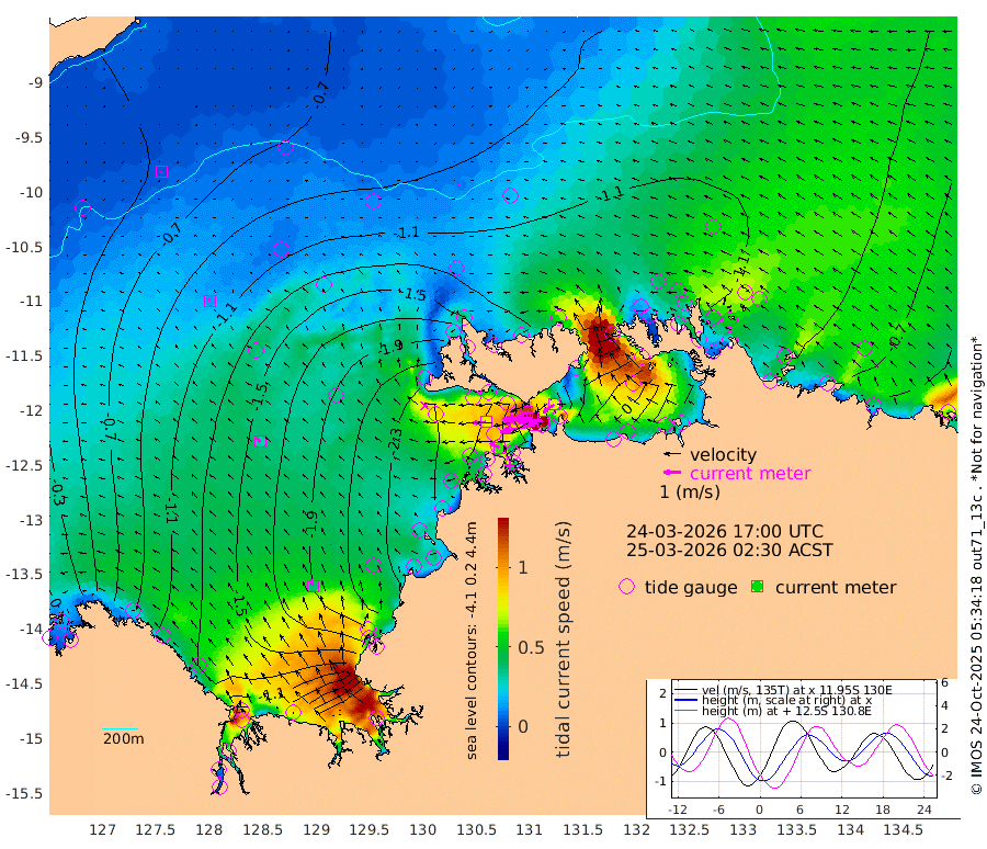207cm/s -102T +4cm/s rms + 6cm/s 51T. Darwin_C1 52m 146cm/s -89T +4cm/s rms + 7cm/s -161T. Darwin_CW1 22m 128cm/s -107T +4cm/s rms + 8cm/s 61T. Darwin_CW2 34m 77cm/s -125T +3cm/s rms + 9cm/s 98T. Darwin_CW3 22m 172cm/s -92T +5cm/s rms + 7cm/s 88T. Darwin_C3 56m 119cm/s -115T +2cm/s rms + 9cm/s -126T. Darwin_CTbW 22m 9cm/s -62T +9cm/s rms + 2cm/s -110T. NWSLYN 196m 76cm/s -93T +1cm/s rms + 1cm/s -47T. DARBGF 30m 6cm/s -153T +7cm/s rms + 2cm/s -137T. ITFTIS 464m 14cm/s -13T +9cm/s rms + 1cm/s 74T. ITFMHB 146m 37cm/s -18T +4cm/s rms + 1cm/s -134T. ITFJBG 61m 30cm/s -45T +6cm/s rms + 4cm/s 121T. ITFFTB 108m 61cm/s -64T +4cm/s rms + 3cm/s 80T. NRSDAR 19m 33cm Carronade Island 32cm Guy Point 32cm Napier Broome Bay -65cm Lesueur Island -129cm Reveley Island -75cm Rocky Island -157cm Cape Domett -145cm Lacrosse Island -114cm Adolphus Island -3cm Pender Point 46cm Wyndham -121cm The Boxers -129cm Unnamed Shoal -73cm Loxton Shoal -182cm Pelican Island -123cm Calder Shoal -89cm Evans Shoal -99cm Quoin Island -237cm Port Keats -217cm Jones Point 0cm Catfish Island -229cm Cape Scott Offshore -342cm Cape Ford -255cm Anson Bay -108cm Goodrich Bank -251cm Peron Island North -250cm Point Jenny -250cm Native Point -260cm Fish Reef -266cm Tapa Bay -203cm Point Fawcett (Offshore) -272cm Burge Point -266cm Munkunuwa -233cm Beagle A -266cm Parsons Bank -257cm Fenton Patches -84cm Lynedoch Bank -244cm Hancox Shoal Area -259cm Nightcliff -279cm Darwin -282cm Charles Point Patches -160cm Glyde Point -50cm Chambers Bay -29cm Point Stuart -113cm Cape Hotham -55cm Christine Reef -17cm West Alligator Head 30cm East Field Island -72cm Two Hills Bay -195cm Newby Shoal -71cm Camp Point -271cm Medina Inlet South -191cm South Barlow Point -162cm St. Asaph Bay -115cm Cape Van Dieman -123cm Snake Bay -114cm Cache Point -33cm Echo Shoal -111cm Point Jahleel (Off) -120cm Cape Don -116cm Port Essington -118cm Smith Point - West -109cm NW Peacock Island -106cm North Of Jones Shoal -37cm Peacock Island -96cm Point David -115cm D'urville Point -94cm Money Shoal -91cm Copeland Island -126cm Cape Cockburn -102cm One Tree Point -112cm Hogmany Shoal -95cm New Year Island - West -100cm Grant Island -80cm Aurari Bay -81cm Cuthbert Point -95cm North Goulburn Island -68cm Paxie Shoal -56cm Entrance Island -27cm Yabooma Island