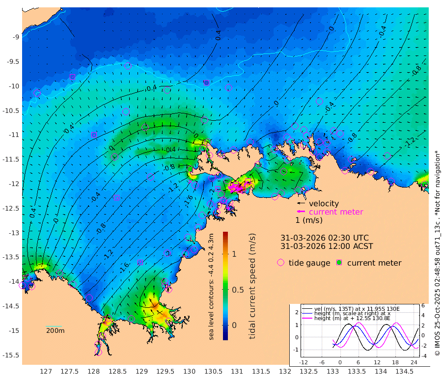 128cm/s -101T +4cm/s rms + 6cm/s 51T. Darwin_C1 52m 111cm/s -91T +4cm/s rms + 7cm/s -161T. Darwin_CW1 22m 81cm/s -106T +4cm/s rms + 8cm/s 61T. Darwin_CW2 34m 74cm/s -136T +3cm/s rms + 9cm/s 98T. Darwin_CW3 22m 131cm/s -91T +5cm/s rms + 7cm/s 88T. Darwin_C3 56m 66cm/s -116T +2cm/s rms + 9cm/s -126T. Darwin_CTbW 22m 4cm/s -143T +9cm/s rms + 2cm/s -110T. NWSLYN 196m 16cm/s -115T +1cm/s rms + 1cm/s -47T. DARBGF 30m 8cm/s 132T +7cm/s rms + 2cm/s -137T. ITFTIS 464m 9cm/s 138T +9cm/s rms + 1cm/s 74T. ITFMHB 146m 11cm/s 42T +4cm/s rms + 1cm/s -134T. ITFJBG 61m 14cm/s 109T +6cm/s rms + 4cm/s 121T. ITFFTB 108m 10cm/s -102T +4cm/s rms + 3cm/s 80T. NRSDAR 19m 61cm Carronade Island 60cm Guy Point 60cm Napier Broome Bay -41cm Lesueur Island -150cm Reveley Island -41cm Rocky Island -230cm Cape Domett -206cm Lacrosse Island -222cm Adolphus Island -185cm Pender Point -161cm Wyndham -4cm The Boxers -26cm Unnamed Shoal 62cm Loxton Shoal -253cm Pelican Island 12cm Calder Shoal 43cm Evans Shoal -272cm Quoin Island -239cm Port Keats -248cm Jones Point -211cm Catfish Island -169cm Cape Scott Offshore -211cm Cape Ford -194cm Anson Bay 23cm Goodrich Bank -166cm Peron Island North -164cm Point Jenny -162cm Native Point -178cm Fish Reef -192cm Tapa Bay -70cm Point Fawcett (Offshore) -212cm Burge Point -180cm Munkunuwa -130cm Beagle A -206cm Parsons Bank -193cm Fenton Patches 32cm Lynedoch Bank -203cm Hancox Shoal Area -208cm Nightcliff -231cm Darwin -206cm Charles Point Patches -174cm Glyde Point -151cm Chambers Bay -148cm Point Stuart -153cm Cape Hotham -129cm Christine Reef -157cm West Alligator Head -148cm East Field Island -124cm Two Hills Bay -64cm Newby Shoal -128cm Camp Point -187cm Medina Inlet South -48cm South Barlow Point -20cm St. Asaph Bay 18cm Cape Van Dieman 13cm Snake Bay 13cm Cache Point 82cm Echo Shoal -7cm Point Jahleel (Off) -62cm Cape Don -19cm Port Essington -12cm Smith Point - West -10cm NW Peacock Island 6cm North Of Jones Shoal 0cm Peacock Island -43cm Point David -16cm D'urville Point -12cm Money Shoal -45cm Copeland Island -57cm Cape Cockburn -38cm One Tree Point -60cm Hogmany Shoal -38cm New Year Island - West -44cm Grant Island -63cm Aurari Bay -84cm Cuthbert Point -67cm North Goulburn Island -107cm Paxie Shoal -121cm Entrance Island -148cm Yabooma Island