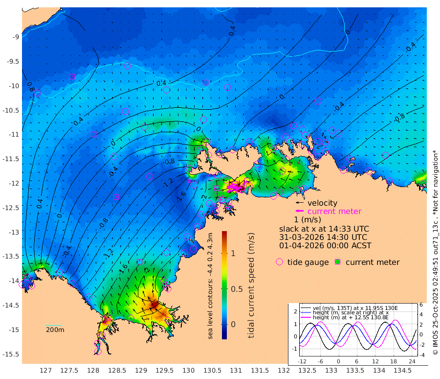 159cm/s -101T +4cm/s rms + 6cm/s 51T. Darwin_C1 52m 128cm/s -91T +4cm/s rms + 7cm/s -161T. Darwin_CW1 22m 93cm/s -107T +4cm/s rms + 8cm/s 61T. Darwin_CW2 34m 78cm/s -136T +3cm/s rms + 9cm/s 98T. Darwin_CW3 22m 137cm/s -91T +5cm/s rms + 7cm/s 88T. Darwin_C3 56m 87cm/s -116T +2cm/s rms + 9cm/s -126T. Darwin_CTbW 22m 9cm/s 165T +9cm/s rms + 2cm/s -110T. NWSLYN 196m 32cm/s -100T +1cm/s rms + 1cm/s -47T. DARBGF 30m 6cm/s 96T +7cm/s rms + 2cm/s -137T. ITFTIS 464m 6cm/s 75T +9cm/s rms + 1cm/s 74T. ITFMHB 146m 21cm/s 7T +4cm/s rms + 1cm/s -134T. ITFJBG 61m 8cm/s 51T +6cm/s rms + 4cm/s 121T. ITFFTB 108m 26cm/s -74T +4cm/s rms + 3cm/s 80T. NRSDAR 19m 80cm Carronade Island 87cm Guy Point 88cm Napier Broome Bay -39cm Lesueur Island -147cm Reveley Island -79cm Rocky Island -225cm Cape Domett -205cm Lacrosse Island -223cm Adolphus Island -134cm Pender Point -109cm Wyndham -15cm The Boxers -33cm Unnamed Shoal 59cm Loxton Shoal -251cm Pelican Island 0cm Calder Shoal 35cm Evans Shoal -252cm Quoin Island -260cm Port Keats -258cm Jones Point -187cm Catfish Island -185cm Cape Scott Offshore -247cm Cape Ford -210cm Anson Bay 11cm Goodrich Bank -194cm Peron Island North -193cm Point Jenny -191cm Native Point -217cm Fish Reef -217cm Tapa Bay -92cm Point Fawcett (Offshore) -246cm Burge Point -208cm Munkunuwa -177cm Beagle A -233cm Parsons Bank -240cm Fenton Patches 25cm Lynedoch Bank -225cm Hancox Shoal Area -240cm Nightcliff -258cm Darwin -231cm Charles Point Patches -187cm Glyde Point -139cm Chambers Bay -137cm Point Stuart -158cm Cape Hotham -128cm Christine Reef -145cm West Alligator Head -131cm East Field Island -123cm Two Hills Bay -106cm Newby Shoal -121cm Camp Point -216cm Medina Inlet South -75cm South Barlow Point -41cm St. Asaph Bay 6cm Cape Van Dieman 1cm Snake Bay 0cm Cache Point 80cm Echo Shoal -19cm Point Jahleel (Off) -69cm Cape Don -27cm Port Essington -28cm Smith Point - West -22cm NW Peacock Island -2cm North Of Jones Shoal -3cm Peacock Island -37cm Point David -30cm D'urville Point -13cm Money Shoal -41cm Copeland Island -60cm Cape Cockburn -36cm One Tree Point -47cm Hogmany Shoal -38cm New Year Island - West -42cm Grant Island -64cm Aurari Bay -77cm Cuthbert Point -61cm North Goulburn Island -75cm Paxie Shoal -99cm Entrance Island -116cm Yabooma Island