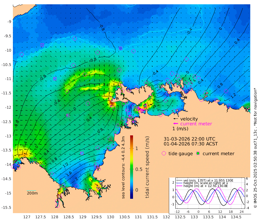 79cm/s 80T +4cm/s rms + 6cm/s 51T. Darwin_C1 52m 75cm/s 90T +4cm/s rms + 7cm/s -161T. Darwin_CW1 22m 60cm/s 70T +4cm/s rms + 8cm/s 61T. Darwin_CW2 34m 59cm/s 42T +3cm/s rms + 9cm/s 98T. Darwin_CW3 22m 99cm/s 90T +5cm/s rms + 7cm/s 88T. Darwin_C3 56m 35cm/s 65T +2cm/s rms + 9cm/s -126T. Darwin_CTbW 22m 9cm/s -15T +9cm/s rms + 2cm/s -110T. NWSLYN 196m 24cm/s -70T +1cm/s rms + 1cm/s -47T. DARBGF 30m 11cm/s -95T +7cm/s rms + 2cm/s -137T. ITFTIS 464m 15cm/s -55T +9cm/s rms + 1cm/s 74T. ITFMHB 146m 21cm/s -67T +4cm/s rms + 1cm/s -134T. ITFJBG 61m 34cm/s -63T +6cm/s rms + 4cm/s 121T. ITFFTB 108m 39cm/s -49T +4cm/s rms + 3cm/s 80T. NRSDAR 19m -50cm Carronade Island -46cm Guy Point -61cm Napier Broome Bay 37cm Lesueur Island 145cm Reveley Island 33cm Rocky Island 235cm Cape Domett 209cm Lacrosse Island 271cm Adolphus Island 246cm Pender Point 247cm Wyndham -44cm The Boxers -41cm Unnamed Shoal -90cm Loxton Shoal 249cm Pelican Island -58cm Calder Shoal -72cm Evans Shoal 340cm Quoin Island 206cm Port Keats 209cm Jones Point 274cm Catfish Island 111cm Cape Scott Offshore 123cm Cape Ford 124cm Anson Bay -62cm Goodrich Bank 108cm Peron Island North 93cm Point Jenny 89cm Native Point 112cm Fish Reef 119cm Tapa Bay 3cm Point Fawcett (Offshore) 148cm Burge Point 105cm Munkunuwa 67cm Beagle A 147cm Parsons Bank 135cm Fenton Patches -62cm Lynedoch Bank 155cm Hancox Shoal Area 151cm Nightcliff 173cm Darwin 140cm Charles Point Patches 153cm Glyde Point 170cm Chambers Bay 181cm Point Stuart 152cm Cape Hotham 153cm Christine Reef 200cm West Alligator Head 211cm East Field Island 136cm Two Hills Bay 13cm Newby Shoal 133cm Camp Point 117cm Medina Inlet South -12cm South Barlow Point -35cm St. Asaph Bay -62cm Cape Van Dieman -58cm Snake Bay -51cm Cache Point -97cm Echo Shoal -25cm Point Jahleel (Off) 37cm Cape Don -12cm Port Essington -16cm Smith Point - West -14cm NW Peacock Island -33cm North Of Jones Shoal -9cm Peacock Island 21cm Point David -10cm D'urville Point -11cm Money Shoal 28cm Copeland Island 39cm Cape Cockburn 17cm One Tree Point 43cm Hogmany Shoal 17cm New Year Island - West 25cm Grant Island 53cm Aurari Bay 83cm Cuthbert Point 53cm North Goulburn Island 101cm Paxie Shoal 131cm Entrance Island 181cm Yabooma Island