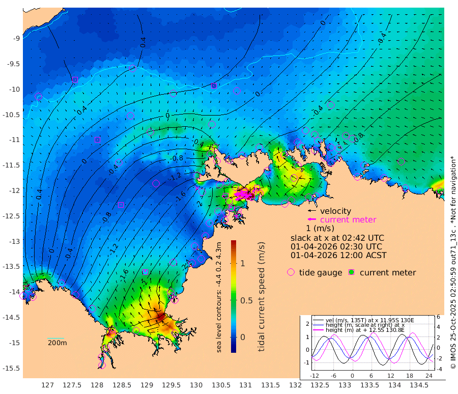 166cm/s -101T +4cm/s rms + 6cm/s 51T. Darwin_C1 52m 131cm/s -90T +4cm/s rms + 7cm/s -161T. Darwin_CW1 22m 106cm/s -106T +4cm/s rms + 8cm/s 61T. Darwin_CW2 34m 79cm/s -134T +3cm/s rms + 9cm/s 98T. Darwin_CW3 22m 159cm/s -91T +5cm/s rms + 7cm/s 88T. Darwin_C3 56m 90cm/s -115T +2cm/s rms + 9cm/s -126T. Darwin_CTbW 22m 3cm/s -124T +9cm/s rms + 2cm/s -110T. NWSLYN 196m 42cm/s -97T +1cm/s rms + 1cm/s -47T. DARBGF 30m 5cm/s 136T +7cm/s rms + 2cm/s -137T. ITFTIS 464m 5cm/s 90T +9cm/s rms + 1cm/s 74T. ITFMHB 146m 22cm/s -1T +4cm/s rms + 1cm/s -134T. ITFJBG 61m 7cm/s 21T +6cm/s rms + 4cm/s 121T. ITFFTB 108m 36cm/s -71T +4cm/s rms + 3cm/s 80T. NRSDAR 19m 99cm Carronade Island 101cm Guy Point 98cm Napier Broome Bay -20cm Lesueur Island -139cm Reveley Island -48cm Rocky Island -210cm Cape Domett -188cm Lacrosse Island -182cm Adolphus Island -115cm Pender Point -74cm Wyndham -17cm The Boxers -49cm Unnamed Shoal 56cm Loxton Shoal -244cm Pelican Island -4cm Calder Shoal 31cm Evans Shoal -222cm Quoin Island -248cm Port Keats -259cm Jones Point -161cm Catfish Island -196cm Cape Scott Offshore -245cm Cape Ford -227cm Anson Bay 6cm Goodrich Bank -199cm Peron Island North -197cm Point Jenny -196cm Native Point -214cm Fish Reef -227cm Tapa Bay -104cm Point Fawcett (Offshore) -241cm Burge Point -222cm Munkunuwa -163cm Beagle A -237cm Parsons Bank -223cm Fenton Patches 20cm Lynedoch Bank -227cm Hancox Shoal Area -237cm Nightcliff -261cm Darwin -238cm Charles Point Patches -176cm Glyde Point -122cm Chambers Bay -113cm Point Stuart -144cm Cape Hotham -101cm Christine Reef -118cm West Alligator Head -92cm East Field Island -107cm Two Hills Bay -83cm Newby Shoal -108cm Camp Point -224cm Medina Inlet South -82cm South Barlow Point -48cm St. Asaph Bay -2cm Cape Van Dieman -9cm Snake Bay -3cm Cache Point 83cm Echo Shoal -21cm Point Jahleel (Off) -69cm Cape Don -32cm Port Essington -28cm Smith Point - West -22cm NW Peacock Island -7cm North Of Jones Shoal -5cm Peacock Island -49cm Point David -30cm D'urville Point -18cm Money Shoal -50cm Copeland Island -63cm Cape Cockburn -45cm One Tree Point -60cm Hogmany Shoal -42cm New Year Island - West -48cm Grant Island -65cm Aurari Bay -77cm Cuthbert Point -67cm North Goulburn Island -93cm Paxie Shoal -102cm Entrance Island -116cm Yabooma Island