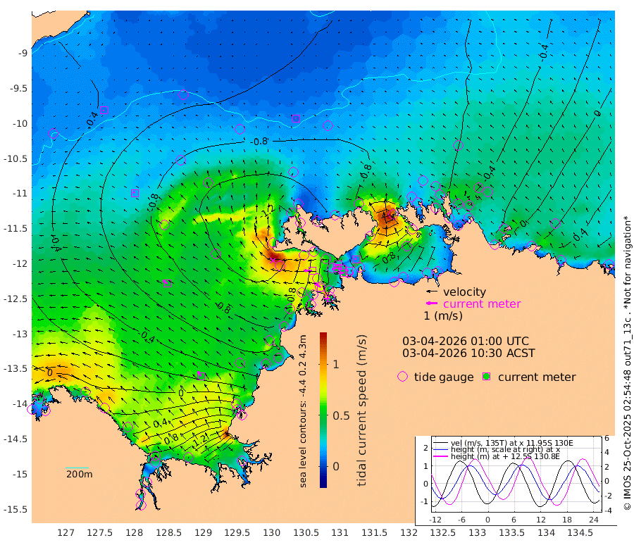 45cm/s -105T +4cm/s rms + 6cm/s 51T. Darwin_C1 52m 21cm/s -83T +4cm/s rms + 7cm/s -161T. Darwin_CW1 22m 49cm/s -110T +4cm/s rms + 8cm/s 61T. Darwin_CW2 34m 12cm/s -24T +3cm/s rms + 9cm/s 98T. Darwin_CW3 22m 35cm/s -97T +5cm/s rms + 7cm/s 88T. Darwin_C3 56m 33cm/s -118T +2cm/s rms + 9cm/s -126T. Darwin_CTbW 22m 8cm/s -23T +9cm/s rms + 2cm/s -110T. NWSLYN 196m 73cm/s -87T +1cm/s rms + 1cm/s -47T. DARBGF 30m 10cm/s -109T +7cm/s rms + 2cm/s -137T. ITFTIS 464m 16cm/s -39T +9cm/s rms + 1cm/s 74T. ITFMHB 146m 50cm/s -33T +4cm/s rms + 1cm/s -134T. ITFJBG 61m 50cm/s -52T +6cm/s rms + 4cm/s 121T. ITFFTB 108m 76cm/s -56T +4cm/s rms + 3cm/s 80T. NRSDAR 19m 86cm Carronade Island 95cm Guy Point 84cm Napier Broome Bay 64cm Lesueur Island 71cm Reveley Island 24cm Rocky Island 122cm Cape Domett 109cm Lacrosse Island 189cm Adolphus Island 268cm Pender Point 315cm Wyndham -55cm The Boxers -82cm Unnamed Shoal -40cm Loxton Shoal 94cm Pelican Island -65cm Calder Shoal -49cm Evans Shoal 256cm Quoin Island 20cm Port Keats 17cm Jones Point 275cm Catfish Island -48cm Cape Scott Offshore -107cm Cape Ford -69cm Anson Bay -70cm Goodrich Bank -62cm Peron Island North -84cm Point Jenny -88cm Native Point -79cm Fish Reef -80cm Tapa Bay -97cm Point Fawcett (Offshore) -62cm Burge Point -95cm Munkunuwa -90cm Beagle A -60cm Parsons Bank -67cm Fenton Patches -52cm Lynedoch Bank -39cm Hancox Shoal Area -56cm Nightcliff -48cm Darwin -68cm Charles Point Patches 27cm Glyde Point 118cm Chambers Bay 149cm Point Stuart 62cm Cape Hotham 112cm Christine Reef 174cm West Alligator Head 217cm East Field Island 89cm Two Hills Bay -65cm Newby Shoal 77cm Camp Point -80cm Medina Inlet South -103cm South Barlow Point -94cm St. Asaph Bay -78cm Cape Van Dieman -79cm Snake Bay -64cm Cache Point -21cm Echo Shoal -48cm Point Jahleel (Off) -15cm Cape Don -48cm Port Essington -51cm Smith Point - West -43cm NW Peacock Island -48cm North Of Jones Shoal -17cm Peacock Island -23cm Point David -48cm D'urville Point -34cm Money Shoal -18cm Copeland Island -17cm Cape Cockburn -23cm One Tree Point -3cm Hogmany Shoal -20cm New Year Island - West -16cm Grant Island -1cm Aurari Bay 26cm Cuthbert Point 0cm North Goulburn Island 43cm Paxie Shoal 61cm Entrance Island 105cm Yabooma Island