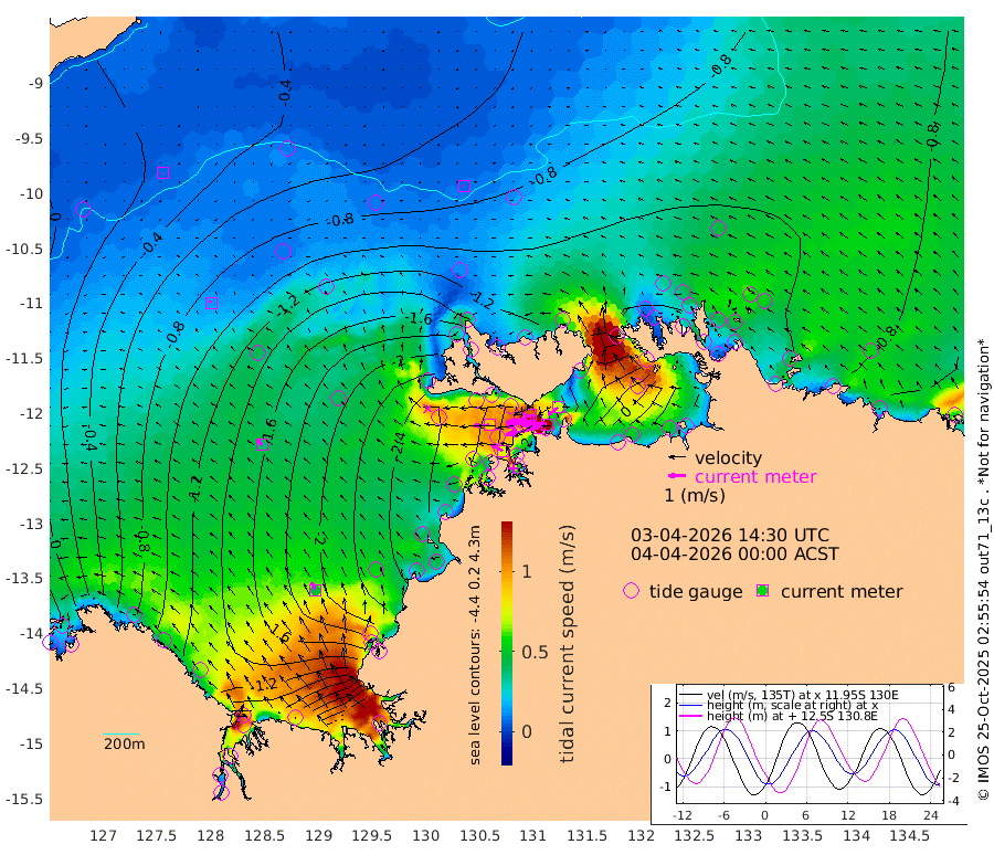 194cm/s -102T +4cm/s rms + 6cm/s 51T. Darwin_C1 52m 152cm/s -89T +4cm/s rms + 7cm/s -161T. Darwin_CW1 22m 134cm/s -108T +4cm/s rms + 8cm/s 61T. Darwin_CW2 34m 71cm/s -127T +3cm/s rms + 9cm/s 98T. Darwin_CW3 22m 174cm/s -92T +5cm/s rms + 7cm/s 88T. Darwin_C3 56m 113cm/s -115T +2cm/s rms + 9cm/s -126T. Darwin_CTbW 22m 6cm/s -76T +9cm/s rms + 2cm/s -110T. NWSLYN 196m 89cm/s -92T +1cm/s rms + 1cm/s -47T. DARBGF 30m 6cm/s -150T +7cm/s rms + 2cm/s -137T. ITFTIS 464m 13cm/s -18T +9cm/s rms + 1cm/s 74T. ITFMHB 146m 48cm/s -22T +4cm/s rms + 1cm/s -134T. ITFJBG 61m 37cm/s -46T +6cm/s rms + 4cm/s 121T. ITFFTB 108m 75cm/s -62T +4cm/s rms + 3cm/s 80T. NRSDAR 19m 72cm Carronade Island 76cm Guy Point 77cm Napier Broome Bay -48cm Lesueur Island -114cm Reveley Island -39cm Rocky Island -140cm Cape Domett -141cm Lacrosse Island -89cm Adolphus Island 49cm Pender Point 96cm Wyndham -102cm The Boxers -130cm Unnamed Shoal -39cm Loxton Shoal -177cm Pelican Island -105cm Calder Shoal -61cm Evans Shoal -80cm Quoin Island -242cm Port Keats -224cm Jones Point -13cm Catfish Island -242cm Cape Scott Offshore -309cm Cape Ford -277cm Anson Bay -88cm Goodrich Bank -258cm Peron Island North -260cm Point Jenny -260cm Native Point -274cm Fish Reef -279cm Tapa Bay -203cm Point Fawcett (Offshore) -284cm Burge Point -275cm Munkunuwa -247cm Beagle A -273cm Parsons Bank -276cm Fenton Patches -64cm Lynedoch Bank -255cm Hancox Shoal Area -285cm Nightcliff -291cm Darwin -289cm Charles Point Patches -164cm Glyde Point -53cm Chambers Bay -24cm Point Stuart -118cm Cape Hotham -49cm Christine Reef -12cm West Alligator Head 36cm East Field Island -67cm Two Hills Bay -188cm Newby Shoal -70cm Camp Point -281cm Medina Inlet South -186cm South Barlow Point -154cm St. Asaph Bay -98cm Cape Van Dieman -107cm Snake Bay -96cm Cache Point -8cm Echo Shoal -97cm Point Jahleel (Off) -109cm Cape Don -100cm Port Essington -104cm Smith Point - West -93cm NW Peacock Island -93cm North Of Jones Shoal -34cm Peacock Island -88cm Point David -102cm D'urville Point -81cm Money Shoal -85cm Copeland Island -116cm Cape Cockburn -93cm One Tree Point -91cm Hogmany Shoal -88cm New Year Island - West -88cm Grant Island -87cm Aurari Bay -73cm Cuthbert Point -89cm North Goulburn Island -66cm Paxie Shoal -57cm Entrance Island -39cm Yabooma Island