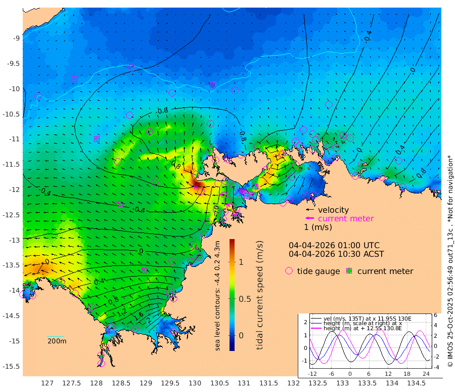22cm/s 84T +4cm/s rms + 6cm/s 51T. Darwin_C1 52m 30cm/s 87T +4cm/s rms + 7cm/s -161T. Darwin_CW1 22m 8cm/s -115T +4cm/s rms + 8cm/s 61T. Darwin_CW2 34m 34cm/s 36T +3cm/s rms + 9cm/s 98T. Darwin_CW3 22m 22cm/s 99T +5cm/s rms + 7cm/s 88T. Darwin_C3 56m 4cm/s 91T +2cm/s rms + 9cm/s -126T. Darwin_CTbW 22m 7cm/s -17T +9cm/s rms + 2cm/s -110T. NWSLYN 196m 61cm/s -84T +1cm/s rms + 1cm/s -47T. DARBGF 30m 11cm/s -108T +7cm/s rms + 2cm/s -137T. ITFTIS 464m 15cm/s -50T +9cm/s rms + 1cm/s 74T. ITFMHB 146m 45cm/s -37T +4cm/s rms + 1cm/s -134T. ITFJBG 61m 48cm/s -55T +6cm/s rms + 4cm/s 121T. ITFFTB 108m 72cm/s -54T +4cm/s rms + 3cm/s 80T. NRSDAR 19m 70cm Carronade Island 78cm Guy Point 69cm Napier Broome Bay 81cm Lesueur Island 119cm Reveley Island 49cm Rocky Island 189cm Cape Domett 171cm Lacrosse Island 247cm Adolphus Island 308cm Pender Point 346cm Wyndham -41cm The Boxers -60cm Unnamed Shoal -46cm Loxton Shoal 170cm Pelican Island -56cm Calder Shoal -49cm Evans Shoal 333cm Quoin Island 94cm Port Keats 93cm Jones Point 359cm Catfish Island 16cm Cape Scott Offshore -46cm Cape Ford 2cm Anson Bay -66cm Goodrich Bank 3cm Peron Island North -25cm Point Jenny -29cm Native Point -13cm Fish Reef -13cm Tapa Bay -59cm Point Fawcett (Offshore) 5cm Burge Point -29cm Munkunuwa -41cm Beagle A 9cm Parsons Bank -4cm Fenton Patches -52cm Lynedoch Bank 27cm Hancox Shoal Area 13cm Nightcliff 28cm Darwin 2cm Charles Point Patches 80cm Glyde Point 158cm Chambers Bay 188cm Point Stuart 107cm Cape Hotham 144cm Christine Reef 215cm West Alligator Head 251cm East Field Island 127cm Two Hills Bay -36cm Newby Shoal 110cm Camp Point -12cm Medina Inlet South -75cm South Barlow Point -74cm St. Asaph Bay -72cm Cape Van Dieman -71cm Snake Bay -56cm Cache Point -34cm Echo Shoal -36cm Point Jahleel (Off) 9cm Cape Don -34cm Port Essington -37cm Smith Point - West -33cm NW Peacock Island -39cm North Of Jones Shoal -13cm Peacock Island -8cm Point David -35cm D'urville Point -27cm Money Shoal -3cm Copeland Island 3cm Cape Cockburn -7cm One Tree Point 17cm Hogmany Shoal -6cm New Year Island - West -1cm Grant Island 19cm Aurari Bay 48cm Cuthbert Point 20cm North Goulburn Island 69cm Paxie Shoal 85cm Entrance Island 130cm Yabooma Island