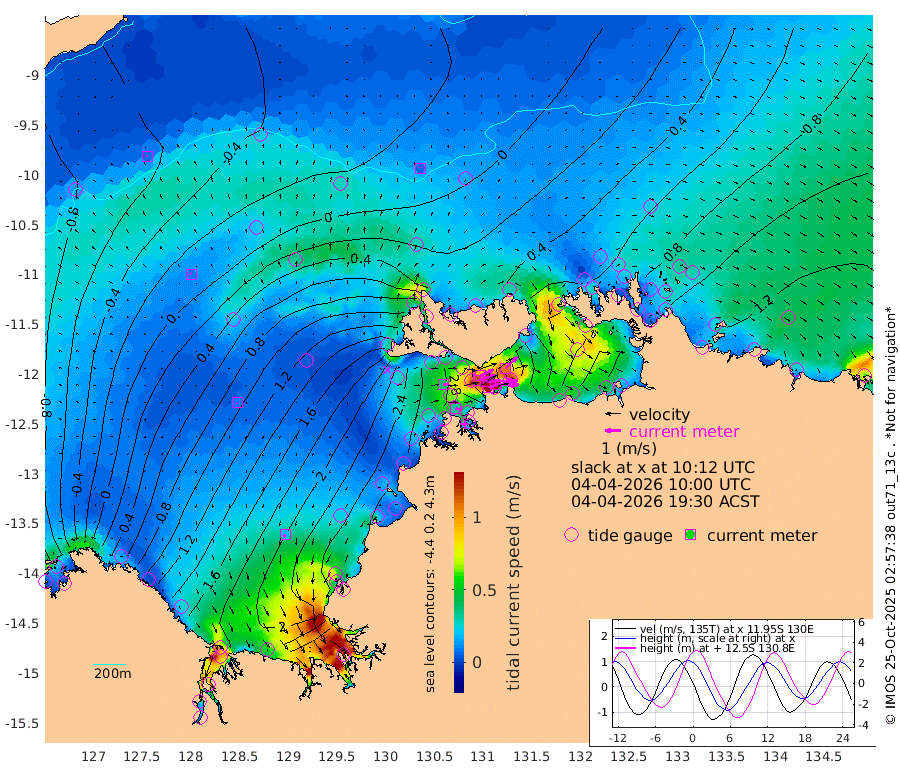 191cm/s 78T +4cm/s rms + 6cm/s 51T. Darwin_C1 52m 151cm/s 91T +4cm/s rms + 7cm/s -161T. Darwin_CW1 22m 117cm/s 74T +4cm/s rms + 8cm/s 61T. Darwin_CW2 34m 107cm/s 44T +3cm/s rms + 9cm/s 98T. Darwin_CW3 22m 188cm/s 89T +5cm/s rms + 7cm/s 88T. Darwin_C3 56m 93cm/s 65T +2cm/s rms + 9cm/s -126T. Darwin_CTbW 22m 7cm/s 0T +9cm/s rms + 2cm/s -110T. NWSLYN 196m 39cm/s 81T +1cm/s rms + 1cm/s -47T. DARBGF 30m 7cm/s -56T +7cm/s rms + 2cm/s -137T. ITFTIS 464m 9cm/s -50T +9cm/s rms + 1cm/s 74T. ITFMHB 146m 19cm/s -160T +4cm/s rms + 1cm/s -134T. ITFJBG 61m 9cm/s -101T +6cm/s rms + 4cm/s 121T. ITFFTB 108m 34cm/s 104T +4cm/s rms + 3cm/s 80T. NRSDAR 19m -123cm Carronade Island -130cm Guy Point -120cm Napier Broome Bay 13cm Lesueur Island 127cm Reveley Island 73cm Rocky Island 212cm Cape Domett 183cm Lacrosse Island 210cm Adolphus Island 109cm Pender Point 74cm Wyndham 20cm The Boxers 54cm Unnamed Shoal -51cm Loxton Shoal 246cm Pelican Island 4cm Calder Shoal -27cm Evans Shoal 251cm Quoin Island 260cm Port Keats 255cm Jones Point 166cm Catfish Island 195cm Cape Scott Offshore 205cm Cape Ford 230cm Anson Bay 3cm Goodrich Bank 205cm Peron Island North 193cm Point Jenny 193cm Native Point 218cm Fish Reef 224cm Tapa Bay 101cm Point Fawcett (Offshore) 245cm Burge Point 220cm Munkunuwa 168cm Beagle A 250cm Parsons Bank 232cm Fenton Patches -7cm Lynedoch Bank 236cm Hancox Shoal Area 248cm Nightcliff 277cm Darwin 250cm Charles Point Patches 186cm Glyde Point 120cm Chambers Bay 112cm Point Stuart 150cm Cape Hotham 105cm Christine Reef 115cm West Alligator Head 90cm East Field Island 114cm Two Hills Bay 102cm Newby Shoal 113cm Camp Point 232cm Medina Inlet South 95cm South Barlow Point 52cm St. Asaph Bay 9cm Cape Van Dieman 23cm Snake Bay 10cm Cache Point -86cm Echo Shoal 30cm Point Jahleel (Off) 83cm Cape Don 49cm Port Essington 47cm Smith Point - West 43cm NW Peacock Island 25cm North Of Jones Shoal 12cm Peacock Island 69cm Point David 53cm D'urville Point 39cm Money Shoal 71cm Copeland Island 95cm Cape Cockburn 68cm One Tree Point 74cm Hogmany Shoal 67cm New Year Island - West 72cm Grant Island 94cm Aurari Bay 106cm Cuthbert Point 92cm North Goulburn Island 109cm Paxie Shoal 121cm Entrance Island 134cm Yabooma Island