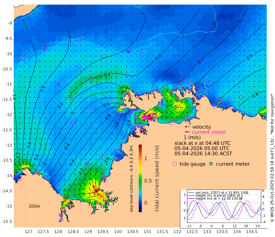 148cm/s -101T +4cm/s rms + 6cm/s 51T. Darwin_C1 52m 122cm/s -90T +4cm/s rms + 7cm/s -161T. Darwin_CW1 22m 93cm/s -106T +4cm/s rms + 8cm/s 61T. Darwin_CW2 34m 68cm/s -134T +3cm/s rms + 9cm/s 98T. Darwin_CW3 22m 151cm/s -91T +5cm/s rms + 7cm/s 88T. Darwin_C3 56m 79cm/s -115T +2cm/s rms + 9cm/s -126T. Darwin_CTbW 22m 7cm/s 145T +9cm/s rms + 2cm/s -110T. NWSLYN 196m 20cm/s -106T +1cm/s rms + 1cm/s -47T. DARBGF 30m 9cm/s 62T +7cm/s rms + 2cm/s -137T. ITFTIS 464m 11cm/s 79T +9cm/s rms + 1cm/s 74T. ITFMHB 146m 15cm/s 35T +4cm/s rms + 1cm/s -134T. ITFJBG 61m 18cm/s 82T +6cm/s rms + 4cm/s 121T. ITFFTB 108m 16cm/s -100T +4cm/s rms + 3cm/s 80T. NRSDAR 19m 148cm Carronade Island 148cm Guy Point 151cm Napier Broome Bay 42cm Lesueur Island -92cm Reveley Island -49cm Rocky Island -163cm Cape Domett -134cm Lacrosse Island -173cm Adolphus Island -107cm Pender Point -76cm Wyndham 45cm The Boxers 25cm Unnamed Shoal 95cm Loxton Shoal -202cm Pelican Island 58cm Calder Shoal 69cm Evans Shoal -232cm Quoin Island -181cm Port Keats -187cm Jones Point -174cm Catfish Island -125cm Cape Scott Offshore -92cm Cape Ford -150cm Anson Bay 50cm Goodrich Bank -123cm Peron Island North -109cm Point Jenny -108cm Native Point -128cm Fish Reef -140cm Tapa Bay -26cm Point Fawcett (Offshore) -147cm Burge Point -143cm Munkunuwa -75cm Beagle A -165cm Parsons Bank -136cm Fenton Patches 56cm Lynedoch Bank -161cm Hancox Shoal Area -160cm Nightcliff -183cm Darwin -154cm Charles Point Patches -124cm Glyde Point -96cm Chambers Bay -93cm Point Stuart -102cm Cape Hotham -78cm Christine Reef -101cm West Alligator Head -84cm East Field Island -80cm Two Hills Bay -1cm Newby Shoal -72cm Camp Point -143cm Medina Inlet South -19cm South Barlow Point 13cm St. Asaph Bay 47cm Cape Van Dieman 38cm Snake Bay 46cm Cache Point 117cm Echo Shoal 22cm Point Jahleel (Off) -28cm Cape Don 6cm Port Essington 7cm Smith Point - West 10cm NW Peacock Island 29cm North Of Jones Shoal 7cm Peacock Island -17cm Point David 2cm D'urville Point 16cm Money Shoal -22cm Copeland Island -24cm Cape Cockburn -13cm One Tree Point -22cm Hogmany Shoal -9cm New Year Island - West -17cm Grant Island -42cm Aurari Bay -59cm Cuthbert Point -37cm North Goulburn Island -65cm Paxie Shoal -84cm Entrance Island -108cm Yabooma Island