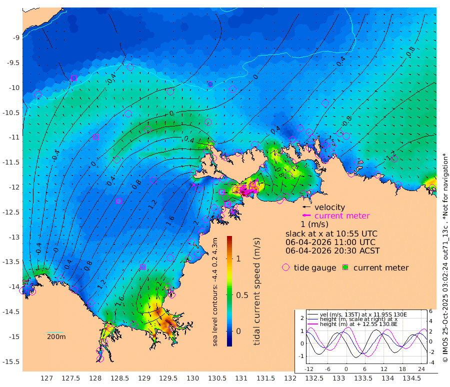 167cm/s 78T +4cm/s rms + 6cm/s 51T. Darwin_C1 52m 128cm/s 90T +4cm/s rms + 7cm/s -161T. Darwin_CW1 22m 92cm/s 74T +4cm/s rms + 8cm/s 61T. Darwin_CW2 34m 96cm/s 44T +3cm/s rms + 9cm/s 98T. Darwin_CW3 22m 153cm/s 89T +5cm/s rms + 7cm/s 88T. Darwin_C3 56m 84cm/s 65T +2cm/s rms + 9cm/s -126T. Darwin_CTbW 22m 6cm/s 7T +9cm/s rms + 2cm/s -110T. NWSLYN 196m 23cm/s 76T +1cm/s rms + 1cm/s -47T. DARBGF 30m 7cm/s -61T +7cm/s rms + 2cm/s -137T. ITFTIS 464m 11cm/s -39T +9cm/s rms + 1cm/s 74T. ITFMHB 146m 13cm/s -134T +4cm/s rms + 1cm/s -134T. ITFJBG 61m 14cm/s -77T +6cm/s rms + 4cm/s 121T. ITFFTB 108m 20cm/s 90T +4cm/s rms + 3cm/s 80T. NRSDAR 19m -106cm Carronade Island -109cm Guy Point -103cm Napier Broome Bay 7cm Lesueur Island 103cm Reveley Island 39cm Rocky Island 175cm Cape Domett 150cm Lacrosse Island 183cm Adolphus Island 105cm Pender Point 81cm Wyndham 4cm The Boxers 39cm Unnamed Shoal -48cm Loxton Shoal 203cm Pelican Island -8cm Calder Shoal -30cm Evans Shoal 229cm Quoin Island 208cm Port Keats 199cm Jones Point 147cm Catfish Island 152cm Cape Scott Offshore 118cm Cape Ford 182cm Anson Bay -5cm Goodrich Bank 158cm Peron Island North 141cm Point Jenny 140cm Native Point 158cm Fish Reef 169cm Tapa Bay 67cm Point Fawcett (Offshore) 184cm Burge Point 164cm Munkunuwa 114cm Beagle A 197cm Parsons Bank 171cm Fenton Patches -9cm Lynedoch Bank 189cm Hancox Shoal Area 197cm Nightcliff 219cm Darwin 193cm Charles Point Patches 150cm Glyde Point 105cm Chambers Bay 100cm Point Stuart 126cm Cape Hotham 92cm Christine Reef 103cm West Alligator Head 84cm East Field Island 100cm Two Hills Bay 67cm Newby Shoal 98cm Camp Point 176cm Medina Inlet South 67cm South Barlow Point 30cm St. Asaph Bay -1cm Cape Van Dieman 16cm Snake Bay 1cm Cache Point -78cm Echo Shoal 21cm Point Jahleel (Off) 69cm Cape Don 40cm Port Essington 38cm Smith Point - West 39cm NW Peacock Island 23cm North Of Jones Shoal 11cm Peacock Island 70cm Point David 47cm D'urville Point 39cm Money Shoal 73cm Copeland Island 95cm Cape Cockburn 68cm One Tree Point 77cm Hogmany Shoal 68cm New Year Island - West 73cm Grant Island 95cm Aurari Bay 107cm Cuthbert Point 92cm North Goulburn Island 116cm Paxie Shoal 124cm Entrance Island 144cm Yabooma Island