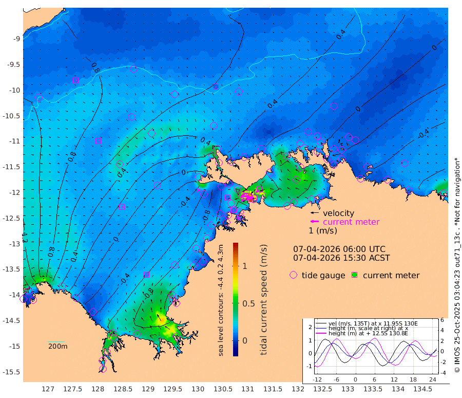 116cm/s -101T +4cm/s rms + 6cm/s 51T. Darwin_C1 52m 85cm/s -90T +4cm/s rms + 7cm/s -161T. Darwin_CW1 22m 66cm/s -107T +4cm/s rms + 8cm/s 61T. Darwin_CW2 34m 52cm/s -133T +3cm/s rms + 9cm/s 98T. Darwin_CW3 22m 102cm/s -91T +5cm/s rms + 7cm/s 88T. Darwin_C3 56m 66cm/s -115T +2cm/s rms + 9cm/s -126T. Darwin_CTbW 22m 7cm/s 135T +9cm/s rms + 2cm/s -110T. NWSLYN 196m 10cm/s -111T +1cm/s rms + 1cm/s -47T. DARBGF 30m 10cm/s 48T +7cm/s rms + 2cm/s -137T. ITFTIS 464m 11cm/s 68T +9cm/s rms + 1cm/s 74T. ITFMHB 146m 11cm/s 43T +4cm/s rms + 1cm/s -134T. ITFJBG 61m 17cm/s 80T +6cm/s rms + 4cm/s 121T. ITFFTB 108m 10cm/s -123T +4cm/s rms + 3cm/s 80T. NRSDAR 19m 130cm Carronade Island 129cm Guy Point 134cm Napier Broome Bay 62cm Lesueur Island -43cm Reveley Island -26cm Rocky Island -92cm Cape Domett -70cm Lacrosse Island -113cm Adolphus Island -58cm Pender Point -41cm Wyndham 60cm The Boxers 50cm Unnamed Shoal 89cm Loxton Shoal -123cm Pelican Island 68cm Calder Shoal 68cm Evans Shoal -159cm Quoin Island -104cm Port Keats -102cm Jones Point -119cm Catfish Island -64cm Cape Scott Offshore 5cm Cape Ford -82cm Anson Bay 56cm Goodrich Bank -61cm Peron Island North -50cm Point Jenny -48cm Native Point -60cm Fish Reef -70cm Tapa Bay 11cm Point Fawcett (Offshore) -74cm Burge Point -75cm Munkunuwa -23cm Beagle A -96cm Parsons Bank -68cm Fenton Patches 57cm Lynedoch Bank -94cm Hancox Shoal Area -94cm Nightcliff -103cm Darwin -79cm Charles Point Patches -68cm Glyde Point -58cm Chambers Bay -56cm Point Stuart -57cm Cape Hotham -50cm Christine Reef -63cm West Alligator Head -52cm East Field Island -46cm Two Hills Bay 28cm Newby Shoal -37cm Camp Point -73cm Medina Inlet South 9cm South Barlow Point 33cm St. Asaph Bay 54cm Cape Van Dieman 47cm Snake Bay 54cm Cache Point 103cm Echo Shoal 33cm Point Jahleel (Off) -7cm Cape Don 19cm Port Essington 16cm Smith Point - West 18cm NW Peacock Island 32cm North Of Jones Shoal 9cm Peacock Island -4cm Point David 11cm D'urville Point 22cm Money Shoal -10cm Copeland Island -10cm Cape Cockburn -2cm One Tree Point -4cm Hogmany Shoal 3cm New Year Island - West -4cm Grant Island -28cm Aurari Bay -42cm Cuthbert Point -22cm North Goulburn Island -44cm Paxie Shoal -62cm Entrance Island -86cm Yabooma Island