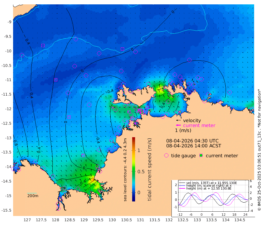 56cm/s -103T +4cm/s rms + 6cm/s 51T. Darwin_C1 52m 17cm/s -89T +4cm/s rms + 7cm/s -161T. Darwin_CW1 22m 48cm/s -111T +4cm/s rms + 8cm/s 61T. Darwin_CW2 34m 15cm/s -101T +3cm/s rms + 9cm/s 98T. Darwin_CW3 22m 42cm/s -94T +5cm/s rms + 7cm/s 88T. Darwin_C3 56m 33cm/s -118T +2cm/s rms + 9cm/s -126T. Darwin_CTbW 22m 2cm/s 115T +9cm/s rms + 2cm/s -110T. NWSLYN 196m 30cm/s -91T +1cm/s rms + 1cm/s -47T. DARBGF 30m 2cm/s 11T +7cm/s rms + 2cm/s -137T. ITFTIS 464m 5cm/s 18T +9cm/s rms + 1cm/s 74T. ITFMHB 146m 23cm/s -18T +4cm/s rms + 1cm/s -134T. ITFJBG 61m 15cm/s -29T +6cm/s rms + 4cm/s 121T. ITFFTB 108m 27cm/s -64T +4cm/s rms + 3cm/s 80T. NRSDAR 19m 138cm Carronade Island 139cm Guy Point 145cm Napier Broome Bay 95cm Lesueur Island 35cm Reveley Island 34cm Rocky Island 42cm Cape Domett 50cm Lacrosse Island 59cm Adolphus Island 132cm Pender Point 167cm Wyndham 29cm The Boxers 7cm Unnamed Shoal 38cm Loxton Shoal 16cm Pelican Island 19cm Calder Shoal 21cm Evans Shoal 82cm Quoin Island -19cm Port Keats -15cm Jones Point 195cm Catfish Island -26cm Cape Scott Offshore -49cm Cape Ford -46cm Anson Bay 2cm Goodrich Bank -38cm Peron Island North -43cm Point Jenny -45cm Native Point -42cm Fish Reef -51cm Tapa Bay -18cm Point Fawcett (Offshore) -54cm Burge Point -70cm Munkunuwa -33cm Beagle A -68cm Parsons Bank -48cm Fenton Patches 10cm Lynedoch Bank -53cm Hancox Shoal Area -58cm Nightcliff -58cm Darwin -52cm Charles Point Patches -1cm Glyde Point 55cm Chambers Bay 71cm Point Stuart 19cm Cape Hotham 47cm Christine Reef 83cm West Alligator Head 111cm East Field Island 42cm Two Hills Bay 2cm Newby Shoal 36cm Camp Point -55cm Medina Inlet South -35cm South Barlow Point -15cm St. Asaph Bay -3cm Cape Van Dieman -9cm Snake Bay 7cm Cache Point 59cm Echo Shoal 3cm Point Jahleel (Off) 2cm Cape Don -7cm Port Essington -10cm Smith Point - West -9cm NW Peacock Island -1cm North Of Jones Shoal -2cm Peacock Island -17cm Point David -15cm D'urville Point -6cm Money Shoal -18cm Copeland Island -19cm Cape Cockburn -13cm One Tree Point -6cm Hogmany Shoal -8cm New Year Island - West -14cm Grant Island -14cm Aurari Bay -10cm Cuthbert Point -14cm North Goulburn Island -3cm Paxie Shoal -10cm Entrance Island -8cm Yabooma Island