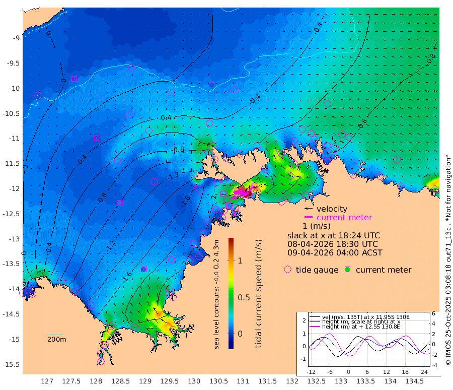 192cm/s -102T +4cm/s rms + 6cm/s 51T. Darwin_C1 52m 134cm/s -90T +4cm/s rms + 7cm/s -161T. Darwin_CW1 22m 89cm/s -106T +4cm/s rms + 8cm/s 61T. Darwin_CW2 34m 89cm/s -132T +3cm/s rms + 9cm/s 98T. Darwin_CW3 22m 137cm/s -90T +5cm/s rms + 7cm/s 88T. Darwin_C3 56m 114cm/s -115T +2cm/s rms + 9cm/s -126T. Darwin_CTbW 22m 5cm/s -106T +9cm/s rms + 2cm/s -110T. NWSLYN 196m 22cm/s -104T +1cm/s rms + 1cm/s -47T. DARBGF 30m 5cm/s 139T +7cm/s rms + 2cm/s -137T. ITFTIS 464m 4cm/s 118T +9cm/s rms + 1cm/s 74T. ITFMHB 146m 7cm/s 63T +4cm/s rms + 1cm/s -134T. ITFJBG 61m 9cm/s 108T +6cm/s rms + 4cm/s 121T. ITFFTB 108m 12cm/s -105T +4cm/s rms + 3cm/s 80T. NRSDAR 19m -6cm Carronade Island -11cm Guy Point -13cm Napier Broome Bay -93cm Lesueur Island -151cm Reveley Island -79cm Rocky Island -211cm Cape Domett -192cm Lacrosse Island -217cm Adolphus Island -171cm Pender Point -160cm Wyndham -63cm The Boxers -78cm Unnamed Shoal -19cm Loxton Shoal -224cm Pelican Island -48cm Calder Shoal -22cm Evans Shoal -257cm Quoin Island -219cm Port Keats -198cm Jones Point -198cm Catfish Island -171cm Cape Scott Offshore -140cm Cape Ford -188cm Anson Bay -36cm Goodrich Bank -164cm Peron Island North -157cm Point Jenny -158cm Native Point -159cm Fish Reef -182cm Tapa Bay -97cm Point Fawcett (Offshore) -181cm Burge Point -161cm Munkunuwa -132cm Beagle A -186cm Parsons Bank -174cm Fenton Patches -30cm Lynedoch Bank -190cm Hancox Shoal Area -197cm Nightcliff -210cm Darwin -194cm Charles Point Patches -156cm Glyde Point -123cm Chambers Bay -116cm Point Stuart -132cm Cape Hotham -119cm Christine Reef -122cm West Alligator Head -109cm East Field Island -115cm Two Hills Bay -112cm Newby Shoal -115cm Camp Point -176cm Medina Inlet South -87cm South Barlow Point -65cm St. Asaph Bay -37cm Cape Van Dieman -49cm Snake Bay -41cm Cache Point 5cm Echo Shoal -54cm Point Jahleel (Off) -85cm Cape Don -58cm Port Essington -60cm Smith Point - West -58cm NW Peacock Island -47cm North Of Jones Shoal -17cm Peacock Island -73cm Point David -62cm D'urville Point -52cm Money Shoal -71cm Copeland Island -90cm Cape Cockburn -71cm One Tree Point -92cm Hogmany Shoal -75cm New Year Island - West -79cm Grant Island -83cm Aurari Bay -94cm Cuthbert Point -85cm North Goulburn Island -102cm Paxie Shoal -99cm Entrance Island -99cm Yabooma Island