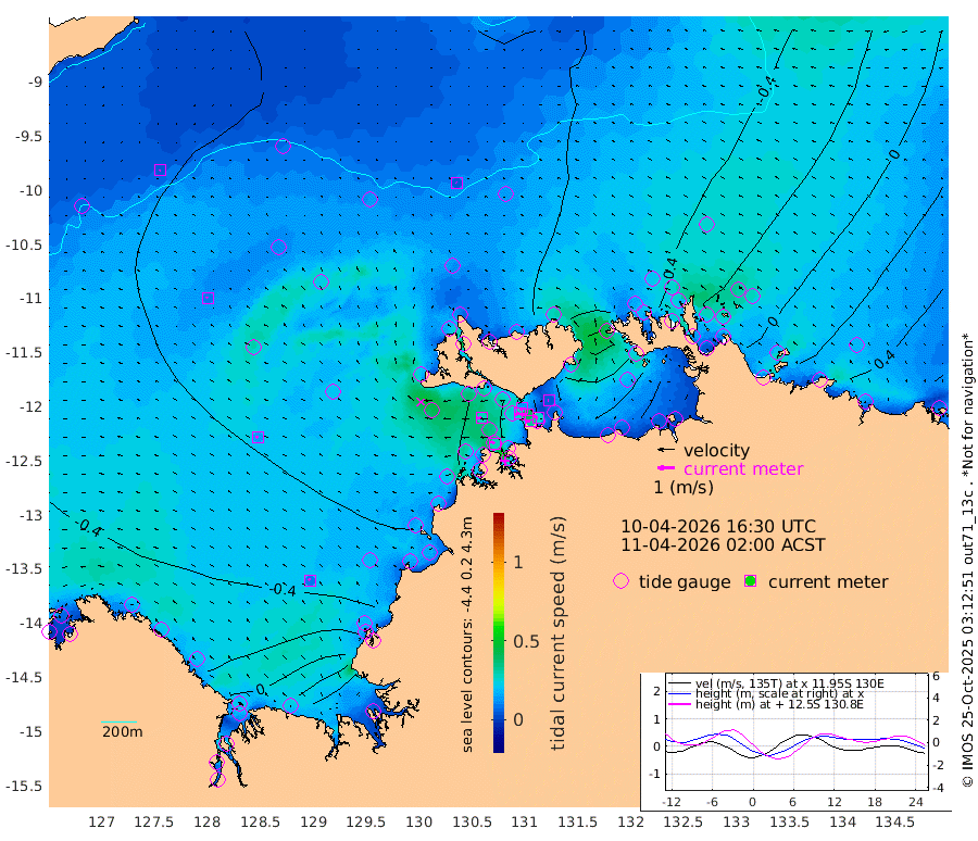 32cm/s -103T +4cm/s rms + 6cm/s 51T. Darwin_C1 52m 26cm/s -83T +4cm/s rms + 7cm/s -161T. Darwin_CW1 22m 28cm/s -105T +4cm/s rms + 8cm/s 61T. Darwin_CW2 34m 5cm/s -82T +3cm/s rms + 9cm/s 98T. Darwin_CW3 22m 41cm/s -92T +5cm/s rms + 7cm/s 88T. Darwin_C3 56m 15cm/s -116T +2cm/s rms + 9cm/s -126T. Darwin_CTbW 22m 5cm/s -48T +9cm/s rms + 2cm/s -110T. NWSLYN 196m 27cm/s -92T +1cm/s rms + 1cm/s -47T. DARBGF 30m 5cm/s -124T +7cm/s rms + 2cm/s -137T. ITFTIS 464m 8cm/s -34T +9cm/s rms + 1cm/s 74T. ITFMHB 146m 10cm/s -24T +4cm/s rms + 1cm/s -134T. ITFJBG 61m 15cm/s -58T +6cm/s rms + 4cm/s 121T. ITFFTB 108m 28cm/s -59T +4cm/s rms + 3cm/s 80T. NRSDAR 19m -21cm Carronade Island -24cm Guy Point -25cm Napier Broome Bay -31cm Lesueur Island -34cm Reveley Island -58cm Rocky Island -27cm Cape Domett -20cm Lacrosse Island -6cm Adolphus Island 20cm Pender Point 44cm Wyndham -71cm The Boxers -54cm Unnamed Shoal -73cm Loxton Shoal -20cm Pelican Island -77cm Calder Shoal -66cm Evans Shoal 31cm Quoin Island -57cm Port Keats -41cm Jones Point 133cm Catfish Island -57cm Cape Scott Offshore -170cm Cape Ford -58cm Anson Bay -68cm Goodrich Bank -68cm Peron Island North -80cm Point Jenny -83cm Native Point -76cm Fish Reef -78cm Tapa Bay -78cm Point Fawcett (Offshore) -84cm Burge Point -87cm Munkunuwa -84cm Beagle A -72cm Parsons Bank -78cm Fenton Patches -57cm Lynedoch Bank -58cm Hancox Shoal Area -61cm Nightcliff -72cm Darwin -82cm Charles Point Patches -24cm Glyde Point 34cm Chambers Bay 44cm Point Stuart 1cm Cape Hotham 15cm Christine Reef 53cm West Alligator Head 71cm East Field Island 16cm Two Hills Bay -92cm Newby Shoal 6cm Camp Point -82cm Medina Inlet South -84cm South Barlow Point -80cm St. Asaph Bay -69cm Cape Van Dieman -67cm Snake Bay -62cm Cache Point -53cm Echo Shoal -52cm Point Jahleel (Off) -32cm Cape Don -45cm Port Essington -45cm Smith Point - West -40cm NW Peacock Island -42cm North Of Jones Shoal -13cm Peacock Island -13cm Point David -39cm D'urville Point -31cm Money Shoal -7cm Copeland Island -13cm Cape Cockburn -17cm One Tree Point -13cm Hogmany Shoal -14cm New Year Island - West -16cm Grant Island 15cm Aurari Bay 18cm Cuthbert Point 4cm North Goulburn Island 32cm Paxie Shoal 44cm Entrance Island 80cm Yabooma Island