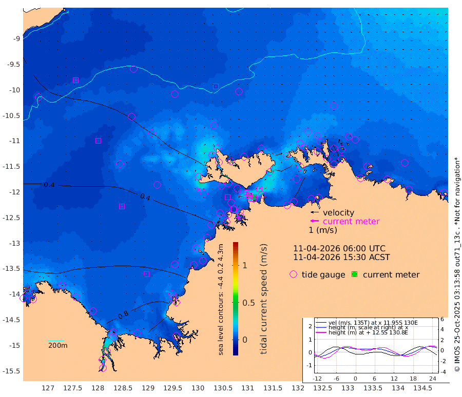 23cm/s 77T +4cm/s rms + 6cm/s 51T. Darwin_C1 52m 42cm/s 92T +4cm/s rms + 7cm/s -161T. Darwin_CW1 22m 18cm/s 76T +4cm/s rms + 8cm/s 61T. Darwin_CW2 34m 23cm/s 36T +3cm/s rms + 9cm/s 98T. Darwin_CW3 22m 36cm/s 90T +5cm/s rms + 7cm/s 88T. Darwin_C3 56m 16cm/s 70T +2cm/s rms + 9cm/s -126T. Darwin_CTbW 22m 2cm/s 82T +9cm/s rms + 2cm/s -110T. NWSLYN 196m 3cm/s 44T +1cm/s rms + 1cm/s -47T. DARBGF 30m 4cm/s 12T +7cm/s rms + 2cm/s -137T. ITFTIS 464m 3cm/s 32T +9cm/s rms + 1cm/s 74T. ITFMHB 146m 4cm/s -26T +4cm/s rms + 1cm/s -134T. ITFJBG 61m 5cm/s -7T +6cm/s rms + 4cm/s 121T. ITFFTB 108m 1cm/s 80T +4cm/s rms + 3cm/s 80T. NRSDAR 19m 73cm Carronade Island 72cm Guy Point 83cm Napier Broome Bay 83cm Lesueur Island 70cm Reveley Island 64cm Rocky Island 106cm Cape Domett 102cm Lacrosse Island 112cm Adolphus Island 126cm Pender Point 138cm Wyndham 47cm The Boxers 32cm Unnamed Shoal 25cm Loxton Shoal 97cm Pelican Island 33cm Calder Shoal 16cm Evans Shoal 134cm Quoin Island 88cm Port Keats 81cm Jones Point 193cm Catfish Island 65cm Cape Scott Offshore 50cm Cape Ford 64cm Anson Bay 13cm Goodrich Bank 51cm Peron Island North 58cm Point Jenny 56cm Native Point 61cm Fish Reef 58cm Tapa Bay 40cm Point Fawcett (Offshore) 61cm Burge Point 39cm Munkunuwa 58cm Beagle A 42cm Parsons Bank 66cm Fenton Patches 13cm Lynedoch Bank 51cm Hancox Shoal Area 61cm Nightcliff 62cm Darwin 64cm Charles Point Patches 64cm Glyde Point 77cm Chambers Bay 73cm Point Stuart 57cm Cape Hotham 68cm Christine Reef 80cm West Alligator Head 91cm East Field Island 57cm Two Hills Bay 60cm Newby Shoal 63cm Camp Point 55cm Medina Inlet South 22cm South Barlow Point 24cm St. Asaph Bay 12cm Cape Van Dieman 8cm Snake Bay 17cm Cache Point 30cm Echo Shoal 17cm Point Jahleel (Off) 30cm Cape Don 12cm Port Essington 9cm Smith Point - West 6cm NW Peacock Island 10cm North Of Jones Shoal 3cm Peacock Island -4cm Point David 4cm D'urville Point 8cm Money Shoal -4cm Copeland Island -1cm Cape Cockburn 3cm One Tree Point -2cm Hogmany Shoal 6cm New Year Island - West 0cm Grant Island 4cm Aurari Bay 8cm Cuthbert Point 3cm North Goulburn Island 14cm Paxie Shoal 7cm Entrance Island 6cm Yabooma Island