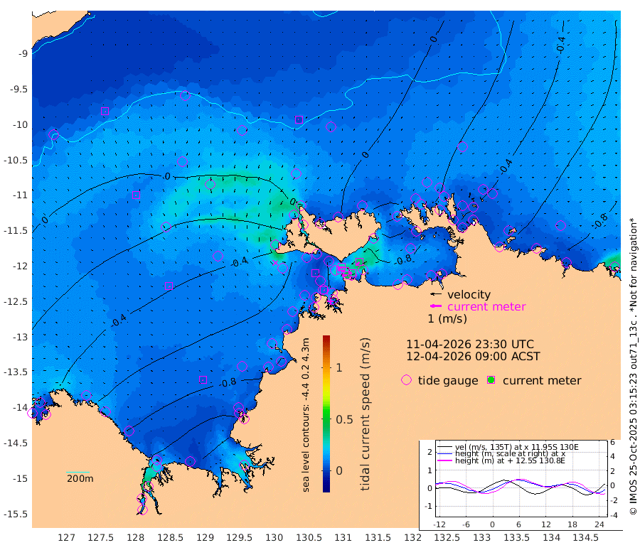 43cm/s -104T +4cm/s rms + 6cm/s 51T. Darwin_C1 52m 34cm/s -91T +4cm/s rms + 7cm/s -161T. Darwin_CW1 22m 17cm/s -105T +4cm/s rms + 8cm/s 61T. Darwin_CW2 34m 36cm/s -140T +3cm/s rms + 9cm/s 98T. Darwin_CW3 22m 28cm/s -88T +5cm/s rms + 7cm/s 88T. Darwin_C3 56m 29cm/s -115T +2cm/s rms + 9cm/s -126T. Darwin_CTbW 22m 3cm/s -86T +9cm/s rms + 2cm/s -110T. NWSLYN 196m 3cm/s 119T +1cm/s rms + 1cm/s -47T. DARBGF 30m 6cm/s 163T +7cm/s rms + 2cm/s -137T. ITFTIS 464m 10cm/s 177T +9cm/s rms + 1cm/s 74T. ITFMHB 146m 6cm/s 152T +4cm/s rms + 1cm/s -134T. ITFJBG 61m 9cm/s 145T +6cm/s rms + 4cm/s 121T. ITFFTB 108m 6cm/s 137T +4cm/s rms + 3cm/s 80T. NRSDAR 19m -26cm Carronade Island -25cm Guy Point -31cm Napier Broome Bay -56cm Lesueur Island -59cm Reveley Island -7cm Rocky Island -95cm Cape Domett -91cm Lacrosse Island -102cm Adolphus Island -107cm Pender Point -117cm Wyndham -18cm The Boxers -30cm Unnamed Shoal 15cm Loxton Shoal -105cm Pelican Island 1cm Calder Shoal 14cm Evans Shoal -130cm Quoin Island -83cm Port Keats -88cm Jones Point -190cm Catfish Island -62cm Cape Scott Offshore -16cm Cape Ford -70cm Anson Bay 5cm Goodrich Bank -47cm Peron Island North -51cm Point Jenny -50cm Native Point -50cm Fish Reef -61cm Tapa Bay -21cm Point Fawcett (Offshore) -55cm Burge Point -33cm Munkunuwa -39cm Beagle A -51cm Parsons Bank -57cm Fenton Patches 5cm Lynedoch Bank -65cm Hancox Shoal Area -67cm Nightcliff -69cm Darwin -65cm Charles Point Patches -73cm Glyde Point -92cm Chambers Bay -86cm Point Stuart -69cm Cape Hotham -74cm Christine Reef -92cm West Alligator Head -101cm East Field Island -67cm Two Hills Bay -25cm Newby Shoal -74cm Camp Point -49cm Medina Inlet South -6cm South Barlow Point -2cm St. Asaph Bay 5cm Cape Van Dieman 3cm Snake Bay -1cm Cache Point 13cm Echo Shoal -8cm Point Jahleel (Off) -33cm Cape Don -14cm Port Essington -11cm Smith Point - West -13cm NW Peacock Island -7cm North Of Jones Shoal -4cm Peacock Island -32cm Point David -14cm D'urville Point -20cm Money Shoal -33cm Copeland Island -37cm Cape Cockburn -28cm One Tree Point -44cm Hogmany Shoal -35cm New Year Island - West -33cm Grant Island -51cm Aurari Bay -59cm Cuthbert Point -46cm North Goulburn Island -74cm Paxie Shoal -76cm Entrance Island -92cm Yabooma Island