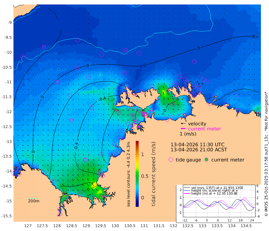73cm/s -102T +4cm/s rms + 6cm/s 51T. Darwin_C1 52m 32cm/s -88T +4cm/s rms + 7cm/s -161T. Darwin_CW1 22m 42cm/s -110T +4cm/s rms + 8cm/s 61T. Darwin_CW2 34m 27cm/s -128T +3cm/s rms + 9cm/s 98T. Darwin_CW3 22m 34cm/s -92T +5cm/s rms + 7cm/s 88T. Darwin_C3 56m 51cm/s -115T +2cm/s rms + 9cm/s -126T. Darwin_CTbW 22m 3cm/s 134T +9cm/s rms + 2cm/s -110T. NWSLYN 196m 35cm/s -89T +1cm/s rms + 1cm/s -47T. DARBGF 30m 3cm/s -10T +7cm/s rms + 2cm/s -137T. ITFTIS 464m 11cm/s -3T +9cm/s rms + 1cm/s 74T. ITFMHB 146m 25cm/s -22T +4cm/s rms + 1cm/s -134T. ITFJBG 61m 21cm/s -37T +6cm/s rms + 4cm/s 121T. ITFFTB 108m 33cm/s -60T +4cm/s rms + 3cm/s 80T. NRSDAR 19m 37cm Carronade Island 41cm Guy Point 45cm Napier Broome Bay 0cm Lesueur Island -29cm Reveley Island -1cm Rocky Island -28cm Cape Domett -39cm Lacrosse Island -9cm Adolphus Island 49cm Pender Point 60cm Wyndham -7cm The Boxers -25cm Unnamed Shoal 25cm Loxton Shoal -45cm Pelican Island -9cm Calder Shoal 13cm Evans Shoal 1cm Quoin Island -69cm Port Keats -61cm Jones Point -7cm Catfish Island -72cm Cape Scott Offshore -50cm Cape Ford -85cm Anson Bay 1cm Goodrich Bank -70cm Peron Island North -83cm Point Jenny -82cm Native Point -82cm Fish Reef -86cm Tapa Bay -47cm Point Fawcett (Offshore) -87cm Burge Point -82cm Munkunuwa -81cm Beagle A -80cm Parsons Bank -94cm Fenton Patches 10cm Lynedoch Bank -79cm Hancox Shoal Area -102cm Nightcliff -79cm Darwin -71cm Charles Point Patches -47cm Glyde Point -23cm Chambers Bay -9cm Point Stuart -36cm Cape Hotham -22cm Christine Reef -9cm West Alligator Head 5cm East Field Island -18cm Two Hills Bay -47cm Newby Shoal -17cm Camp Point -78cm Medina Inlet South -38cm South Barlow Point -28cm St. Asaph Bay -4cm Cape Van Dieman -5cm Snake Bay -4cm Cache Point 26cm Echo Shoal -9cm Point Jahleel (Off) -17cm Cape Don -3cm Port Essington -11cm Smith Point - West -6cm NW Peacock Island -3cm North Of Jones Shoal -2cm Peacock Island -7cm Point David -10cm D'urville Point 2cm Money Shoal -8cm Copeland Island -12cm Cape Cockburn -5cm One Tree Point 1cm Hogmany Shoal -8cm New Year Island - West -6cm Grant Island -18cm Aurari Bay -8cm Cuthbert Point -11cm North Goulburn Island -5cm Paxie Shoal -14cm Entrance Island -15cm Yabooma Island