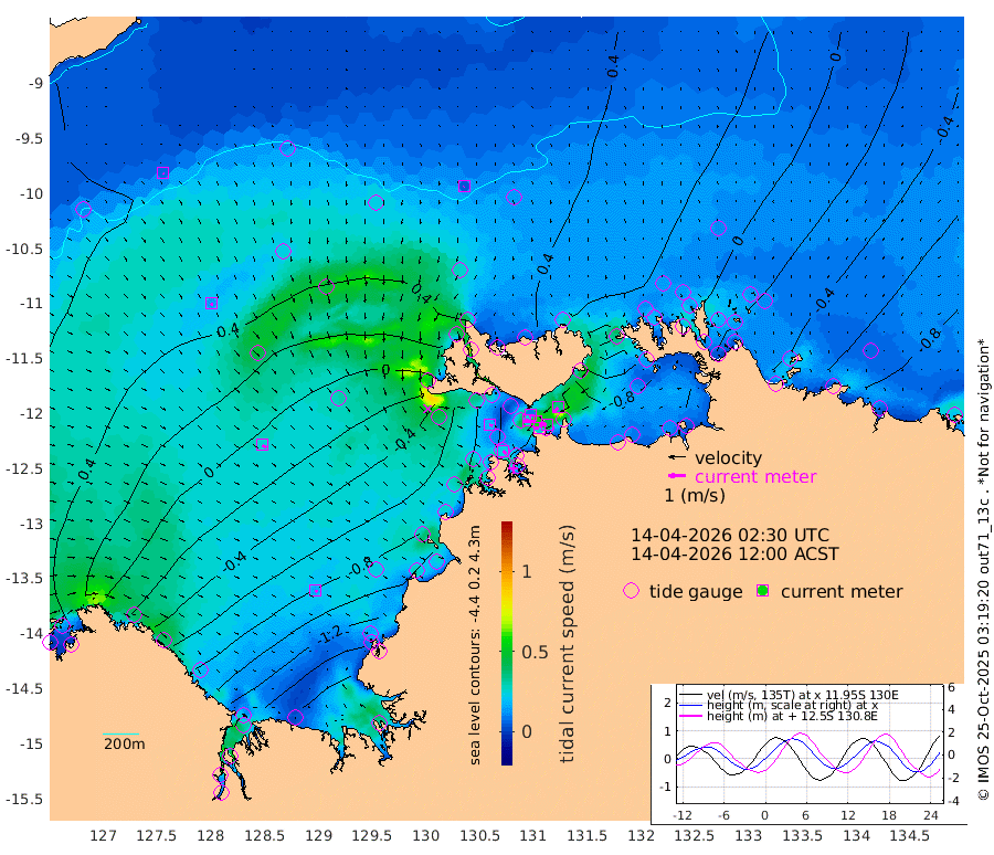 27cm/s -100T +4cm/s rms + 6cm/s 51T. Darwin_C1 52m 42cm/s -95T +4cm/s rms + 7cm/s -161T. Darwin_CW1 22m 27cm/s -105T +4cm/s rms + 8cm/s 61T. Darwin_CW2 34m 35cm/s -143T +3cm/s rms + 9cm/s 98T. Darwin_CW3 22m 57cm/s -91T +5cm/s rms + 7cm/s 88T. Darwin_C3 56m 9cm/s -116T +2cm/s rms + 9cm/s -126T. Darwin_CTbW 22m 4cm/s -169T +9cm/s rms + 2cm/s -110T. NWSLYN 196m 19cm/s 105T +1cm/s rms + 1cm/s -47T. DARBGF 30m 7cm/s 123T +7cm/s rms + 2cm/s -137T. ITFTIS 464m 15cm/s 156T +9cm/s rms + 1cm/s 74T. ITFMHB 146m 16cm/s 128T +4cm/s rms + 1cm/s -134T. ITFJBG 61m 25cm/s 127T +6cm/s rms + 4cm/s 121T. ITFFTB 108m 23cm/s 133T +4cm/s rms + 3cm/s 80T. NRSDAR 19m 37cm Carronade Island 33cm Guy Point 38cm Napier Broome Bay -24cm Lesueur Island -80cm Reveley Island -4cm Rocky Island -146cm Cape Domett -128cm Lacrosse Island -172cm Adolphus Island -170cm Pender Point -172cm Wyndham 27cm The Boxers 22cm Unnamed Shoal 59cm Loxton Shoal -163cm Pelican Island 44cm Calder Shoal 53cm Evans Shoal -230cm Quoin Island -122cm Port Keats -132cm Jones Point -212cm Catfish Island -69cm Cape Scott Offshore -41cm Cape Ford -81cm Anson Bay 43cm Goodrich Bank -53cm Peron Island North -47cm Point Jenny -45cm Native Point -55cm Fish Reef -69cm Tapa Bay 7cm Point Fawcett (Offshore) -73cm Burge Point -49cm Munkunuwa -25cm Beagle A -75cm Parsons Bank -68cm Fenton Patches 40cm Lynedoch Bank -89cm Hancox Shoal Area -84cm Nightcliff -101cm Darwin -86cm Charles Point Patches -92cm Glyde Point -112cm Chambers Bay -109cm Point Stuart -86cm Cape Hotham -89cm Christine Reef -119cm West Alligator Head -131cm East Field Island -77cm Two Hills Bay 13cm Newby Shoal -88cm Camp Point -63cm Medina Inlet South 19cm South Barlow Point 30cm St. Asaph Bay 43cm Cape Van Dieman 41cm Snake Bay 39cm Cache Point 60cm Echo Shoal 23cm Point Jahleel (Off) -17cm Cape Don 12cm Port Essington 18cm Smith Point - West 16cm NW Peacock Island 26cm North Of Jones Shoal 7cm Peacock Island -12cm Point David 14cm D'urville Point 6cm Money Shoal -16cm Copeland Island -13cm Cape Cockburn -8cm One Tree Point -23cm Hogmany Shoal -10cm New Year Island - West -12cm Grant Island -35cm Aurari Bay -51cm Cuthbert Point -31cm North Goulburn Island -74cm Paxie Shoal -85cm Entrance Island -120cm Yabooma Island