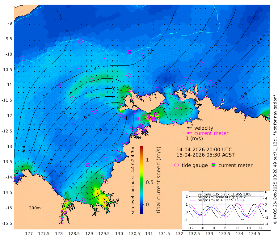 83cm/s 79T +4cm/s rms + 6cm/s 51T. Darwin_C1 52m 62cm/s 93T +4cm/s rms + 7cm/s -161T. Darwin_CW1 22m 64cm/s 72T +4cm/s rms + 8cm/s 61T. Darwin_CW2 34m 55cm/s 41T +3cm/s rms + 9cm/s 98T. Darwin_CW3 22m 95cm/s 89T +5cm/s rms + 7cm/s 88T. Darwin_C3 56m 40cm/s 66T +2cm/s rms + 9cm/s -126T. Darwin_CTbW 22m 5cm/s -8T +9cm/s rms + 2cm/s -110T. NWSLYN 196m 13cm/s 68T +1cm/s rms + 1cm/s -47T. DARBGF 30m 6cm/s -87T +7cm/s rms + 2cm/s -137T. ITFTIS 464m 7cm/s -67T +9cm/s rms + 1cm/s 74T. ITFMHB 146m 11cm/s -142T +4cm/s rms + 1cm/s -134T. ITFJBG 61m 10cm/s -81T +6cm/s rms + 4cm/s 121T. ITFFTB 108m 8cm/s 88T +4cm/s rms + 3cm/s 80T. NRSDAR 19m -68cm Carronade Island -66cm Guy Point -81cm Napier Broome Bay 25cm Lesueur Island 108cm Reveley Island 1cm Rocky Island 164cm Cape Domett 155cm Lacrosse Island 174cm Adolphus Island 117cm Pender Point 108cm Wyndham -17cm The Boxers 2cm Unnamed Shoal -69cm Loxton Shoal 196cm Pelican Island -28cm Calder Shoal -51cm Evans Shoal 216cm Quoin Island 175cm Port Keats 179cm Jones Point 178cm Catfish Island 126cm Cape Scott Offshore 111cm Cape Ford 147cm Anson Bay -31cm Goodrich Bank 116cm Peron Island North 116cm Point Jenny 114cm Native Point 123cm Fish Reef 141cm Tapa Bay 38cm Point Fawcett (Offshore) 146cm Burge Point 121cm Munkunuwa 94cm Beagle A 145cm Parsons Bank 146cm Fenton Patches -38cm Lynedoch Bank 156cm Hancox Shoal Area 165cm Nightcliff 167cm Darwin 148cm Charles Point Patches 128cm Glyde Point 119cm Chambers Bay 108cm Point Stuart 114cm Cape Hotham 101cm Christine Reef 117cm West Alligator Head 114cm East Field Island 89cm Two Hills Bay 30cm Newby Shoal 96cm Camp Point 129cm Medina Inlet South 22cm South Barlow Point 3cm St. Asaph Bay -28cm Cape Van Dieman -25cm Snake Bay -24cm Cache Point -72cm Echo Shoal -5cm Point Jahleel (Off) 34cm Cape Don 1cm Port Essington 2cm Smith Point - West 0cm NW Peacock Island -14cm North Of Jones Shoal -3cm Peacock Island 27cm Point David 6cm D'urville Point 0cm Money Shoal 32cm Copeland Island 34cm Cape Cockburn 20cm One Tree Point 38cm Hogmany Shoal 25cm New Year Island - West 27cm Grant Island 54cm Aurari Bay 62cm Cuthbert Point 45cm North Goulburn Island 76cm Paxie Shoal 97cm Entrance Island 128cm Yabooma Island