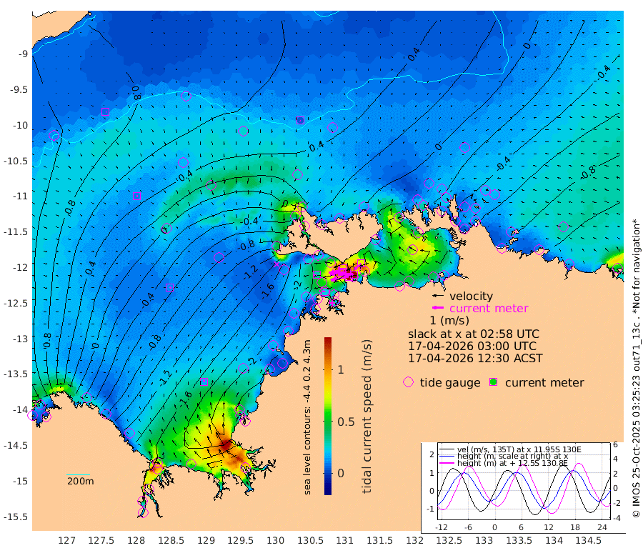 165cm/s -102T +4cm/s rms + 6cm/s 51T. Darwin_C1 52m 131cm/s -90T +4cm/s rms + 7cm/s -161T. Darwin_CW1 22m 107cm/s -107T +4cm/s rms + 8cm/s 61T. Darwin_CW2 34m 80cm/s -133T +3cm/s rms + 9cm/s 98T. Darwin_CW3 22m 161cm/s -91T +5cm/s rms + 7cm/s 88T. Darwin_C3 56m 90cm/s -115T +2cm/s rms + 9cm/s -126T. Darwin_CTbW 22m 5cm/s 171T +9cm/s rms + 2cm/s -110T. NWSLYN 196m 30cm/s -102T +1cm/s rms + 1cm/s -47T. DARBGF 30m 6cm/s 92T +7cm/s rms + 2cm/s -137T. ITFTIS 464m 8cm/s 86T +9cm/s rms + 1cm/s 74T. ITFMHB 146m 17cm/s 17T +4cm/s rms + 1cm/s -134T. ITFJBG 61m 12cm/s 72T +6cm/s rms + 4cm/s 121T. ITFFTB 108m 24cm/s -83T +4cm/s rms + 3cm/s 80T. NRSDAR 19m 124cm Carronade Island 120cm Guy Point 125cm Napier Broome Bay 12cm Lesueur Island -130cm Reveley Island -45cm Rocky Island -212cm Cape Domett -181cm Lacrosse Island -208cm Adolphus Island -135cm Pender Point -98cm Wyndham 21cm The Boxers 2cm Unnamed Shoal 88cm Loxton Shoal -246cm Pelican Island 33cm Calder Shoal 63cm Evans Shoal -250cm Quoin Island -244cm Port Keats -240cm Jones Point -137cm Catfish Island -174cm Cape Scott Offshore -185cm Cape Ford -206cm Anson Bay 38cm Goodrich Bank -167cm Peron Island North -176cm Point Jenny -174cm Native Point -182cm Fish Reef -206cm Tapa Bay -62cm Point Fawcett (Offshore) -223cm Burge Point -200cm Munkunuwa -136cm Beagle A -223cm Parsons Bank -207cm Fenton Patches 49cm Lynedoch Bank -220cm Hancox Shoal Area -232cm Nightcliff -243cm Darwin -213cm Charles Point Patches -165cm Glyde Point -124cm Chambers Bay -108cm Point Stuart -132cm Cape Hotham -113cm Christine Reef -115cm West Alligator Head -95cm East Field Island -96cm Two Hills Bay -54cm Newby Shoal -104cm Camp Point -199cm Medina Inlet South -50cm South Barlow Point -14cm St. Asaph Bay 32cm Cape Van Dieman 27cm Snake Bay 32cm Cache Point 116cm Echo Shoal 9cm Point Jahleel (Off) -48cm Cape Don -4cm Port Essington -3cm Smith Point - West 1cm NW Peacock Island 21cm North Of Jones Shoal 5cm Peacock Island -27cm Point David -7cm D'urville Point 4cm Money Shoal -31cm Copeland Island -37cm Cape Cockburn -22cm One Tree Point -32cm Hogmany Shoal -20cm New Year Island - West -28cm Grant Island -49cm Aurari Bay -69cm Cuthbert Point -50cm North Goulburn Island -86cm Paxie Shoal -104cm Entrance Island -129cm Yabooma Island