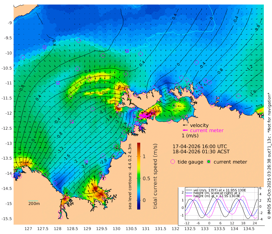 192cm/s -101T +4cm/s rms + 6cm/s 51T. Darwin_C1 52m 160cm/s -91T +4cm/s rms + 7cm/s -161T. Darwin_CW1 22m 96cm/s -106T +4cm/s rms + 8cm/s 61T. Darwin_CW2 34m 107cm/s -137T +3cm/s rms + 9cm/s 98T. Darwin_CW3 22m 168cm/s -90T +5cm/s rms + 7cm/s 88T. Darwin_C3 56m 103cm/s -116T +2cm/s rms + 9cm/s -126T. Darwin_CTbW 22m 13cm/s 173T +9cm/s rms + 2cm/s -110T. NWSLYN 196m 10cm/s 159T +1cm/s rms + 1cm/s -47T. DARBGF 30m 12cm/s 110T +7cm/s rms + 2cm/s -137T. ITFTIS 464m 18cm/s 141T +9cm/s rms + 1cm/s 74T. ITFMHB 146m 20cm/s 100T +4cm/s rms + 1cm/s -134T. ITFJBG 61m 35cm/s 119T +6cm/s rms + 4cm/s 121T. ITFFTB 108m 20cm/s 156T +4cm/s rms + 3cm/s 80T. NRSDAR 19m 45cm Carronade Island 44cm Guy Point 48cm Napier Broome Bay -101cm Lesueur Island -225cm Reveley Island -100cm Rocky Island -344cm Cape Domett -312cm Lacrosse Island -378cm Adolphus Island -316cm Pender Point -309cm Wyndham -10cm The Boxers -36cm Unnamed Shoal 70cm Loxton Shoal -363cm Pelican Island 17cm Calder Shoal 56cm Evans Shoal -454cm Quoin Island -334cm Port Keats -321cm Jones Point -344cm Catfish Island -214cm Cape Scott Offshore -198cm Cape Ford -239cm Anson Bay 30cm Goodrich Bank -204cm Peron Island North -194cm Point Jenny -193cm Native Point -211cm Fish Reef -234cm Tapa Bay -66cm Point Fawcett (Offshore) -262cm Burge Point -205cm Munkunuwa -164cm Beagle A -258cm Parsons Bank -254cm Fenton Patches 35cm Lynedoch Bank -267cm Hancox Shoal Area -277cm Nightcliff -299cm Darwin -257cm Charles Point Patches -243cm Glyde Point -225cm Chambers Bay -229cm Point Stuart -220cm Cape Hotham -210cm Christine Reef -249cm West Alligator Head -252cm East Field Island -190cm Two Hills Bay -103cm Newby Shoal -195cm Camp Point -226cm Medina Inlet South -52cm South Barlow Point -13cm St. Asaph Bay 29cm Cape Van Dieman 16cm Snake Bay 20cm Cache Point 93cm Echo Shoal -13cm Point Jahleel (Off) -84cm Cape Don -22cm Port Essington -21cm Smith Point - West -21cm NW Peacock Island 6cm North Of Jones Shoal -1cm Peacock Island -60cm Point David -28cm D'urville Point -19cm Money Shoal -65cm Copeland Island -83cm Cape Cockburn -53cm One Tree Point -82cm Hogmany Shoal -63cm New Year Island - West -69cm Grant Island -100cm Aurari Bay -124cm Cuthbert Point -93cm North Goulburn Island -141cm Paxie Shoal -168cm Entrance Island -204cm Yabooma Island