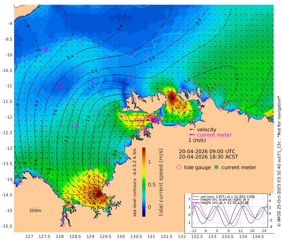 160cm/s 78T +4cm/s rms + 6cm/s 51T. Darwin_C1 52m 119cm/s 86T +4cm/s rms + 7cm/s -161T. Darwin_CW1 22m 88cm/s 75T +4cm/s rms + 8cm/s 61T. Darwin_CW2 34m 51cm/s 54T +3cm/s rms + 9cm/s 98T. Darwin_CW3 22m 114cm/s 88T +5cm/s rms + 7cm/s 88T. Darwin_C3 56m 101cm/s 63T +2cm/s rms + 9cm/s -126T. Darwin_CTbW 22m 5cm/s 91T +9cm/s rms + 2cm/s -110T. NWSLYN 196m 68cm/s 89T +1cm/s rms + 1cm/s -47T. DARBGF 30m 9cm/s 9T +7cm/s rms + 2cm/s -137T. ITFTIS 464m 4cm/s 72T +9cm/s rms + 1cm/s 74T. ITFMHB 146m 41cm/s 159T +4cm/s rms + 1cm/s -134T. ITFJBG 61m 26cm/s 131T +6cm/s rms + 4cm/s 121T. ITFFTB 108m 65cm/s 118T +4cm/s rms + 3cm/s 80T. NRSDAR 19m -108cm Carronade Island -119cm Guy Point -109cm Napier Broome Bay 4cm Lesueur Island 63cm Reveley Island 22cm Rocky Island 80cm Cape Domett 71cm Lacrosse Island 30cm Adolphus Island -88cm Pender Point -139cm Wyndham 73cm The Boxers 124cm Unnamed Shoal 14cm Loxton Shoal 116cm Pelican Island 69cm Calder Shoal 37cm Evans Shoal -1cm Quoin Island 177cm Port Keats 180cm Jones Point -101cm Catfish Island 172cm Cape Scott Offshore 291cm Cape Ford 205cm Anson Bay 74cm Goodrich Bank 201cm Peron Island North 202cm Point Jenny 206cm Native Point 217cm Fish Reef 221cm Tapa Bay 152cm Point Fawcett (Offshore) 230cm Burge Point 224cm Munkunuwa 193cm Beagle A 231cm Parsons Bank 221cm Fenton Patches 53cm Lynedoch Bank 205cm Hancox Shoal Area 214cm Nightcliff 239cm Darwin 235cm Charles Point Patches 131cm Glyde Point 16cm Chambers Bay 4cm Point Stuart 88cm Cape Hotham 16cm Christine Reef -12cm West Alligator Head -57cm East Field Island 44cm Two Hills Bay 143cm Newby Shoal 48cm Camp Point 224cm Medina Inlet South 153cm South Barlow Point 117cm St. Asaph Bay 85cm Cape Van Dieman 96cm Snake Bay 78cm Cache Point -27cm Echo Shoal 80cm Point Jahleel (Off) 92cm Cape Don 95cm Port Essington 95cm Smith Point - West 92cm NW Peacock Island 74cm North Of Jones Shoal 29cm Peacock Island 103cm Point David 101cm D'urville Point 82cm Money Shoal 100cm Copeland Island 128cm Cape Cockburn 98cm One Tree Point 113cm Hogmany Shoal 99cm New Year Island - West 103cm Grant Island 100cm Aurari Bay 97cm Cuthbert Point 103cm North Goulburn Island 84cm Paxie Shoal 84cm Entrance Island 64cm Yabooma Island