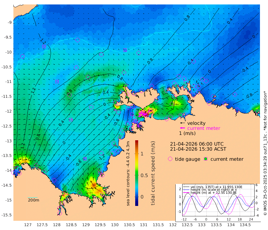 154cm/s -101T +4cm/s rms + 6cm/s 51T. Darwin_C1 52m 116cm/s -90T +4cm/s rms + 7cm/s -161T. Darwin_CW1 22m 75cm/s -107T +4cm/s rms + 8cm/s 61T. Darwin_CW2 34m 76cm/s -134T +3cm/s rms + 9cm/s 98T. Darwin_CW3 22m 122cm/s -91T +5cm/s rms + 7cm/s 88T. Darwin_C3 56m 83cm/s -115T +2cm/s rms + 9cm/s -126T. Darwin_CTbW 22m 11cm/s 140T +9cm/s rms + 2cm/s -110T. NWSLYN 196m 6cm/s -175T +1cm/s rms + 1cm/s -47T. DARBGF 30m 14cm/s 48T +7cm/s rms + 2cm/s -137T. ITFTIS 464m 15cm/s 66T +9cm/s rms + 1cm/s 74T. ITFMHB 146m 15cm/s 58T +4cm/s rms + 1cm/s -134T. ITFJBG 61m 25cm/s 86T +6cm/s rms + 4cm/s 121T. ITFFTB 108m 11cm/s -170T +4cm/s rms + 3cm/s 80T. NRSDAR 19m 135cm Carronade Island 134cm Guy Point 142cm Napier Broome Bay 53cm Lesueur Island -90cm Reveley Island -44cm Rocky Island -155cm Cape Domett -128cm Lacrosse Island -171cm Adolphus Island -128cm Pender Point -105cm Wyndham 82cm The Boxers 62cm Unnamed Shoal 126cm Loxton Shoal -183cm Pelican Island 91cm Calder Shoal 99cm Evans Shoal -226cm Quoin Island -154cm Port Keats -160cm Jones Point -155cm Catfish Island -85cm Cape Scott Offshore -47cm Cape Ford -102cm Anson Bay 86cm Goodrich Bank -82cm Peron Island North -73cm Point Jenny -71cm Native Point -85cm Fish Reef -99cm Tapa Bay 20cm Point Fawcett (Offshore) -115cm Burge Point -107cm Munkunuwa -38cm Beagle A -133cm Parsons Bank -103cm Fenton Patches 90cm Lynedoch Bank -129cm Hancox Shoal Area -129cm Nightcliff -138cm Darwin -98cm Charles Point Patches -105cm Glyde Point -101cm Chambers Bay -110cm Point Stuart -98cm Cape Hotham -92cm Christine Reef -125cm West Alligator Head -116cm East Field Island -83cm Two Hills Bay 32cm Newby Shoal -67cm Camp Point -97cm Medina Inlet South 25cm South Barlow Point 55cm St. Asaph Bay 83cm Cape Van Dieman 77cm Snake Bay 80cm Cache Point 144cm Echo Shoal 51cm Point Jahleel (Off) -4cm Cape Don 41cm Port Essington 38cm Smith Point - West 40cm NW Peacock Island 64cm North Of Jones Shoal 19cm Peacock Island 7cm Point David 33cm D'urville Point 49cm Money Shoal 0cm Copeland Island 3cm Cape Cockburn 15cm One Tree Point 3cm Hogmany Shoal 17cm New Year Island - West 6cm Grant Island -22cm Aurari Bay -44cm Cuthbert Point -18cm North Goulburn Island -52cm Paxie Shoal -81cm Entrance Island -113cm Yabooma Island