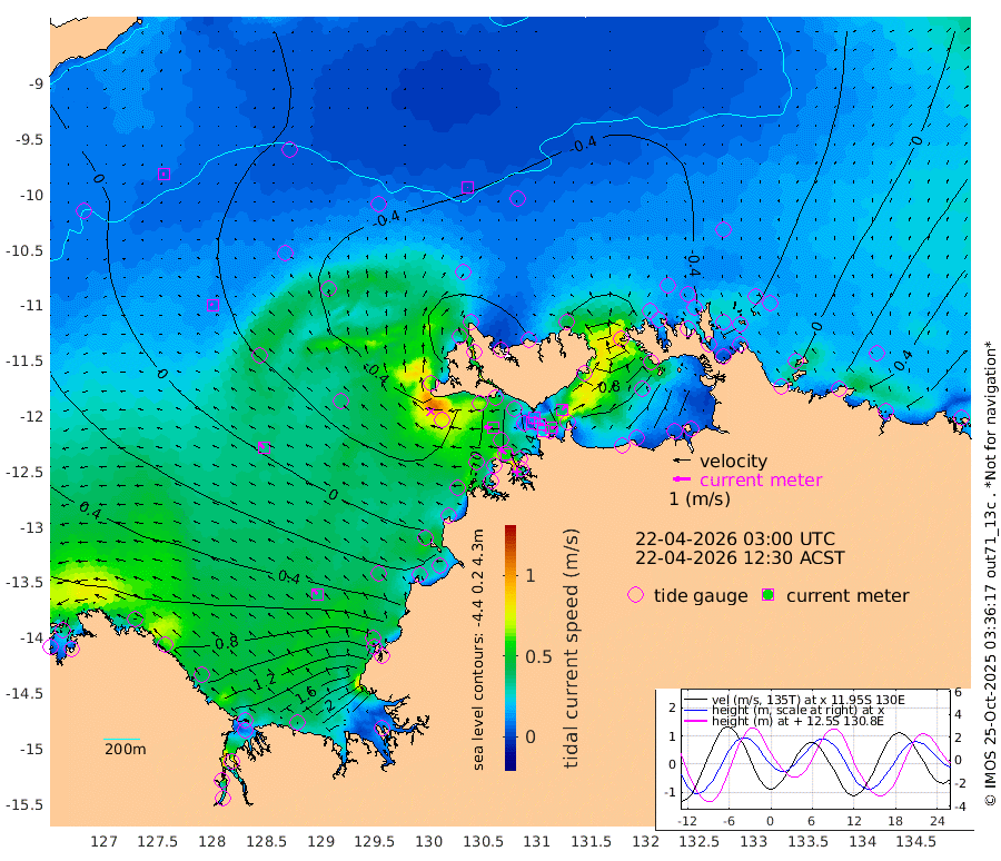 25cm/s 80T +4cm/s rms + 6cm/s 51T. Darwin_C1 52m 39cm/s 88T +4cm/s rms + 7cm/s -161T. Darwin_CW1 22m 5cm/s -113T +4cm/s rms + 8cm/s 61T. Darwin_CW2 34m 37cm/s 39T +3cm/s rms + 9cm/s 98T. Darwin_CW3 22m 20cm/s 99T +5cm/s rms + 7cm/s 88T. Darwin_C3 56m 12cm/s 74T +2cm/s rms + 9cm/s -126T. Darwin_CTbW 22m 3cm/s 7T +9cm/s rms + 2cm/s -110T. NWSLYN 196m 49cm/s -84T +1cm/s rms + 1cm/s -47T. DARBGF 30m 6cm/s -83T +7cm/s rms + 2cm/s -137T. ITFTIS 464m 10cm/s -39T +9cm/s rms + 1cm/s 74T. ITFMHB 146m 38cm/s -32T +4cm/s rms + 1cm/s -134T. ITFJBG 61m 36cm/s -50T +6cm/s rms + 4cm/s 121T. ITFFTB 108m 59cm/s -54T +4cm/s rms + 3cm/s 80T. NRSDAR 19m 141cm Carronade Island 150cm Guy Point 149cm Napier Broome Bay 125cm Lesueur Island 127cm Reveley Island 78cm Rocky Island 189cm Cape Domett 176cm Lacrosse Island 237cm Adolphus Island 306cm Pender Point 347cm Wyndham 11cm The Boxers -23cm Unnamed Shoal 0cm Loxton Shoal 160cm Pelican Island -9cm Calder Shoal -16cm Evans Shoal 295cm Quoin Island 105cm Port Keats 86cm Jones Point 343cm Catfish Island 36cm Cape Scott Offshore -36cm Cape Ford 22cm Anson Bay -33cm Goodrich Bank 9cm Peron Island North 10cm Point Jenny 6cm Native Point 4cm Fish Reef 12cm Tapa Bay -26cm Point Fawcett (Offshore) 24cm Burge Point -18cm Munkunuwa -1cm Beagle A 10cm Parsons Bank 23cm Fenton Patches -22cm Lynedoch Bank 34cm Hancox Shoal Area 35cm Nightcliff 30cm Darwin 15cm Charles Point Patches 80cm Glyde Point 158cm Chambers Bay 169cm Point Stuart 97cm Cape Hotham 153cm Christine Reef 193cm West Alligator Head 229cm East Field Island 116cm Two Hills Bay 21cm Newby Shoal 114cm Camp Point 2cm Medina Inlet South -45cm South Barlow Point -38cm St. Asaph Bay -40cm Cape Van Dieman -43cm Snake Bay -25cm Cache Point 14cm Echo Shoal -13cm Point Jahleel (Off) 22cm Cape Don -21cm Port Essington -21cm Smith Point - West -20cm NW Peacock Island -21cm North Of Jones Shoal -8cm Peacock Island -13cm Point David -24cm D'urville Point -14cm Money Shoal -11cm Copeland Island -7cm Cape Cockburn -9cm One Tree Point 6cm Hogmany Shoal -3cm New Year Island - West -3cm Grant Island 6cm Aurari Bay 32cm Cuthbert Point 10cm North Goulburn Island 51cm Paxie Shoal 58cm Entrance Island 85cm Yabooma Island