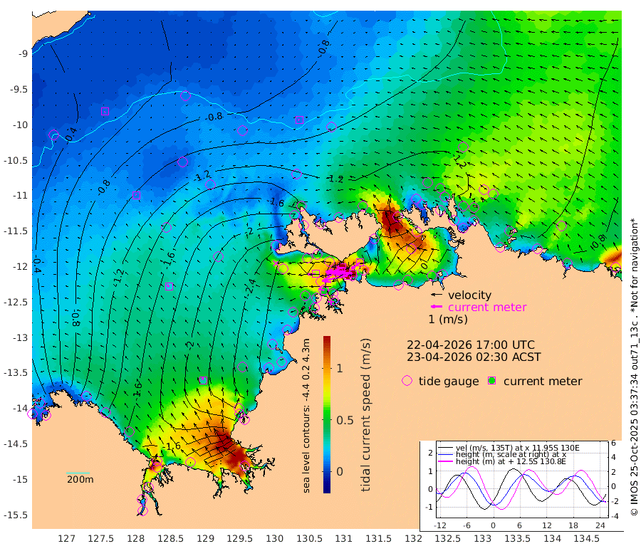 237cm/s -102T +4cm/s rms + 6cm/s 51T. Darwin_C1 52m 168cm/s -89T +4cm/s rms + 7cm/s -161T. Darwin_CW1 22m 132cm/s -107T +4cm/s rms + 8cm/s 61T. Darwin_CW2 34m 94cm/s -127T +3cm/s rms + 9cm/s 98T. Darwin_CW3 22m 181cm/s -91T +5cm/s rms + 7cm/s 88T. Darwin_C3 56m 136cm/s -115T +2cm/s rms + 9cm/s -126T. Darwin_CTbW 22m 10cm/s -62T +9cm/s rms + 2cm/s -110T. NWSLYN 196m 70cm/s -94T +1cm/s rms + 1cm/s -47T. DARBGF 30m 7cm/s -165T +7cm/s rms + 2cm/s -137T. ITFTIS 464m 10cm/s -12T +9cm/s rms + 1cm/s 74T. ITFMHB 146m 31cm/s -16T +4cm/s rms + 1cm/s -134T. ITFJBG 61m 23cm/s -45T +6cm/s rms + 4cm/s 121T. ITFFTB 108m 52cm/s -67T +4cm/s rms + 3cm/s 80T. NRSDAR 19m 17cm Carronade Island 16cm Guy Point 10cm Napier Broome Bay -83cm Lesueur Island -152cm Reveley Island -94cm Rocky Island -190cm Cape Domett -175cm Lacrosse Island -150cm Adolphus Island -55cm Pender Point -11cm Wyndham -124cm The Boxers -136cm Unnamed Shoal -71cm Loxton Shoal -210cm Pelican Island -119cm Calder Shoal -83cm Evans Shoal -153cm Quoin Island -259cm Port Keats -236cm Jones Point -70cm Catfish Island -239cm Cape Scott Offshore -325cm Cape Ford -265cm Anson Bay -101cm Goodrich Bank -256cm Peron Island North -253cm Point Jenny -253cm Native Point -264cm Fish Reef -271cm Tapa Bay -200cm Point Fawcett (Offshore) -280cm Burge Point -268cm Munkunuwa -232cm Beagle A -274cm Parsons Bank -261cm Fenton Patches -81cm Lynedoch Bank -253cm Hancox Shoal Area -268cm Nightcliff -292cm Darwin -289cm Charles Point Patches -178cm Glyde Point -75cm Chambers Bay -61cm Point Stuart -133cm Cape Hotham -80cm Christine Reef -53cm West Alligator Head -10cm East Field Island -96cm Two Hills Bay -200cm Newby Shoal -93cm Camp Point -277cm Medina Inlet South -186cm South Barlow Point -155cm St. Asaph Bay -108cm Cape Van Dieman -118cm Snake Bay -108cm Cache Point -29cm Echo Shoal -108cm Point Jahleel (Off) -127cm Cape Don -115cm Port Essington -115cm Smith Point - West -107cm NW Peacock Island -103cm North Of Jones Shoal -36cm Peacock Island -100cm Point David -113cm D'urville Point -94cm Money Shoal -95cm Copeland Island -132cm Cape Cockburn -106cm One Tree Point -118cm Hogmany Shoal -100cm New Year Island - West -105cm Grant Island -89cm Aurari Bay -93cm Cuthbert Point -102cm North Goulburn Island -87cm Paxie Shoal -71cm Entrance Island -45cm Yabooma Island