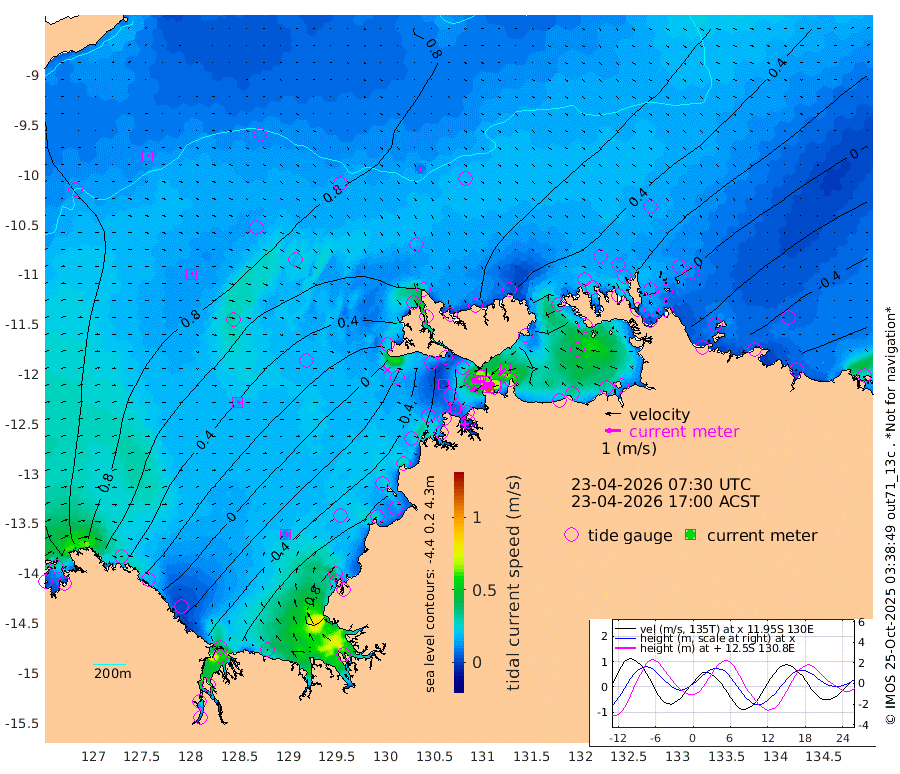114cm/s -101T +4cm/s rms + 6cm/s 51T. Darwin_C1 52m 69cm/s -91T +4cm/s rms + 7cm/s -161T. Darwin_CW1 22m 42cm/s -107T +4cm/s rms + 8cm/s 61T. Darwin_CW2 34m 54cm/s -134T +3cm/s rms + 9cm/s 98T. Darwin_CW3 22m 62cm/s -91T +5cm/s rms + 7cm/s 88T. Darwin_C3 56m 66cm/s -116T +2cm/s rms + 9cm/s -126T. Darwin_CTbW 22m 10cm/s 131T +9cm/s rms + 2cm/s -110T. NWSLYN 196m 3cm/s 178T +1cm/s rms + 1cm/s -47T. DARBGF 30m 13cm/s 38T +7cm/s rms + 2cm/s -137T. ITFTIS 464m 14cm/s 48T +9cm/s rms + 1cm/s 74T. ITFMHB 146m 12cm/s 38T +4cm/s rms + 1cm/s -134T. ITFJBG 61m 17cm/s 69T +6cm/s rms + 4cm/s 121T. ITFFTB 108m 7cm/s -157T +4cm/s rms + 3cm/s 80T. NRSDAR 19m 98cm Carronade Island 101cm Guy Point 108cm Napier Broome Bay 52cm Lesueur Island -42cm Reveley Island -29cm Rocky Island -75cm Cape Domett -62cm Lacrosse Island -89cm Adolphus Island -54cm Pender Point -44cm Wyndham 71cm The Boxers 55cm Unnamed Shoal 101cm Loxton Shoal -98cm Pelican Island 78cm Calder Shoal 78cm Evans Shoal -120cm Quoin Island -74cm Port Keats -83cm Jones Point -119cm Catfish Island -34cm Cape Scott Offshore 5cm Cape Ford -43cm Anson Bay 70cm Goodrich Bank -37cm Peron Island North -29cm Point Jenny -26cm Native Point -39cm Fish Reef -42cm Tapa Bay 29cm Point Fawcett (Offshore) -49cm Burge Point -49cm Munkunuwa -9cm Beagle A -67cm Parsons Bank -48cm Fenton Patches 72cm Lynedoch Bank -65cm Hancox Shoal Area -61cm Nightcliff -63cm Darwin -35cm Charles Point Patches -55cm Glyde Point -63cm Chambers Bay -74cm Point Stuart -58cm Cape Hotham -56cm Christine Reef -87cm West Alligator Head -82cm East Field Island -54cm Two Hills Bay 41cm Newby Shoal -32cm Camp Point -39cm Medina Inlet South 34cm South Barlow Point 52cm St. Asaph Bay 68cm Cape Van Dieman 65cm Snake Bay 63cm Cache Point 107cm Echo Shoal 42cm Point Jahleel (Off) 6cm Cape Don 36cm Port Essington 30cm Smith Point - West 32cm NW Peacock Island 51cm North Of Jones Shoal 16cm Peacock Island 8cm Point David 25cm D'urville Point 43cm Money Shoal 3cm Copeland Island 4cm Cape Cockburn 15cm One Tree Point 4cm Hogmany Shoal 16cm New Year Island - West 8cm Grant Island -16cm Aurari Bay -32cm Cuthbert Point -10cm North Goulburn Island -28cm Paxie Shoal -56cm Entrance Island -78cm Yabooma Island