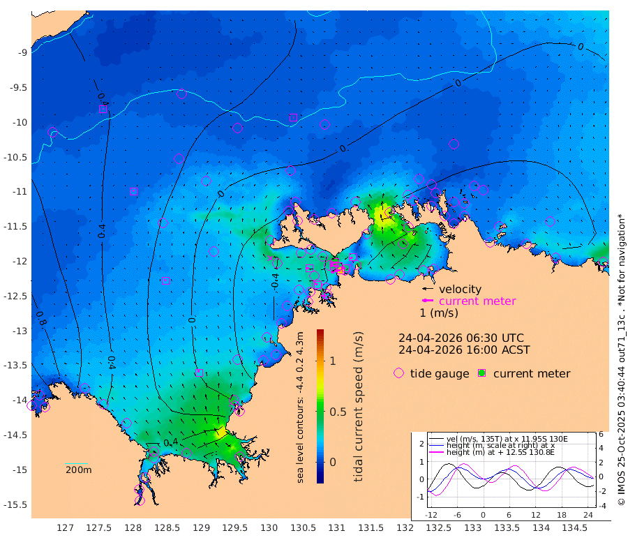 91cm/s -102T +4cm/s rms + 6cm/s 51T. Darwin_C1 52m 36cm/s -90T +4cm/s rms + 7cm/s -161T. Darwin_CW1 22m 38cm/s -109T +4cm/s rms + 8cm/s 61T. Darwin_CW2 34m 27cm/s -121T +3cm/s rms + 9cm/s 98T. Darwin_CW3 22m 35cm/s -92T +5cm/s rms + 7cm/s 88T. Darwin_C3 56m 52cm/s -116T +2cm/s rms + 9cm/s -126T. Darwin_CTbW 22m 4cm/s 101T +9cm/s rms + 2cm/s -110T. NWSLYN 196m 29cm/s -88T +1cm/s rms + 1cm/s -47T. DARBGF 30m 8cm/s 17T +7cm/s rms + 2cm/s -137T. ITFTIS 464m 12cm/s 18T +9cm/s rms + 1cm/s 74T. ITFMHB 146m 23cm/s -18T +4cm/s rms + 1cm/s -134T. ITFJBG 61m 17cm/s -16T +6cm/s rms + 4cm/s 121T. ITFFTB 108m 26cm/s -66T +4cm/s rms + 3cm/s 80T. NRSDAR 19m 122cm Carronade Island 128cm Guy Point 134cm Napier Broome Bay 86cm Lesueur Island 33cm Reveley Island 18cm Rocky Island 46cm Cape Domett 48cm Lacrosse Island 56cm Adolphus Island 123cm Pender Point 146cm Wyndham 36cm The Boxers 14cm Unnamed Shoal 46cm Loxton Shoal 14cm Pelican Island 31cm Calder Shoal 22cm Evans Shoal 64cm Quoin Island 2cm Port Keats -8cm Jones Point 70cm Catfish Island -13cm Cape Scott Offshore -12cm Cape Ford -25cm Anson Bay 11cm Goodrich Bank -32cm Peron Island North -20cm Point Jenny -19cm Native Point -30cm Fish Reef -26cm Tapa Bay -10cm Point Fawcett (Offshore) -21cm Burge Point -43cm Munkunuwa -13cm Beagle A -45cm Parsons Bank -21cm Fenton Patches 18cm Lynedoch Bank -31cm Hancox Shoal Area -26cm Nightcliff -32cm Darwin -25cm Charles Point Patches 0cm Glyde Point 36cm Chambers Bay 34cm Point Stuart 6cm Cape Hotham 36cm Christine Reef 39cm West Alligator Head 63cm East Field Island 15cm Two Hills Bay 23cm Newby Shoal 34cm Camp Point -31cm Medina Inlet South -16cm South Barlow Point -2cm St. Asaph Bay 7cm Cape Van Dieman 2cm Snake Bay 9cm Cache Point 58cm Echo Shoal 3cm Point Jahleel (Off) -1cm Cape Don -8cm Port Essington -13cm Smith Point - West -12cm NW Peacock Island -1cm North Of Jones Shoal -2cm Peacock Island -21cm Point David -18cm D'urville Point 0cm Money Shoal -23cm Copeland Island -28cm Cape Cockburn -17cm One Tree Point -20cm Hogmany Shoal -12cm New Year Island - West -17cm Grant Island -26cm Aurari Bay -25cm Cuthbert Point -22cm North Goulburn Island -7cm Paxie Shoal -19cm Entrance Island -19cm Yabooma Island