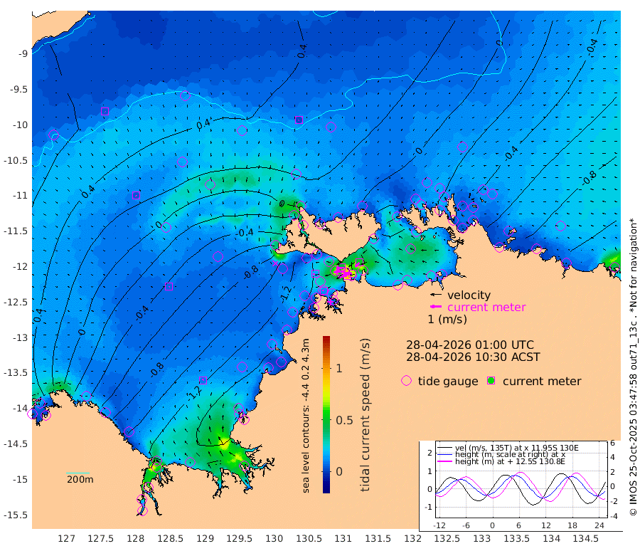 88cm/s -102T +4cm/s rms + 6cm/s 51T. Darwin_C1 52m 71cm/s -90T +4cm/s rms + 7cm/s -161T. Darwin_CW1 22m 59cm/s -106T +4cm/s rms + 8cm/s 61T. Darwin_CW2 34m 50cm/s -136T +3cm/s rms + 9cm/s 98T. Darwin_CW3 22m 91cm/s -91T +5cm/s rms + 7cm/s 88T. Darwin_C3 56m 47cm/s -115T +2cm/s rms + 9cm/s -126T. Darwin_CTbW 22m 2cm/s -122T +9cm/s rms + 2cm/s -110T. NWSLYN 196m 16cm/s -103T +1cm/s rms + 1cm/s -47T. DARBGF 30m 5cm/s 128T +7cm/s rms + 2cm/s -137T. ITFTIS 464m 5cm/s 126T +9cm/s rms + 1cm/s 74T. ITFMHB 146m 9cm/s 16T +4cm/s rms + 1cm/s -134T. ITFJBG 61m 7cm/s 88T +6cm/s rms + 4cm/s 121T. ITFFTB 108m 12cm/s -79T +4cm/s rms + 3cm/s 80T. NRSDAR 19m 56cm Carronade Island 57cm Guy Point 54cm Napier Broome Bay -14cm Lesueur Island -92cm Reveley Island -15cm Rocky Island -147cm Cape Domett -132cm Lacrosse Island -131cm Adolphus Island -109cm Pender Point -90cm Wyndham 7cm The Boxers -15cm Unnamed Shoal 60cm Loxton Shoal -168cm Pelican Island 20cm Calder Shoal 42cm Evans Shoal -167cm Quoin Island -156cm Port Keats -172cm Jones Point -150cm Catfish Island -116cm Cape Scott Offshore -144cm Cape Ford -135cm Anson Bay 26cm Goodrich Bank -113cm Peron Island North -115cm Point Jenny -112cm Native Point -124cm Fish Reef -134cm Tapa Bay -47cm Point Fawcett (Offshore) -145cm Burge Point -125cm Munkunuwa -87cm Beagle A -141cm Parsons Bank -131cm Fenton Patches 34cm Lynedoch Bank -139cm Hancox Shoal Area -141cm Nightcliff -156cm Darwin -138cm Charles Point Patches -118cm Glyde Point -104cm Chambers Bay -102cm Point Stuart -105cm Cape Hotham -85cm Christine Reef -109cm West Alligator Head -101cm East Field Island -84cm Two Hills Bay -32cm Newby Shoal -85cm Camp Point -127cm Medina Inlet South -26cm South Barlow Point -6cm St. Asaph Bay 21cm Cape Van Dieman 19cm Snake Bay 17cm Cache Point 74cm Echo Shoal 3cm Point Jahleel (Off) -39cm Cape Don -7cm Port Essington -2cm Smith Point - West 0cm NW Peacock Island 12cm North Of Jones Shoal 2cm Peacock Island -27cm Point David -5cm D'urville Point -2cm Money Shoal -30cm Copeland Island -36cm Cape Cockburn -23cm One Tree Point -39cm Hogmany Shoal -22cm New Year Island - West -27cm Grant Island -44cm Aurari Bay -59cm Cuthbert Point -46cm North Goulburn Island -79cm Paxie Shoal -88cm Entrance Island -111cm Yabooma Island