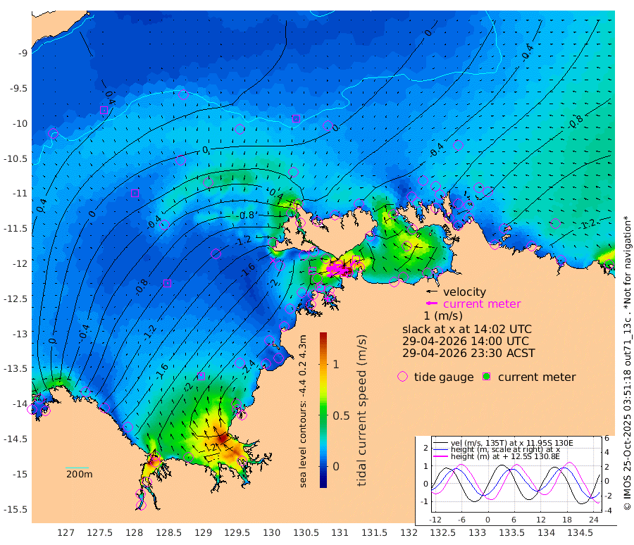 155cm/s -101T +4cm/s rms + 6cm/s 51T. Darwin_C1 52m 127cm/s -90T +4cm/s rms + 7cm/s -161T. Darwin_CW1 22m 94cm/s -106T +4cm/s rms + 8cm/s 61T. Darwin_CW2 34m 76cm/s -136T +3cm/s rms + 9cm/s 98T. Darwin_CW3 22m 144cm/s -91T +5cm/s rms + 7cm/s 88T. Darwin_C3 56m 86cm/s -115T +2cm/s rms + 9cm/s -126T. Darwin_CTbW 22m 8cm/s 178T +9cm/s rms + 2cm/s -110T. NWSLYN 196m 32cm/s -101T +1cm/s rms + 1cm/s -47T. DARBGF 30m 6cm/s 127T +7cm/s rms + 2cm/s -137T. ITFTIS 464m 5cm/s 110T +9cm/s rms + 1cm/s 74T. ITFMHB 146m 16cm/s 12T +4cm/s rms + 1cm/s -134T. ITFJBG 61m 6cm/s 76T +6cm/s rms + 4cm/s 121T. ITFFTB 108m 23cm/s -75T +4cm/s rms + 3cm/s 80T. NRSDAR 19m 39cm Carronade Island 46cm Guy Point 43cm Napier Broome Bay -77cm Lesueur Island -170cm Reveley Island -91cm Rocky Island -251cm Cape Domett -233cm Lacrosse Island -249cm Adolphus Island -168cm Pender Point -151cm Wyndham -44cm The Boxers -59cm Unnamed Shoal 31cm Loxton Shoal -269cm Pelican Island -27cm Calder Shoal 12cm Evans Shoal -286cm Quoin Island -277cm Port Keats -272cm Jones Point -242cm Catfish Island -205cm Cape Scott Offshore -257cm Cape Ford -229cm Anson Bay -10cm Goodrich Bank -214cm Peron Island North -209cm Point Jenny -206cm Native Point -233cm Fish Reef -231cm Tapa Bay -114cm Point Fawcett (Offshore) -261cm Burge Point -216cm Munkunuwa -193cm Beagle A -245cm Parsons Bank -253cm Fenton Patches 3cm Lynedoch Bank -238cm Hancox Shoal Area -254cm Nightcliff -275cm Darwin -250cm Charles Point Patches -205cm Glyde Point -159cm Chambers Bay -158cm Point Stuart -178cm Cape Hotham -147cm Christine Reef -167cm West Alligator Head -155cm East Field Island -145cm Two Hills Bay -136cm Newby Shoal -142cm Camp Point -233cm Medina Inlet South -94cm South Barlow Point -61cm St. Asaph Bay -14cm Cape Van Dieman -21cm Snake Bay -23cm Cache Point 51cm Echo Shoal -40cm Point Jahleel (Off) -91cm Cape Don -48cm Port Essington -47cm Smith Point - West -42cm NW Peacock Island -26cm North Of Jones Shoal -11cm Peacock Island -56cm Point David -49cm D'urville Point -35cm Money Shoal -58cm Copeland Island -86cm Cape Cockburn -58cm One Tree Point -70cm Hogmany Shoal -59cm New Year Island - West -62cm Grant Island -81cm Aurari Bay -95cm Cuthbert Point -80cm North Goulburn Island -96cm Paxie Shoal -115cm Entrance Island -131cm Yabooma Island