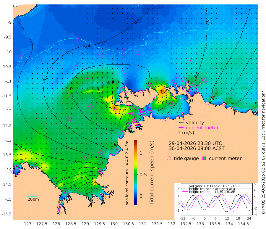 41cm/s -104T +4cm/s rms + 6cm/s 51T. Darwin_C1 52m 11cm/s -76T +4cm/s rms + 7cm/s -161T. Darwin_CW1 22m 38cm/s -110T +4cm/s rms + 8cm/s 61T. Darwin_CW2 34m 10cm/s -27T +3cm/s rms + 9cm/s 98T. Darwin_CW3 22m 27cm/s -98T +5cm/s rms + 7cm/s 88T. Darwin_C3 56m 31cm/s -117T +2cm/s rms + 9cm/s -126T. Darwin_CTbW 22m 8cm/s -21T +9cm/s rms + 2cm/s -110T. NWSLYN 196m 58cm/s -86T +1cm/s rms + 1cm/s -47T. DARBGF 30m 7cm/s -102T +7cm/s rms + 2cm/s -137T. ITFTIS 464m 13cm/s -33T +9cm/s rms + 1cm/s 74T. ITFMHB 146m 40cm/s -33T +4cm/s rms + 1cm/s -134T. ITFJBG 61m 40cm/s -50T +6cm/s rms + 4cm/s 121T. ITFFTB 108m 60cm/s -56T +4cm/s rms + 3cm/s 80T. NRSDAR 19m 75cm Carronade Island 83cm Guy Point 70cm Napier Broome Bay 61cm Lesueur Island 69cm Reveley Island 24cm Rocky Island 108cm Cape Domett 97cm Lacrosse Island 165cm Adolphus Island 219cm Pender Point 255cm Wyndham -34cm The Boxers -62cm Unnamed Shoal -20cm Loxton Shoal 83cm Pelican Island -40cm Calder Shoal -30cm Evans Shoal 211cm Quoin Island 31cm Port Keats 23cm Jones Point 187cm Catfish Island -30cm Cape Scott Offshore -53cm Cape Ford -47cm Anson Bay -46cm Goodrich Bank -40cm Peron Island North -55cm Point Jenny -58cm Native Point -52cm Fish Reef -52cm Tapa Bay -69cm Point Fawcett (Offshore) -32cm Burge Point -63cm Munkunuwa -55cm Beagle A -36cm Parsons Bank -35cm Fenton Patches -33cm Lynedoch Bank -20cm Hancox Shoal Area -31cm Nightcliff -24cm Darwin -39cm Charles Point Patches 27cm Glyde Point 91cm Chambers Bay 112cm Point Stuart 51cm Cape Hotham 91cm Christine Reef 130cm West Alligator Head 165cm East Field Island 67cm Two Hills Bay -34cm Newby Shoal 65cm Camp Point -51cm Medina Inlet South -70cm South Barlow Point -64cm St. Asaph Bay -53cm Cape Van Dieman -54cm Snake Bay -43cm Cache Point -5cm Echo Shoal -32cm Point Jahleel (Off) -10cm Cape Don -34cm Port Essington -36cm Smith Point - West -31cm NW Peacock Island -34cm North Of Jones Shoal -12cm Peacock Island -21cm Point David -35cm D'urville Point -24cm Money Shoal -17cm Copeland Island -16cm Cape Cockburn -19cm One Tree Point -5cm Hogmany Shoal -17cm New Year Island - West -14cm Grant Island -6cm Aurari Bay 13cm Cuthbert Point -5cm North Goulburn Island 25cm Paxie Shoal 40cm Entrance Island 70cm Yabooma Island