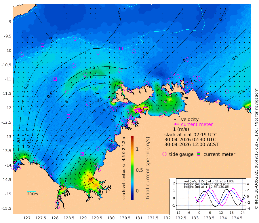 124cm/s -101T +4cm/s rms + 6cm/s 51T. Darwin_C1 52m 103cm/s -90T +4cm/s rms + 7cm/s -161T. Darwin_CW1 22m 77cm/s -106T +4cm/s rms + 8cm/s 61T. Darwin_CW2 34m 61cm/s -134T +3cm/s rms + 9cm/s 98T. Darwin_CW3 22m 124cm/s -91T +5cm/s rms + 7cm/s 88T. Darwin_C3 56m 63cm/s -116T +2cm/s rms + 9cm/s -126T. Darwin_CTbW 22m 4cm/s 165T +9cm/s rms + 2cm/s -110T. NWSLYN 196m 19cm/s -105T +1cm/s rms + 1cm/s -47T. DARBGF 30m 6cm/s 81T +7cm/s rms + 2cm/s -137T. ITFTIS 464m 8cm/s 87T +9cm/s rms + 1cm/s 74T. ITFMHB 146m 14cm/s 22T +4cm/s rms + 1cm/s -134T. ITFJBG 61m 12cm/s 78T +6cm/s rms + 4cm/s 121T. ITFFTB 108m 15cm/s -87T +4cm/s rms + 3cm/s 80T. NRSDAR 19m 114cm Carronade Island 115cm Guy Point 116cm Napier Broome Bay 17cm Lesueur Island -99cm Reveley Island -29cm Rocky Island -165cm Cape Domett -143cm Lacrosse Island -155cm Adolphus Island -111cm Pender Point -81cm Wyndham 32cm The Boxers 7cm Unnamed Shoal 88cm Loxton Shoal -198cm Pelican Island 44cm Calder Shoal 63cm Evans Shoal -206cm Quoin Island -179cm Port Keats -198cm Jones Point -158cm Catfish Island -129cm Cape Scott Offshore -149cm Cape Ford -152cm Anson Bay 44cm Goodrich Bank -128cm Peron Island North -122cm Point Jenny -120cm Native Point -138cm Fish Reef -149cm Tapa Bay -40cm Point Fawcett (Offshore) -159cm Burge Point -148cm Munkunuwa -88cm Beagle A -164cm Parsons Bank -145cm Fenton Patches 53cm Lynedoch Bank -159cm Hancox Shoal Area -160cm Nightcliff -182cm Darwin -157cm Charles Point Patches -129cm Glyde Point -102cm Chambers Bay -102cm Point Stuart -109cm Cape Hotham -81cm Christine Reef -110cm West Alligator Head -96cm East Field Island -84cm Two Hills Bay -13cm Newby Shoal -81cm Camp Point -146cm Medina Inlet South -22cm South Barlow Point 5cm St. Asaph Bay 39cm Cape Van Dieman 35cm Snake Bay 38cm Cache Point 106cm Echo Shoal 18cm Point Jahleel (Off) -30cm Cape Don 6cm Port Essington 10cm Smith Point - West 13cm NW Peacock Island 29cm North Of Jones Shoal 8cm Peacock Island -16cm Point David 7cm D'urville Point 17cm Money Shoal -19cm Copeland Island -20cm Cape Cockburn -10cm One Tree Point -23cm Hogmany Shoal -7cm New Year Island - West -14cm Grant Island -36cm Aurari Bay -51cm Cuthbert Point -34cm North Goulburn Island -67cm Paxie Shoal -81cm Entrance Island -105cm Yabooma Island