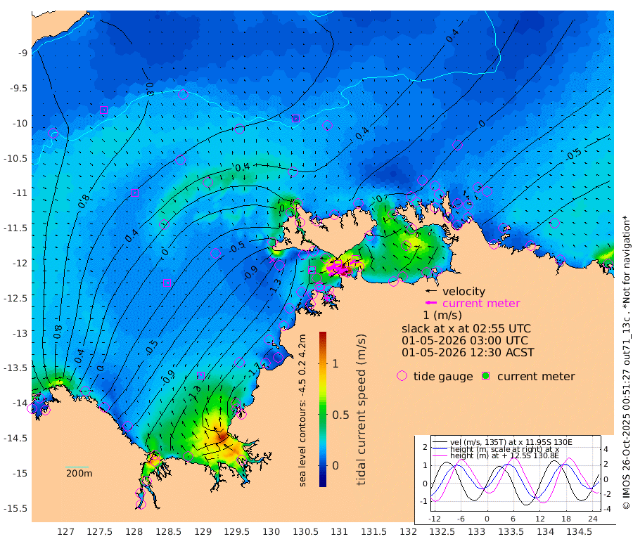 138cm/s -101T +4cm/s rms + 6cm/s 51T. Darwin_C1 52m 116cm/s -90T +4cm/s rms + 7cm/s -161T. Darwin_CW1 22m 84cm/s -106T +4cm/s rms + 8cm/s 61T. Darwin_CW2 34m 64cm/s -133T +3cm/s rms + 9cm/s 98T. Darwin_CW3 22m 135cm/s -91T +5cm/s rms + 7cm/s 88T. Darwin_C3 56m 71cm/s -116T +2cm/s rms + 9cm/s -126T. Darwin_CTbW 22m 5cm/s 153T +9cm/s rms + 2cm/s -110T. NWSLYN 196m 23cm/s -102T +1cm/s rms + 1cm/s -47T. DARBGF 30m 7cm/s 67T +7cm/s rms + 2cm/s -137T. ITFTIS 464m 9cm/s 74T +9cm/s rms + 1cm/s 74T. ITFMHB 146m 16cm/s 18T +4cm/s rms + 1cm/s -134T. ITFJBG 61m 13cm/s 69T +6cm/s rms + 4cm/s 121T. ITFFTB 108m 19cm/s -84T +4cm/s rms + 3cm/s 80T. NRSDAR 19m 136cm Carronade Island 137cm Guy Point 139cm Napier Broome Bay 33cm Lesueur Island -92cm Reveley Island -34cm Rocky Island -158cm Cape Domett -135cm Lacrosse Island -151cm Adolphus Island -95cm Pender Point -62cm Wyndham 38cm The Boxers 14cm Unnamed Shoal 94cm Loxton Shoal -196cm Pelican Island 50cm Calder Shoal 67cm Evans Shoal -204cm Quoin Island -178cm Port Keats -196cm Jones Point -154cm Catfish Island -129cm Cape Scott Offshore -139cm Cape Ford -154cm Anson Bay 48cm Goodrich Bank -129cm Peron Island North -121cm Point Jenny -119cm Native Point -139cm Fish Reef -149cm Tapa Bay -37cm Point Fawcett (Offshore) -158cm Burge Point -152cm Munkunuwa -87cm Beagle A -167cm Parsons Bank -145cm Fenton Patches 57cm Lynedoch Bank -161cm Hancox Shoal Area -162cm Nightcliff -184cm Darwin -158cm Charles Point Patches -126cm Glyde Point -93cm Chambers Bay -93cm Point Stuart -104cm Cape Hotham -73cm Christine Reef -100cm West Alligator Head -84cm East Field Island -78cm Two Hills Bay -7cm Newby Shoal -73cm Camp Point -148cm Medina Inlet South -22cm South Barlow Point 6cm St. Asaph Bay 42cm Cape Van Dieman 37cm Snake Bay 42cm Cache Point 114cm Echo Shoal 21cm Point Jahleel (Off) -27cm Cape Don 8cm Port Essington 11cm Smith Point - West 15cm NW Peacock Island 32cm North Of Jones Shoal 9cm Peacock Island -13cm Point David 7cm D'urville Point 20cm Money Shoal -17cm Copeland Island -17cm Cape Cockburn -7cm One Tree Point -18cm Hogmany Shoal -4cm New Year Island - West -11cm Grant Island -35cm Aurari Bay -48cm Cuthbert Point -30cm North Goulburn Island -60cm Paxie Shoal -74cm Entrance Island -97cm Yabooma Island