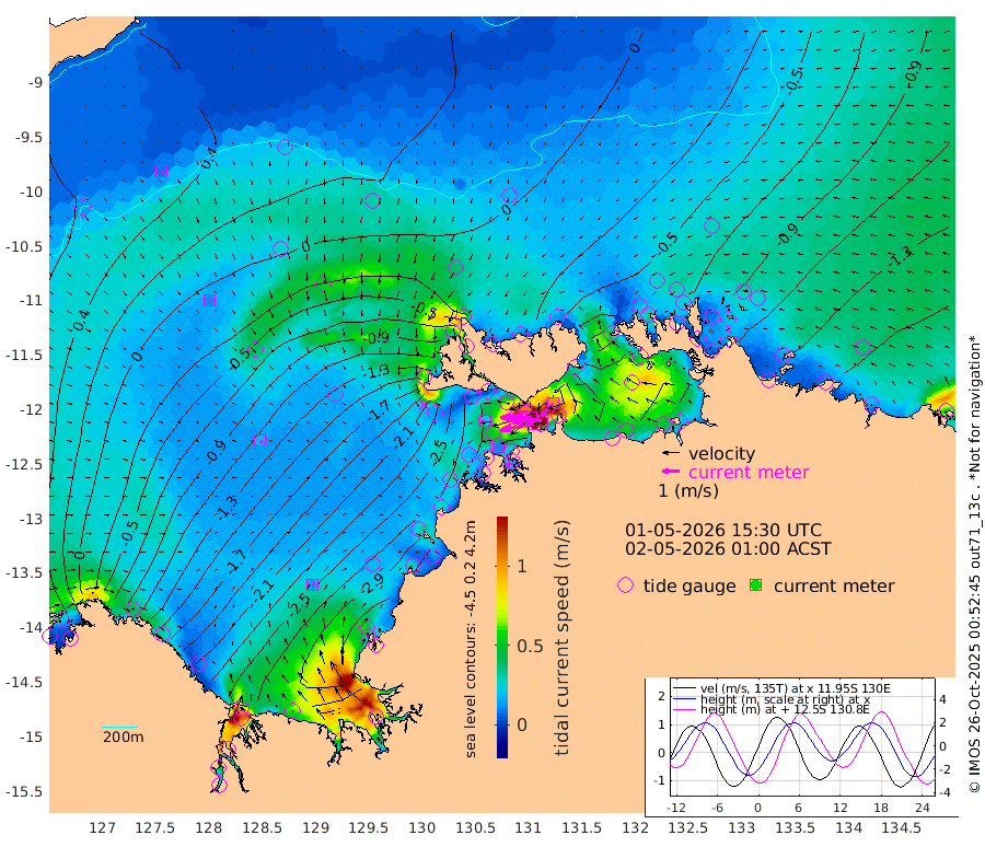200cm/s -101T +4cm/s rms + 6cm/s 51T. Darwin_C1 52m 174cm/s -91T +4cm/s rms + 7cm/s -161T. Darwin_CW1 22m 104cm/s -106T +4cm/s rms + 8cm/s 61T. Darwin_CW2 34m 102cm/s -136T +3cm/s rms + 9cm/s 98T. Darwin_CW3 22m 180cm/s -90T +5cm/s rms + 7cm/s 88T. Darwin_C3 56m 107cm/s -115T +2cm/s rms + 9cm/s -126T. Darwin_CTbW 22m 8cm/s -169T +9cm/s rms + 2cm/s -110T. NWSLYN 196m 21cm/s -114T +1cm/s rms + 1cm/s -47T. DARBGF 30m 9cm/s 127T +7cm/s rms + 2cm/s -137T. ITFTIS 464m 11cm/s 140T +9cm/s rms + 1cm/s 74T. ITFMHB 146m 13cm/s 61T +4cm/s rms + 1cm/s -134T. ITFJBG 61m 19cm/s 117T +6cm/s rms + 4cm/s 121T. ITFFTB 108m 11cm/s -120T +4cm/s rms + 3cm/s 80T. NRSDAR 19m 32cm Carronade Island 36cm Guy Point 30cm Napier Broome Bay -103cm Lesueur Island -212cm Reveley Island -104cm Rocky Island -317cm Cape Domett -291cm Lacrosse Island -328cm Adolphus Island -256cm Pender Point -243cm Wyndham -47cm The Boxers -67cm Unnamed Shoal 30cm Loxton Shoal -333cm Pelican Island -26cm Calder Shoal 13cm Evans Shoal -400cm Quoin Island -326cm Port Keats -316cm Jones Point -344cm Catfish Island -235cm Cape Scott Offshore -248cm Cape Ford -260cm Anson Bay -7cm Goodrich Bank -239cm Peron Island North -219cm Point Jenny -216cm Native Point -249cm Fish Reef -251cm Tapa Bay -118cm Point Fawcett (Offshore) -282cm Burge Point -233cm Munkunuwa -194cm Beagle A -274cm Parsons Bank -267cm Fenton Patches 1cm Lynedoch Bank -269cm Hancox Shoal Area -283cm Nightcliff -314cm Darwin -281cm Charles Point Patches -241cm Glyde Point -201cm Chambers Bay -207cm Point Stuart -216cm Cape Hotham -184cm Christine Reef -221cm West Alligator Head -212cm East Field Island -185cm Two Hills Bay -140cm Newby Shoal -179cm Camp Point -257cm Medina Inlet South -96cm South Barlow Point -58cm St. Asaph Bay -10cm Cape Van Dieman -23cm Snake Bay -21cm Cache Point 55cm Echo Shoal -44cm Point Jahleel (Off) -109cm Cape Don -57cm Port Essington -53cm Smith Point - West -50cm NW Peacock Island -35cm North Of Jones Shoal -15cm Peacock Island -75cm Point David -57cm D'urville Point -47cm Money Shoal -78cm Copeland Island -112cm Cape Cockburn -79cm One Tree Point -97cm Hogmany Shoal -79cm New Year Island - West -84cm Grant Island -107cm Aurari Bay -126cm Cuthbert Point -106cm North Goulburn Island -138cm Paxie Shoal -150cm Entrance Island -176cm Yabooma Island
