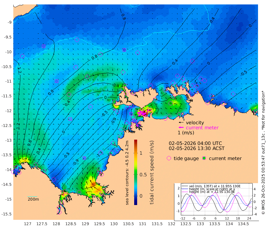 133cm/s -101T +4cm/s rms + 6cm/s 51T. Darwin_C1 52m 117cm/s -91T +4cm/s rms + 7cm/s -161T. Darwin_CW1 22m 72cm/s -106T +4cm/s rms + 8cm/s 61T. Darwin_CW2 34m 69cm/s -134T +3cm/s rms + 9cm/s 98T. Darwin_CW3 22m 127cm/s -91T +5cm/s rms + 7cm/s 88T. Darwin_C3 56m 65cm/s -116T +2cm/s rms + 9cm/s -126T. Darwin_CTbW 22m 8cm/s 146T +9cm/s rms + 2cm/s -110T. NWSLYN 196m 7cm/s -145T +1cm/s rms + 1cm/s -47T. DARBGF 30m 10cm/s 58T +7cm/s rms + 2cm/s -137T. ITFTIS 464m 12cm/s 81T +9cm/s rms + 1cm/s 74T. ITFMHB 146m 13cm/s 57T +4cm/s rms + 1cm/s -134T. ITFJBG 61m 21cm/s 92T +6cm/s rms + 4cm/s 121T. ITFFTB 108m 9cm/s -158T +4cm/s rms + 3cm/s 80T. NRSDAR 19m 131cm Carronade Island 130cm Guy Point 135cm Napier Broome Bay 37cm Lesueur Island -92cm Reveley Island -41cm Rocky Island -165cm Cape Domett -138cm Lacrosse Island -177cm Adolphus Island -134cm Pender Point -110cm Wyndham 60cm The Boxers 44cm Unnamed Shoal 107cm Loxton Shoal -200cm Pelican Island 73cm Calder Shoal 82cm Evans Shoal -243cm Quoin Island -165cm Port Keats -180cm Jones Point -200cm Catfish Island -105cm Cape Scott Offshore -87cm Cape Ford -124cm Anson Bay 68cm Goodrich Bank -101cm Peron Island North -87cm Point Jenny -85cm Native Point -106cm Fish Reef -116cm Tapa Bay -5cm Point Fawcett (Offshore) -125cm Burge Point -118cm Munkunuwa -53cm Beagle A -139cm Parsons Bank -114cm Fenton Patches 72cm Lynedoch Bank -138cm Hancox Shoal Area -134cm Nightcliff -157cm Darwin -127cm Charles Point Patches -116cm Glyde Point -104cm Chambers Bay -109cm Point Stuart -102cm Cape Hotham -84cm Christine Reef -121cm West Alligator Head -113cm East Field Island -83cm Two Hills Bay 21cm Newby Shoal -75cm Camp Point -116cm Medina Inlet South 8cm South Barlow Point 34cm St. Asaph Bay 65cm Cape Van Dieman 60cm Snake Bay 62cm Cache Point 122cm Echo Shoal 38cm Point Jahleel (Off) -14cm Cape Don 25cm Port Essington 27cm Smith Point - West 30cm NW Peacock Island 48cm North Of Jones Shoal 14cm Peacock Island 1cm Point David 23cm D'urville Point 35cm Money Shoal -4cm Copeland Island -1cm Cape Cockburn 6cm One Tree Point -5cm Hogmany Shoal 10cm New Year Island - West 2cm Grant Island -26cm Aurari Bay -44cm Cuthbert Point -20cm North Goulburn Island -56cm Paxie Shoal -74cm Entrance Island -104cm Yabooma Island