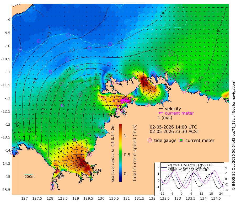188cm/s -102T +4cm/s rms + 6cm/s 51T. Darwin_C1 52m 149cm/s -89T +4cm/s rms + 7cm/s -161T. Darwin_CW1 22m 132cm/s -108T +4cm/s rms + 8cm/s 61T. Darwin_CW2 34m 68cm/s -126T +3cm/s rms + 9cm/s 98T. Darwin_CW3 22m 175cm/s -91T +5cm/s rms + 7cm/s 88T. Darwin_C3 56m 112cm/s -115T +2cm/s rms + 9cm/s -126T. Darwin_CTbW 22m 7cm/s -75T +9cm/s rms + 2cm/s -110T. NWSLYN 196m 84cm/s -92T +1cm/s rms + 1cm/s -47T. DARBGF 30m 8cm/s -154T +7cm/s rms + 2cm/s -137T. ITFTIS 464m 11cm/s -26T +9cm/s rms + 1cm/s 74T. ITFMHB 146m 41cm/s -22T +4cm/s rms + 1cm/s -134T. ITFJBG 61m 34cm/s -49T +6cm/s rms + 4cm/s 121T. ITFFTB 108m 68cm/s -62T +4cm/s rms + 3cm/s 80T. NRSDAR 19m 31cm Carronade Island 34cm Guy Point 32cm Napier Broome Bay -82cm Lesueur Island -138cm Reveley Island -56cm Rocky Island -163cm Cape Domett -165cm Lacrosse Island -113cm Adolphus Island 7cm Pender Point 47cm Wyndham -122cm The Boxers -148cm Unnamed Shoal -60cm Loxton Shoal -191cm Pelican Island -123cm Calder Shoal -74cm Evans Shoal -110cm Quoin Island -249cm Port Keats -229cm Jones Point -48cm Catfish Island -250cm Cape Scott Offshore -304cm Cape Ford -282cm Anson Bay -99cm Goodrich Bank -260cm Peron Island North -263cm Point Jenny -264cm Native Point -274cm Fish Reef -283cm Tapa Bay -209cm Point Fawcett (Offshore) -285cm Burge Point -273cm Munkunuwa -251cm Beagle A -270cm Parsons Bank -278cm Fenton Patches -76cm Lynedoch Bank -257cm Hancox Shoal Area -288cm Nightcliff -292cm Darwin -291cm Charles Point Patches -172cm Glyde Point -66cm Chambers Bay -39cm Point Stuart -126cm Cape Hotham -64cm Christine Reef -28cm West Alligator Head 15cm East Field Island -79cm Two Hills Bay -204cm Newby Shoal -84cm Camp Point -282cm Medina Inlet South -190cm South Barlow Point -162cm St. Asaph Bay -107cm Cape Van Dieman -118cm Snake Bay -106cm Cache Point -31cm Echo Shoal -106cm Point Jahleel (Off) -116cm Cape Don -105cm Port Essington -108cm Smith Point - West -98cm NW Peacock Island -100cm North Of Jones Shoal -35cm Peacock Island -91cm Point David -105cm D'urville Point -86cm Money Shoal -87cm Copeland Island -118cm Cape Cockburn -96cm One Tree Point -97cm Hogmany Shoal -94cm New Year Island - West -92cm Grant Island -87cm Aurari Bay -73cm Cuthbert Point -90cm North Goulburn Island -71cm Paxie Shoal -57cm Entrance Island -36cm Yabooma Island