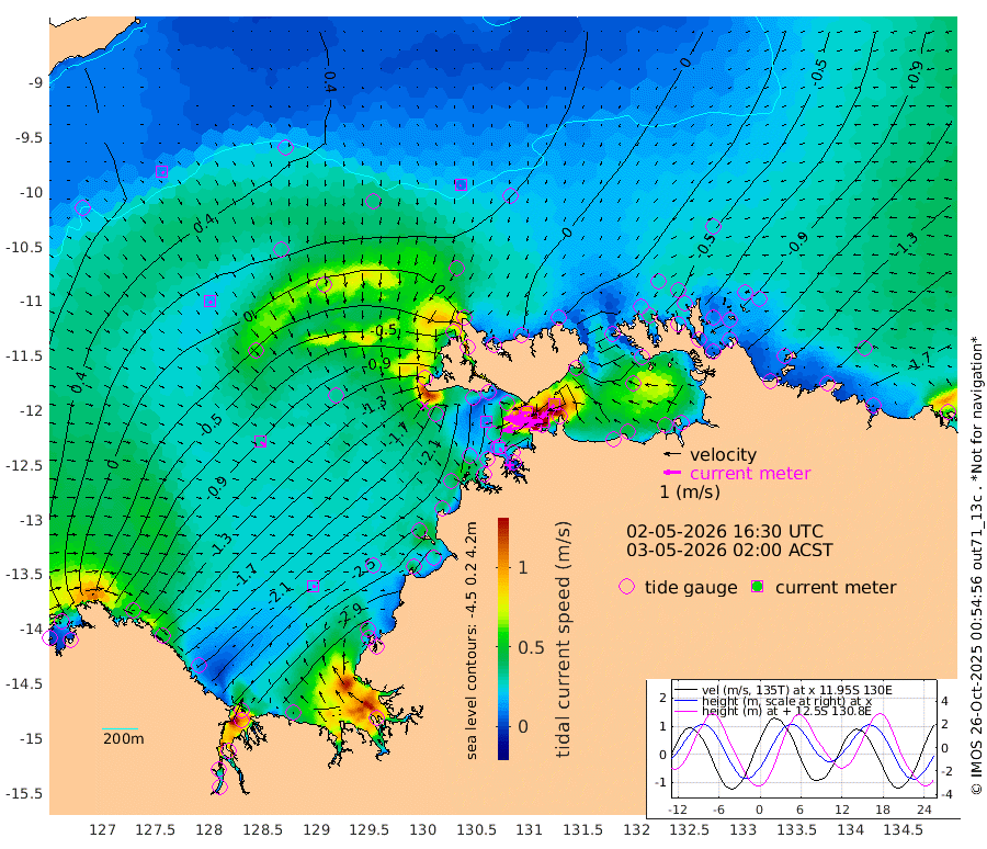 193cm/s -101T +4cm/s rms + 6cm/s 51T. Darwin_C1 52m 172cm/s -92T +4cm/s rms + 7cm/s -161T. Darwin_CW1 22m 87cm/s -105T +4cm/s rms + 8cm/s 61T. Darwin_CW2 34m 108cm/s -136T +3cm/s rms + 9cm/s 98T. Darwin_CW3 22m 168cm/s -90T +5cm/s rms + 7cm/s 88T. Darwin_C3 56m 99cm/s -116T +2cm/s rms + 9cm/s -126T. Darwin_CTbW 22m 9cm/s -171T +9cm/s rms + 2cm/s -110T. NWSLYN 196m 11cm/s 157T +1cm/s rms + 1cm/s -47T. DARBGF 30m 11cm/s 121T +7cm/s rms + 2cm/s -137T. ITFTIS 464m 17cm/s 146T +9cm/s rms + 1cm/s 74T. ITFMHB 146m 20cm/s 107T +4cm/s rms + 1cm/s -134T. ITFJBG 61m 33cm/s 123T +6cm/s rms + 4cm/s 121T. ITFFTB 108m 22cm/s 151T +4cm/s rms + 3cm/s 80T. NRSDAR 19m 14cm Carronade Island 15cm Guy Point 9cm Napier Broome Bay -110cm Lesueur Island -213cm Reveley Island -102cm Rocky Island -326cm Cape Domett -297cm Lacrosse Island -352cm Adolphus Island -310cm Pender Point -309cm Wyndham -30cm The Boxers -49cm Unnamed Shoal 38cm Loxton Shoal -336cm Pelican Island -5cm Calder Shoal 26cm Evans Shoal -444cm Quoin Island -309cm Port Keats -298cm Jones Point -403cm Catfish Island -207cm Cape Scott Offshore -183cm Cape Ford -227cm Anson Bay 12cm Goodrich Bank -206cm Peron Island North -178cm Point Jenny -175cm Native Point -207cm Fish Reef -211cm Tapa Bay -83cm Point Fawcett (Offshore) -241cm Burge Point -190cm Munkunuwa -150cm Beagle A -239cm Parsons Bank -224cm Fenton Patches 12cm Lynedoch Bank -240cm Hancox Shoal Area -246cm Nightcliff -280cm Darwin -245cm Charles Point Patches -231cm Glyde Point -217cm Chambers Bay -231cm Point Stuart -216cm Cape Hotham -197cm Christine Reef -250cm West Alligator Head -252cm East Field Island -196cm Two Hills Bay -108cm Newby Shoal -187cm Camp Point -218cm Medina Inlet South -62cm South Barlow Point -28cm St. Asaph Bay 10cm Cape Van Dieman -4cm Snake Bay -2cm Cache Point 60cm Echo Shoal -29cm Point Jahleel (Off) -99cm Cape Don -43cm Port Essington -38cm Smith Point - West -37cm NW Peacock Island -22cm North Of Jones Shoal -10cm Peacock Island -71cm Point David -43cm D'urville Point -39cm Money Shoal -74cm Copeland Island -105cm Cape Cockburn -73cm One Tree Point -96cm Hogmany Shoal -75cm New Year Island - West -80cm Grant Island -107cm Aurari Bay -131cm Cuthbert Point -106cm North Goulburn Island -150cm Paxie Shoal -161cm Entrance Island -195cm Yabooma Island