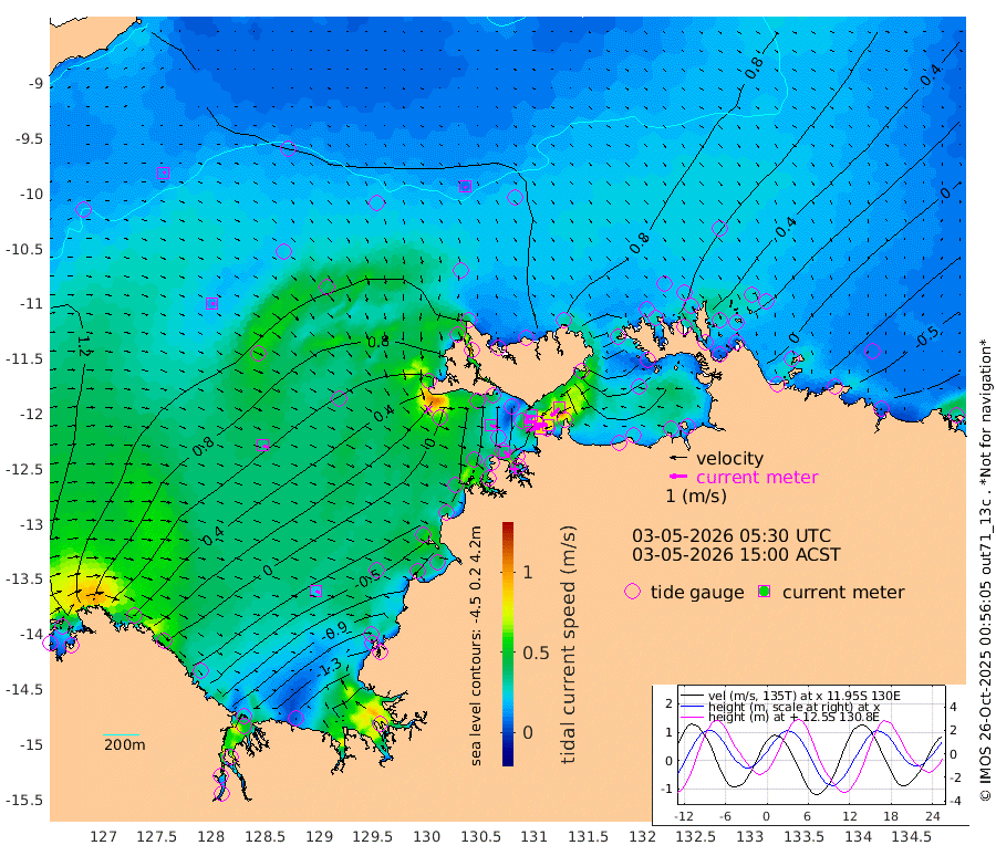 84cm/s -100T +4cm/s rms + 6cm/s 51T. Darwin_C1 52m 80cm/s -92T +4cm/s rms + 7cm/s -161T. Darwin_CW1 22m 32cm/s -106T +4cm/s rms + 8cm/s 61T. Darwin_CW2 34m 64cm/s -135T +3cm/s rms + 9cm/s 98T. Darwin_CW3 22m 78cm/s -90T +5cm/s rms + 7cm/s 88T. Darwin_C3 56m 29cm/s -116T +2cm/s rms + 9cm/s -126T. Darwin_CTbW 22m 10cm/s 139T +9cm/s rms + 2cm/s -110T. NWSLYN 196m 33cm/s 102T +1cm/s rms + 1cm/s -47T. DARBGF 30m 13cm/s 50T +7cm/s rms + 2cm/s -137T. ITFTIS 464m 14cm/s 87T +9cm/s rms + 1cm/s 74T. ITFMHB 146m 24cm/s 115T +4cm/s rms + 1cm/s -134T. ITFJBG 61m 34cm/s 108T +6cm/s rms + 4cm/s 121T. ITFFTB 108m 38cm/s 135T +4cm/s rms + 3cm/s 80T. NRSDAR 19m 79cm Carronade Island 76cm Guy Point 84cm Napier Broome Bay 28cm Lesueur Island -75cm Reveley Island -43cm Rocky Island -144cm Cape Domett -118cm Lacrosse Island -184cm Adolphus Island -187cm Pender Point -187cm Wyndham 85cm The Boxers 90cm Unnamed Shoal 109cm Loxton Shoal -162cm Pelican Island 99cm Calder Shoal 93cm Evans Shoal -261cm Quoin Island -101cm Port Keats -114cm Jones Point -259cm Catfish Island -34cm Cape Scott Offshore 23cm Cape Ford -38cm Anson Bay 94cm Goodrich Bank -24cm Peron Island North -5cm Point Jenny -1cm Native Point -21cm Fish Reef -26cm Tapa Bay 57cm Point Fawcett (Offshore) -35cm Burge Point -26cm Munkunuwa 23cm Beagle A -51cm Parsons Bank -28cm Fenton Patches 89cm Lynedoch Bank -59cm Hancox Shoal Area -46cm Nightcliff -65cm Darwin -36cm Charles Point Patches -72cm Glyde Point -108cm Chambers Bay -124cm Point Stuart -78cm Cape Hotham -89cm Christine Reef -144cm West Alligator Head -156cm East Field Island -80cm Two Hills Bay 72cm Newby Shoal -65cm Camp Point -26cm Medina Inlet South 68cm South Barlow Point 81cm St. Asaph Bay 96cm Cape Van Dieman 94cm Snake Bay 88cm Cache Point 109cm Echo Shoal 64cm Point Jahleel (Off) 14cm Cape Don 54cm Port Essington 56cm Smith Point - West 56cm NW Peacock Island 71cm North Of Jones Shoal 23cm Peacock Island 30cm Point David 53cm D'urville Point 59cm Money Shoal 23cm Copeland Island 32cm Cape Cockburn 33cm One Tree Point 23cm Hogmany Shoal 37cm New Year Island - West 29cm Grant Island 0cm Aurari Bay -24cm Cuthbert Point 7cm North Goulburn Island -35cm Paxie Shoal -57cm Entrance Island -95cm Yabooma Island