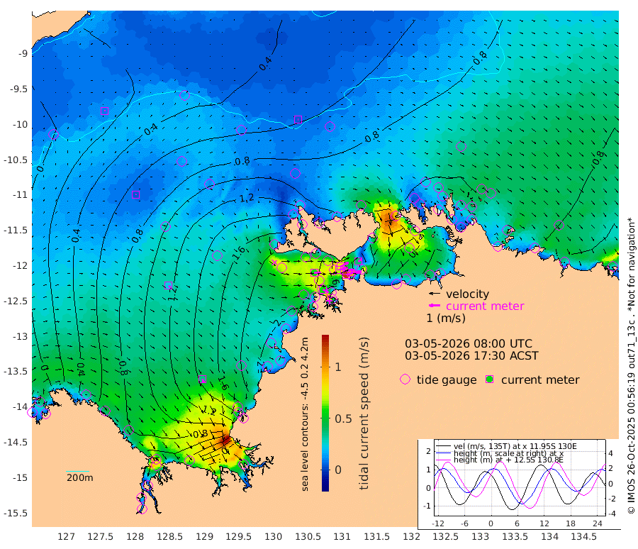 120cm/s 78T +4cm/s rms + 6cm/s 51T. Darwin_C1 52m 95cm/s 84T +4cm/s rms + 7cm/s -161T. Darwin_CW1 22m 69cm/s 75T +4cm/s rms + 8cm/s 61T. Darwin_CW2 34m 37cm/s 55T +3cm/s rms + 9cm/s 98T. Darwin_CW3 22m 89cm/s 88T +5cm/s rms + 7cm/s 88T. Darwin_C3 56m 80cm/s 63T +2cm/s rms + 9cm/s -126T. Darwin_CTbW 22m 5cm/s 100T +9cm/s rms + 2cm/s -110T. NWSLYN 196m 59cm/s 90T +1cm/s rms + 1cm/s -47T. DARBGF 30m 9cm/s 17T +7cm/s rms + 2cm/s -137T. ITFTIS 464m 6cm/s 62T +9cm/s rms + 1cm/s 74T. ITFMHB 146m 34cm/s 156T +4cm/s rms + 1cm/s -134T. ITFJBG 61m 24cm/s 125T +6cm/s rms + 4cm/s 121T. ITFFTB 108m 57cm/s 118T +4cm/s rms + 3cm/s 80T. NRSDAR 19m -78cm Carronade Island -86cm Guy Point -74cm Napier Broome Bay 5cm Lesueur Island 38cm Reveley Island 5cm Rocky Island 51cm Cape Domett 49cm Lacrosse Island 11cm Adolphus Island -86cm Pender Point -121cm Wyndham 66cm The Boxers 105cm Unnamed Shoal 22cm Loxton Shoal 76cm Pelican Island 65cm Calder Shoal 35cm Evans Shoal -7cm Quoin Island 136cm Port Keats 124cm Jones Point -78cm Catfish Island 141cm Cape Scott Offshore 179cm Cape Ford 172cm Anson Bay 64cm Goodrich Bank 156cm Peron Island North 161cm Point Jenny 163cm Native Point 168cm Fish Reef 173cm Tapa Bay 126cm Point Fawcett (Offshore) 179cm Burge Point 172cm Munkunuwa 154cm Beagle A 175cm Parsons Bank 172cm Fenton Patches 50cm Lynedoch Bank 158cm Hancox Shoal Area 178cm Nightcliff 185cm Darwin 184cm Charles Point Patches 95cm Glyde Point 5cm Chambers Bay -15cm Point Stuart 59cm Cape Hotham 7cm Christine Reef -30cm West Alligator Head -65cm East Field Island 23cm Two Hills Bay 123cm Newby Shoal 34cm Camp Point 178cm Medina Inlet South 128cm South Barlow Point 101cm St. Asaph Bay 72cm Cape Van Dieman 83cm Snake Bay 66cm Cache Point -9cm Echo Shoal 65cm Point Jahleel (Off) 73cm Cape Don 76cm Port Essington 76cm Smith Point - West 73cm NW Peacock Island 69cm North Of Jones Shoal 26cm Peacock Island 79cm Point David 80cm D'urville Point 71cm Money Shoal 76cm Copeland Island 99cm Cape Cockburn 79cm One Tree Point 76cm Hogmany Shoal 79cm New Year Island - West 78cm Grant Island 79cm Aurari Bay 68cm Cuthbert Point 78cm North Goulburn Island 65cm Paxie Shoal 56cm Entrance Island 42cm Yabooma Island