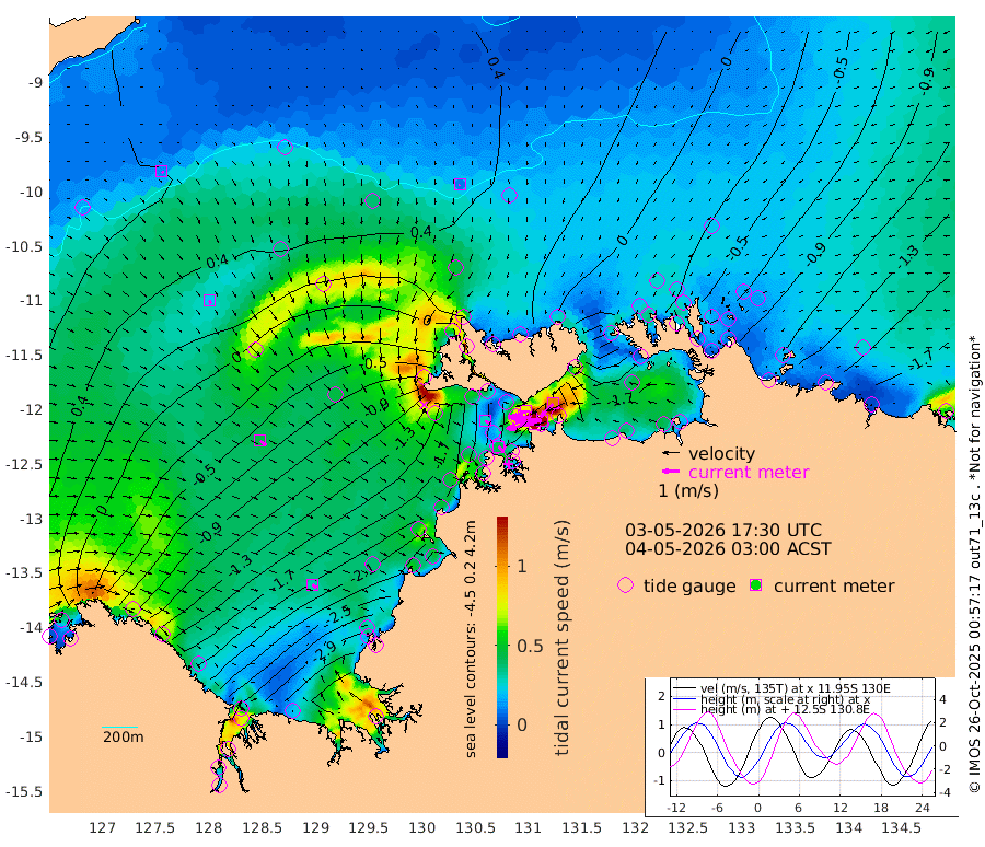 165cm/s -101T +4cm/s rms + 6cm/s 51T. Darwin_C1 52m 152cm/s -92T +4cm/s rms + 7cm/s -161T. Darwin_CW1 22m 61cm/s -104T +4cm/s rms + 8cm/s 61T. Darwin_CW2 34m 105cm/s -137T +3cm/s rms + 9cm/s 98T. Darwin_CW3 22m 137cm/s -90T +5cm/s rms + 7cm/s 88T. Darwin_C3 56m 80cm/s -116T +2cm/s rms + 9cm/s -126T. Darwin_CTbW 22m 9cm/s -173T +9cm/s rms + 2cm/s -110T. NWSLYN 196m 29cm/s 109T +1cm/s rms + 1cm/s -47T. DARBGF 30m 12cm/s 116T +7cm/s rms + 2cm/s -137T. ITFTIS 464m 21cm/s 149T +9cm/s rms + 1cm/s 74T. ITFMHB 146m 30cm/s 126T +4cm/s rms + 1cm/s -134T. ITFJBG 61m 44cm/s 126T +6cm/s rms + 4cm/s 121T. ITFFTB 108m 43cm/s 135T +4cm/s rms + 3cm/s 80T. NRSDAR 19m -10cm Carronade Island -10cm Guy Point -17cm Napier Broome Bay -110cm Lesueur Island -194cm Reveley Island -91cm Rocky Island -304cm Cape Domett -276cm Lacrosse Island -344cm Adolphus Island -336cm Pender Point -349cm Wyndham -11cm The Boxers -28cm Unnamed Shoal 44cm Loxton Shoal -306cm Pelican Island 16cm Calder Shoal 37cm Evans Shoal -446cm Quoin Island -261cm Port Keats -253cm Jones Point -435cm Catfish Island -159cm Cape Scott Offshore -98cm Cape Ford -172cm Anson Bay 29cm Goodrich Bank -152cm Peron Island North -120cm Point Jenny -116cm Native Point -146cm Fish Reef -151cm Tapa Bay -40cm Point Fawcett (Offshore) -176cm Burge Point -127cm Munkunuwa -92cm Beagle A -179cm Parsons Bank -160cm Fenton Patches 23cm Lynedoch Bank -186cm Hancox Shoal Area -185cm Nightcliff -219cm Darwin -183cm Charles Point Patches -201cm Glyde Point -216cm Chambers Bay -238cm Point Stuart -199cm Cape Hotham -194cm Christine Reef -260cm West Alligator Head -274cm East Field Island -191cm Two Hills Bay -66cm Newby Shoal -180cm Camp Point -157cm Medina Inlet South -22cm South Barlow Point 5cm St. Asaph Bay 30cm Cape Van Dieman 16cm Snake Bay 16cm Cache Point 58cm Echo Shoal -12cm Point Jahleel (Off) -81cm Cape Don -26cm Port Essington -19cm Smith Point - West -22cm NW Peacock Island -8cm North Of Jones Shoal -6cm Peacock Island -61cm Point David -26cm D'urville Point -27cm Money Shoal -64cm Copeland Island -91cm Cape Cockburn -62cm One Tree Point -88cm Hogmany Shoal -65cm New Year Island - West -70cm Grant Island -99cm Aurari Bay -127cm Cuthbert Point -98cm North Goulburn Island -150cm Paxie Shoal -159cm Entrance Island -200cm Yabooma Island