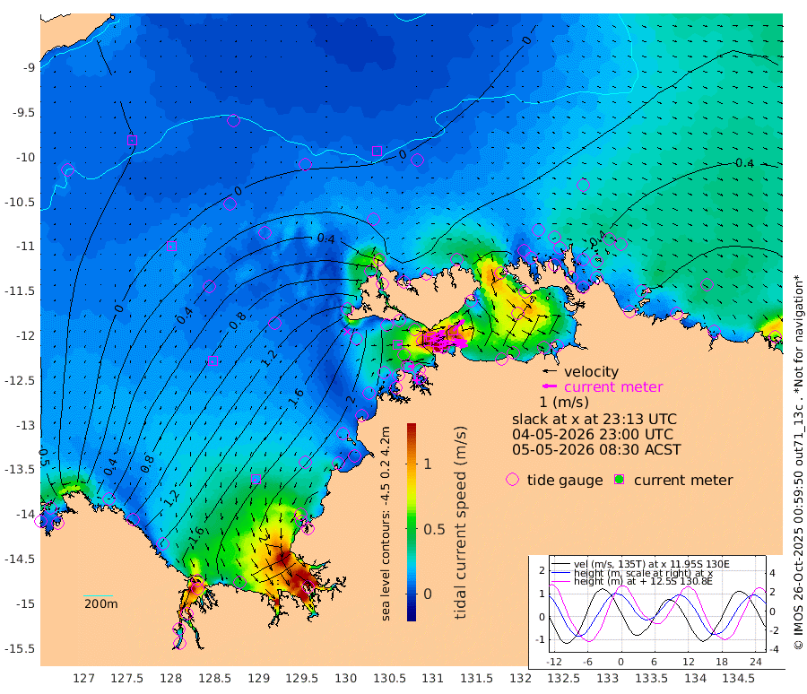213cm/s 78T +4cm/s rms + 6cm/s 51T. Darwin_C1 52m 168cm/s 93T +4cm/s rms + 7cm/s -161T. Darwin_CW1 22m 123cm/s 73T +4cm/s rms + 8cm/s 61T. Darwin_CW2 34m 112cm/s 46T +3cm/s rms + 9cm/s 98T. Darwin_CW3 22m 195cm/s 89T +5cm/s rms + 7cm/s 88T. Darwin_C3 56m 108cm/s 66T +2cm/s rms + 9cm/s -126T. Darwin_CTbW 22m 3cm/s 1T +9cm/s rms + 2cm/s -110T. NWSLYN 196m 37cm/s 78T +1cm/s rms + 1cm/s -47T. DARBGF 30m 5cm/s -118T +7cm/s rms + 2cm/s -137T. ITFTIS 464m 14cm/s -150T +9cm/s rms + 1cm/s 74T. ITFMHB 146m 17cm/s -151T +4cm/s rms + 1cm/s -134T. ITFJBG 61m 11cm/s -138T +6cm/s rms + 4cm/s 121T. ITFFTB 108m 28cm/s 100T +4cm/s rms + 3cm/s 80T. NRSDAR 19m -46cm Carronade Island -41cm Guy Point -48cm Napier Broome Bay 62cm Lesueur Island 172cm Reveley Island 103cm Rocky Island 240cm Cape Domett 220cm Lacrosse Island 243cm Adolphus Island 166cm Pender Point 142cm Wyndham 41cm The Boxers 41cm Unnamed Shoal -14cm Loxton Shoal 268cm Pelican Island 29cm Calder Shoal 0cm Evans Shoal 296cm Quoin Island 260cm Port Keats 243cm Jones Point 241cm Catfish Island 206cm Cape Scott Offshore 187cm Cape Ford 227cm Anson Bay 12cm Goodrich Bank 199cm Peron Island North 192cm Point Jenny 191cm Native Point 204cm Fish Reef 220cm Tapa Bay 109cm Point Fawcett (Offshore) 223cm Burge Point 209cm Munkunuwa 163cm Beagle A 224cm Parsons Bank 217cm Fenton Patches 0cm Lynedoch Bank 225cm Hancox Shoal Area 240cm Nightcliff 251cm Darwin 230cm Charles Point Patches 174cm Glyde Point 130cm Chambers Bay 118cm Point Stuart 143cm Cape Hotham 122cm Christine Reef 128cm West Alligator Head 108cm East Field Island 115cm Two Hills Bay 106cm Newby Shoal 111cm Camp Point 217cm Medina Inlet South 89cm South Barlow Point 63cm St. Asaph Bay 14cm Cape Van Dieman 21cm Snake Bay 18cm Cache Point -34cm Echo Shoal 35cm Point Jahleel (Off) 73cm Cape Don 35cm Port Essington 39cm Smith Point - West 30cm NW Peacock Island 21cm North Of Jones Shoal 8cm Peacock Island 34cm Point David 35cm D'urville Point 16cm Money Shoal 35cm Copeland Island 46cm Cape Cockburn 36cm One Tree Point 45cm Hogmany Shoal 34cm New Year Island - West 38cm Grant Island 48cm Aurari Bay 56cm Cuthbert Point 46cm North Goulburn Island 59cm Paxie Shoal 63cm Entrance Island 65cm Yabooma Island