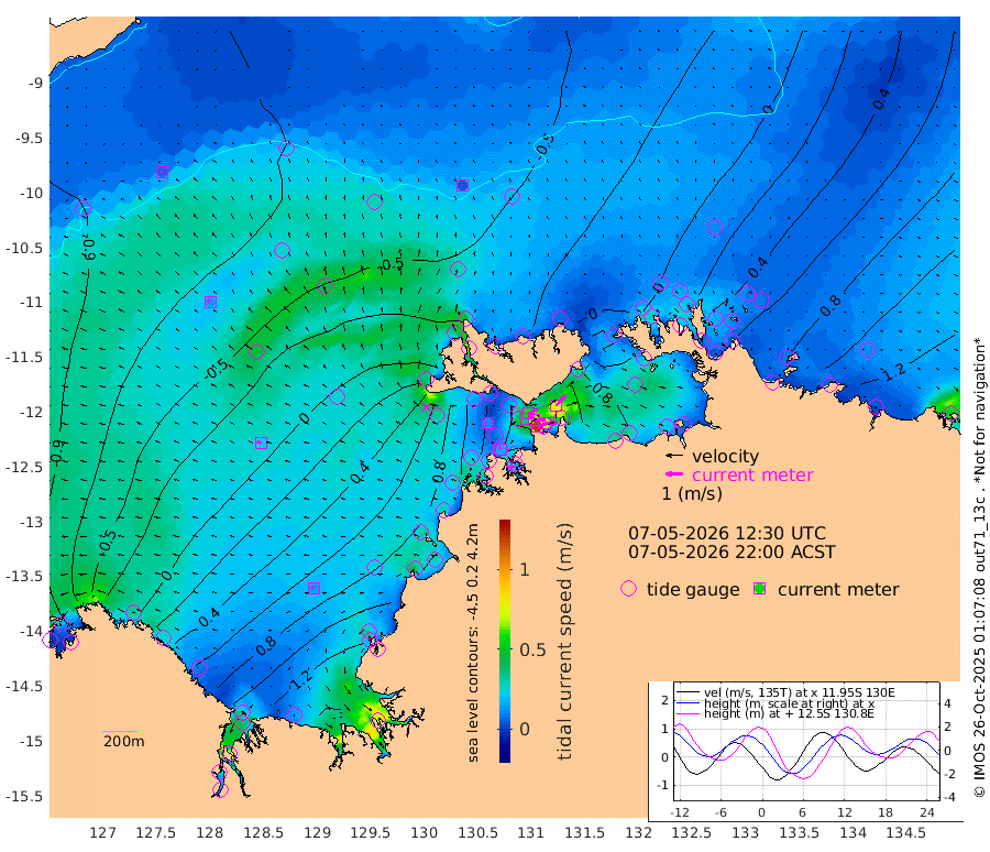 119cm/s 78T +4cm/s rms + 6cm/s 51T. Darwin_C1 52m 70cm/s 91T +4cm/s rms + 7cm/s -161T. Darwin_CW1 22m 38cm/s 73T +4cm/s rms + 8cm/s 61T. Darwin_CW2 34m 78cm/s 42T +3cm/s rms + 9cm/s 98T. Darwin_CW3 22m 66cm/s 90T +5cm/s rms + 7cm/s 88T. Darwin_C3 56m 59cm/s 66T +2cm/s rms + 9cm/s -126T. Darwin_CTbW 22m 4cm/s -8T +9cm/s rms + 2cm/s -110T. NWSLYN 196m 12cm/s -76T +1cm/s rms + 1cm/s -47T. DARBGF 30m 8cm/s -94T +7cm/s rms + 2cm/s -137T. ITFTIS 464m 14cm/s -42T +9cm/s rms + 1cm/s 74T. ITFMHB 146m 13cm/s -68T +4cm/s rms + 1cm/s -134T. ITFJBG 61m 24cm/s -66T +6cm/s rms + 4cm/s 121T. ITFFTB 108m 17cm/s -36T +4cm/s rms + 3cm/s 80T. NRSDAR 19m -84cm Carronade Island -83cm Guy Point -86cm Napier Broome Bay -20cm Lesueur Island 45cm Reveley Island -22cm Rocky Island 93cm Cape Domett 78cm Lacrosse Island 116cm Adolphus Island 92cm Pender Point 91cm Wyndham -52cm The Boxers -17cm Unnamed Shoal -81cm Loxton Shoal 117cm Pelican Island -65cm Calder Shoal -65cm Evans Shoal 168cm Quoin Island 91cm Port Keats 92cm Jones Point 149cm Catfish Island 48cm Cape Scott Offshore -44cm Cape Ford 64cm Anson Bay -51cm Goodrich Bank 42cm Peron Island North 25cm Point Jenny 23cm Native Point 31cm Fish Reef 48cm Tapa Bay -23cm Point Fawcett (Offshore) 47cm Burge Point 38cm Munkunuwa -2cm Beagle A 72cm Parsons Bank 40cm Fenton Patches -46cm Lynedoch Bank 79cm Hancox Shoal Area 73cm Nightcliff 82cm Darwin 57cm Charles Point Patches 73cm Glyde Point 83cm Chambers Bay 90cm Point Stuart 76cm Cape Hotham 70cm Christine Reef 99cm West Alligator Head 98cm East Field Island 72cm Two Hills Bay -34cm Newby Shoal 64cm Camp Point 45cm Medina Inlet South -23cm South Barlow Point -42cm St. Asaph Bay -49cm Cape Van Dieman -36cm Snake Bay -45cm Cache Point -93cm Echo Shoal -23cm Point Jahleel (Off) 19cm Cape Don -6cm Port Essington -6cm Smith Point - West -1cm NW Peacock Island -17cm North Of Jones Shoal -2cm Peacock Island 44cm Point David 5cm D'urville Point 5cm Money Shoal 49cm Copeland Island 55cm Cape Cockburn 35cm One Tree Point 56cm Hogmany Shoal 38cm New Year Island - West 44cm Grant Island 74cm Aurari Bay 88cm Cuthbert Point 67cm North Goulburn Island 105cm Paxie Shoal 116cm Entrance Island 152cm Yabooma Island