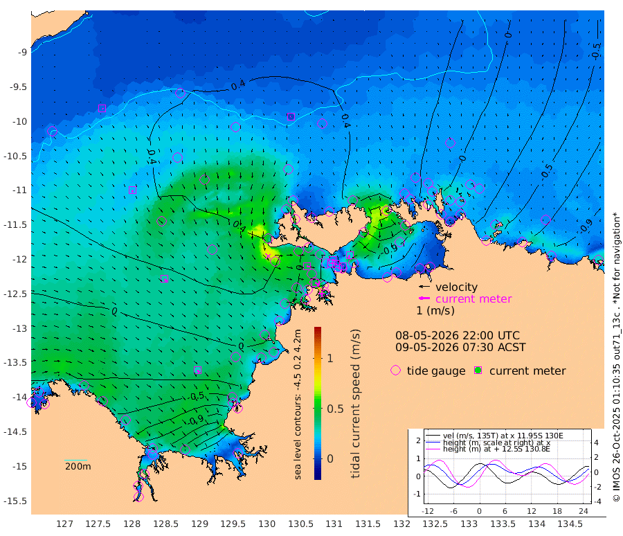 15cm/s 82T +4cm/s rms + 6cm/s 51T. Darwin_C1 52m 5cm/s 102T +4cm/s rms + 7cm/s -161T. Darwin_CW1 22m 18cm/s 71T +4cm/s rms + 8cm/s 61T. Darwin_CW2 34m 26cm/s -150T +3cm/s rms + 9cm/s 98T. Darwin_CW3 22m 5cm/s 74T +5cm/s rms + 7cm/s 88T. Darwin_C3 56m 11cm/s 62T +2cm/s rms + 9cm/s -126T. Darwin_CTbW 22m 2cm/s -125T +9cm/s rms + 2cm/s -110T. NWSLYN 196m 41cm/s 93T +1cm/s rms + 1cm/s -47T. DARBGF 30m 7cm/s 129T +7cm/s rms + 2cm/s -137T. ITFTIS 464m 18cm/s 165T +9cm/s rms + 1cm/s 74T. ITFMHB 146m 28cm/s 149T +4cm/s rms + 1cm/s -134T. ITFJBG 61m 30cm/s 135T +6cm/s rms + 4cm/s 121T. ITFFTB 108m 44cm/s 124T +4cm/s rms + 3cm/s 80T. NRSDAR 19m -45cm Carronade Island -45cm Guy Point -51cm Napier Broome Bay -51cm Lesueur Island -38cm Reveley Island 5cm Rocky Island -82cm Cape Domett -75cm Lacrosse Island -114cm Adolphus Island -166cm Pender Point -196cm Wyndham 21cm The Boxers 12cm Unnamed Shoal 35cm Loxton Shoal -80cm Pelican Island 43cm Calder Shoal 40cm Evans Shoal -169cm Quoin Island -27cm Port Keats -38cm Jones Point -261cm Catfish Island 5cm Cape Scott Offshore 96cm Cape Ford 8cm Anson Bay 41cm Goodrich Bank 24cm Peron Island North 35cm Point Jenny 37cm Native Point 33cm Fish Reef 26cm Tapa Bay 47cm Point Fawcett (Offshore) 32cm Burge Point 54cm Munkunuwa 47cm Beagle A 26cm Parsons Bank 30cm Fenton Patches 29cm Lynedoch Bank 6cm Hancox Shoal Area 17cm Nightcliff 8cm Darwin 17cm Charles Point Patches -39cm Glyde Point -102cm Chambers Bay -113cm Point Stuart -56cm Cape Hotham -79cm Christine Reef -127cm West Alligator Head -154cm East Field Island -73cm Two Hills Bay 41cm Newby Shoal -72cm Camp Point 34cm Medina Inlet South 59cm South Barlow Point 55cm St. Asaph Bay 44cm Cape Van Dieman 41cm Snake Bay 35cm Cache Point 24cm Echo Shoal 24cm Point Jahleel (Off) -7cm Cape Don 15cm Port Essington 20cm Smith Point - West 13cm NW Peacock Island 19cm North Of Jones Shoal 5cm Peacock Island -16cm Point David 14cm D'urville Point 0cm Money Shoal -19cm Copeland Island -19cm Cape Cockburn -12cm One Tree Point -32cm Hogmany Shoal -19cm New Year Island - West -18cm Grant Island -42cm Aurari Bay -58cm Cuthbert Point -37cm North Goulburn Island -79cm Paxie Shoal -85cm Entrance Island -118cm Yabooma Island