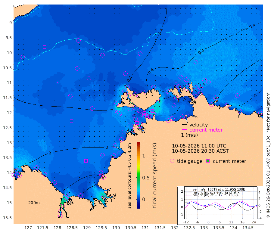 1cm/s -137T +4cm/s rms + 6cm/s 51T. Darwin_C1 52m 2cm/s 55T +4cm/s rms + 7cm/s -161T. Darwin_CW1 22m 13cm/s -111T +4cm/s rms + 8cm/s 61T. Darwin_CW2 34m 13cm/s -148T +3cm/s rms + 9cm/s 98T. Darwin_CW3 22m 18cm/s -90T +5cm/s rms + 7cm/s 88T. Darwin_C3 56m 3cm/s -97T +2cm/s rms + 9cm/s -126T. Darwin_CTbW 22m 7cm/s 143T +9cm/s rms + 2cm/s -110T. NWSLYN 196m 3cm/s 124T +1cm/s rms + 1cm/s -47T. DARBGF 30m 5cm/s 23T +7cm/s rms + 2cm/s -137T. ITFTIS 464m 6cm/s 26T +9cm/s rms + 1cm/s 74T. ITFMHB 146m 4cm/s 86T +4cm/s rms + 1cm/s -134T. ITFJBG 61m 5cm/s 72T +6cm/s rms + 4cm/s 121T. ITFFTB 108m 4cm/s 145T +4cm/s rms + 3cm/s 80T. NRSDAR 19m -14cm Carronade Island -12cm Guy Point -11cm Napier Broome Bay -24cm Lesueur Island -40cm Reveley Island -30cm Rocky Island -64cm Cape Domett -68cm Lacrosse Island -79cm Adolphus Island -75cm Pender Point -89cm Wyndham 16cm The Boxers 23cm Unnamed Shoal 31cm Loxton Shoal -60cm Pelican Island 18cm Calder Shoal 31cm Evans Shoal -106cm Quoin Island -45cm Port Keats -39cm Jones Point -153cm Catfish Island -27cm Cape Scott Offshore 47cm Cape Ford -27cm Anson Bay 35cm Goodrich Bank -14cm Peron Island North -14cm Point Jenny -11cm Native Point -20cm Fish Reef -15cm Tapa Bay 10cm Point Fawcett (Offshore) -22cm Burge Point -8cm Munkunuwa -15cm Beagle A -12cm Parsons Bank -29cm Fenton Patches 32cm Lynedoch Bank -21cm Hancox Shoal Area -39cm Nightcliff -21cm Darwin -8cm Charles Point Patches -31cm Glyde Point -60cm Chambers Bay -57cm Point Stuart -37cm Cape Hotham -50cm Christine Reef -68cm West Alligator Head -78cm East Field Island -38cm Two Hills Bay -2cm Newby Shoal -33cm Camp Point -14cm Medina Inlet South 21cm South Barlow Point 22cm St. Asaph Bay 36cm Cape Van Dieman 36cm Snake Bay 30cm Cache Point 16cm Echo Shoal 22cm Point Jahleel (Off) 7cm Cape Don 31cm Port Essington 27cm Smith Point - West 31cm NW Peacock Island 26cm North Of Jones Shoal 9cm Peacock Island 32cm Point David 31cm D'urville Point 32cm Money Shoal 29cm Copeland Island 31cm Cape Cockburn 28cm One Tree Point 43cm Hogmany Shoal 26cm New Year Island - West 31cm Grant Island 13cm Aurari Bay 17cm Cuthbert Point 21cm North Goulburn Island 12cm Paxie Shoal 0cm Entrance Island -15cm Yabooma Island